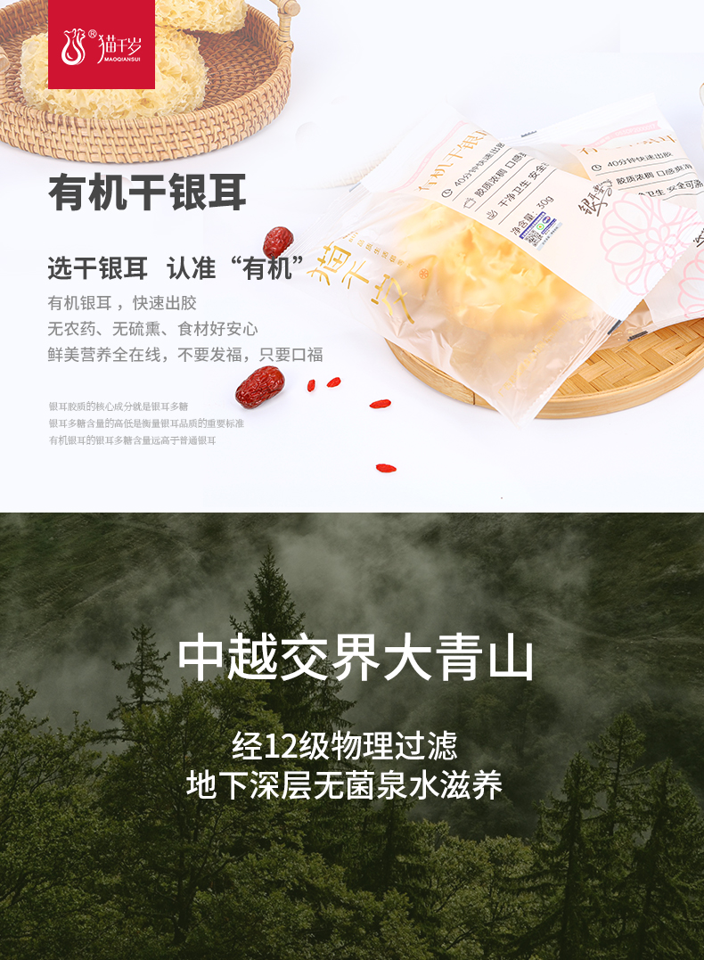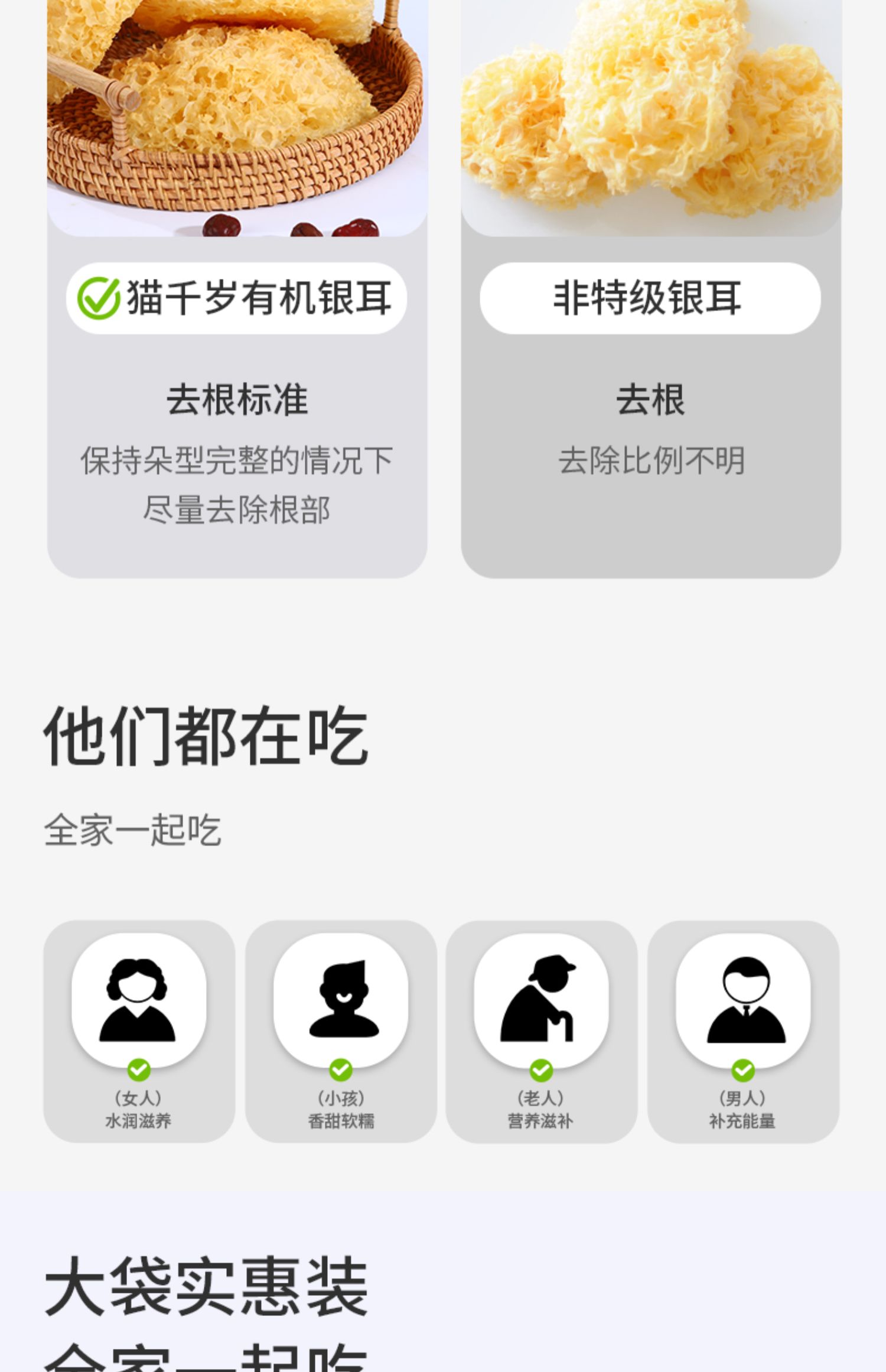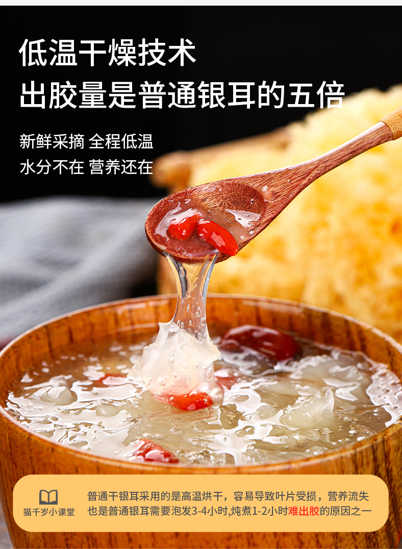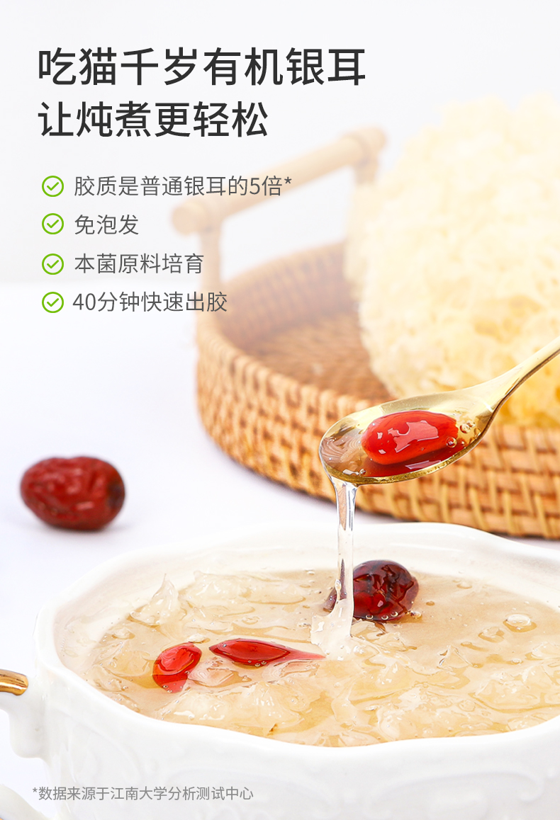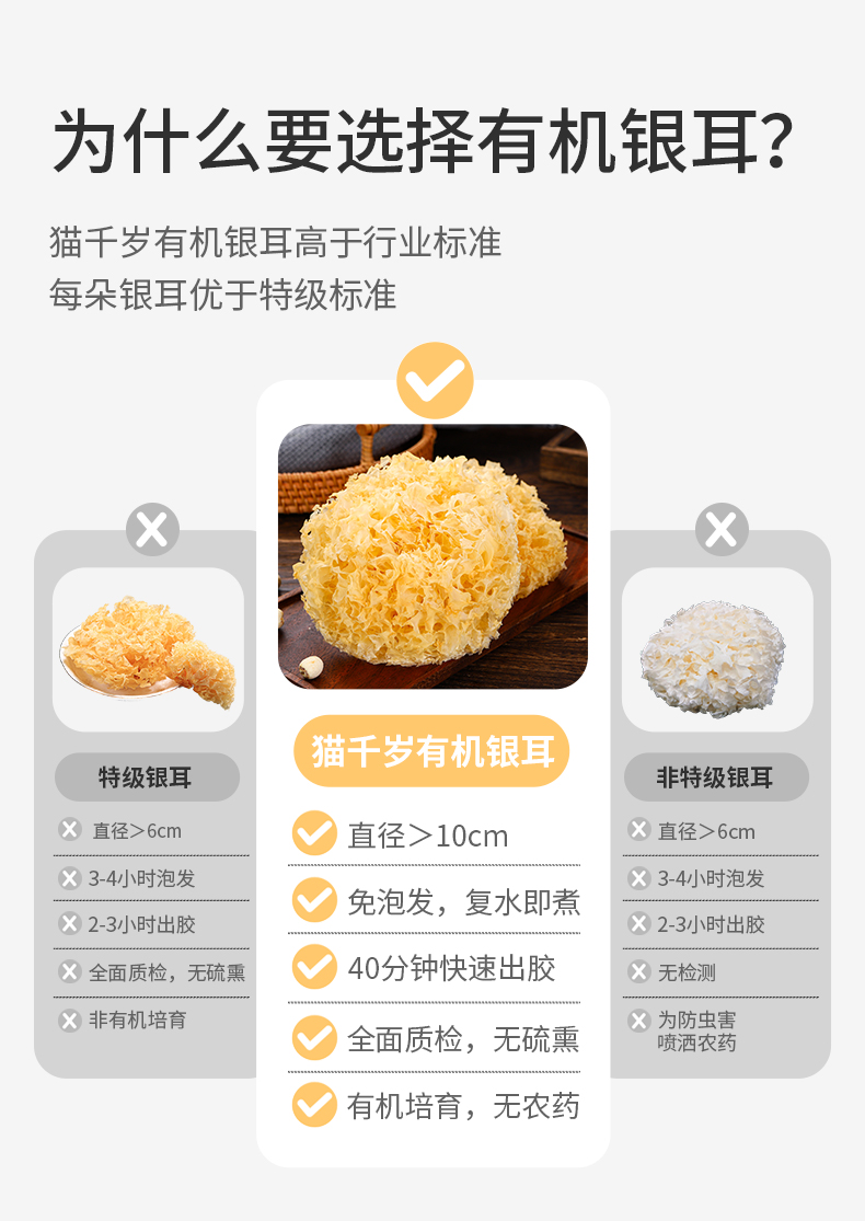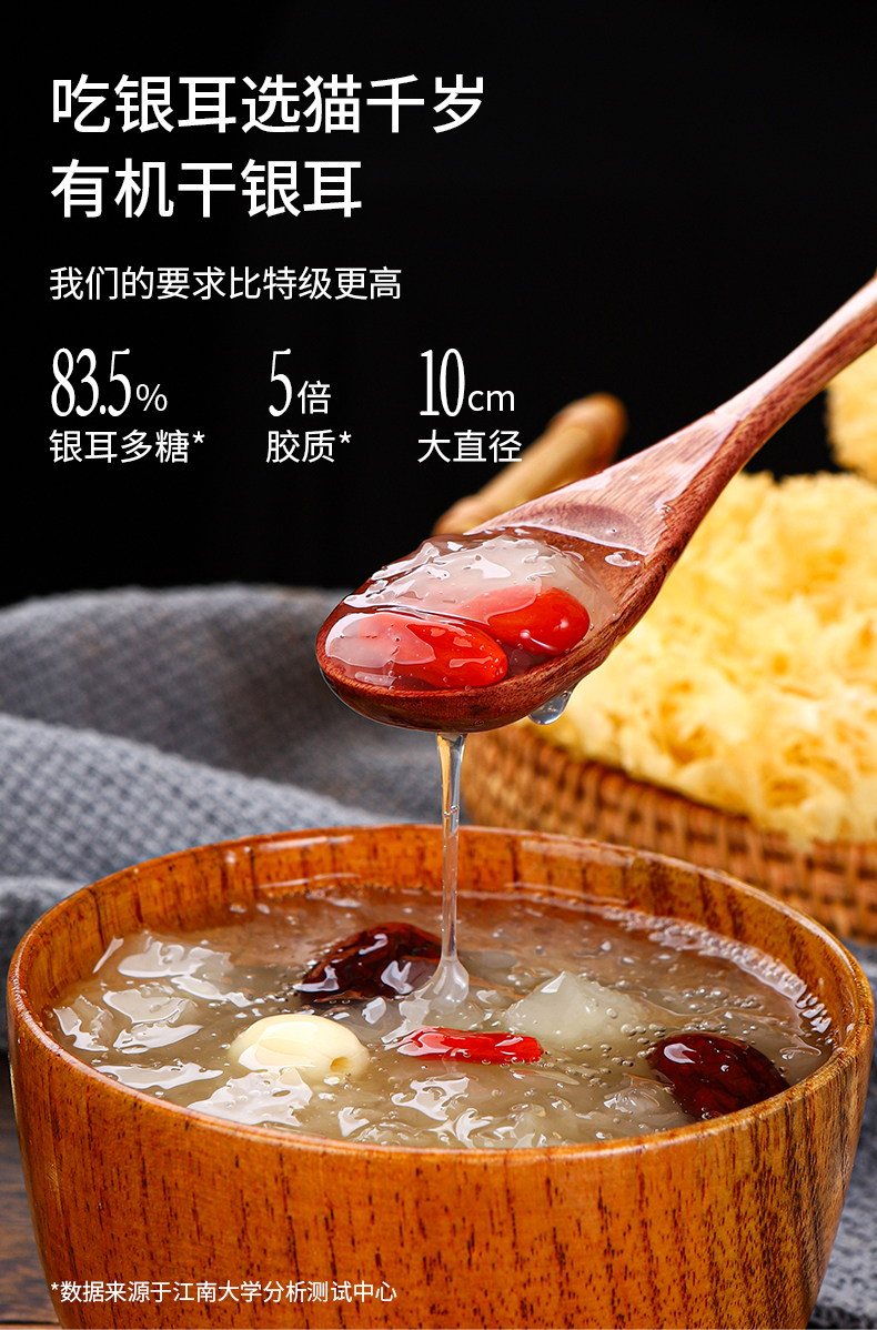 猫千岁√有机干银耳6朵,低温烘干技术7斤出1斤1朵30g泡发近半斤鲜银耳!