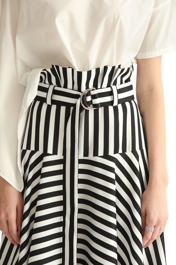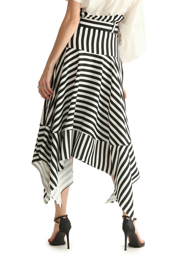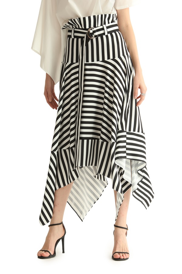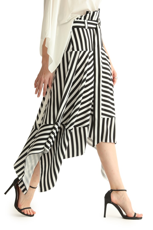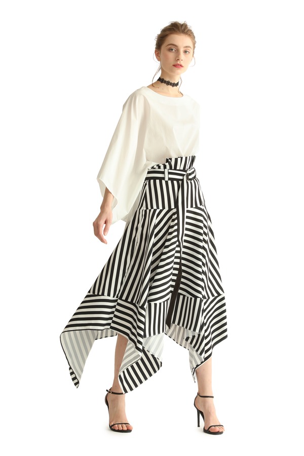 SUMMER & SAGE 黑白条纹不规则半裙 1879