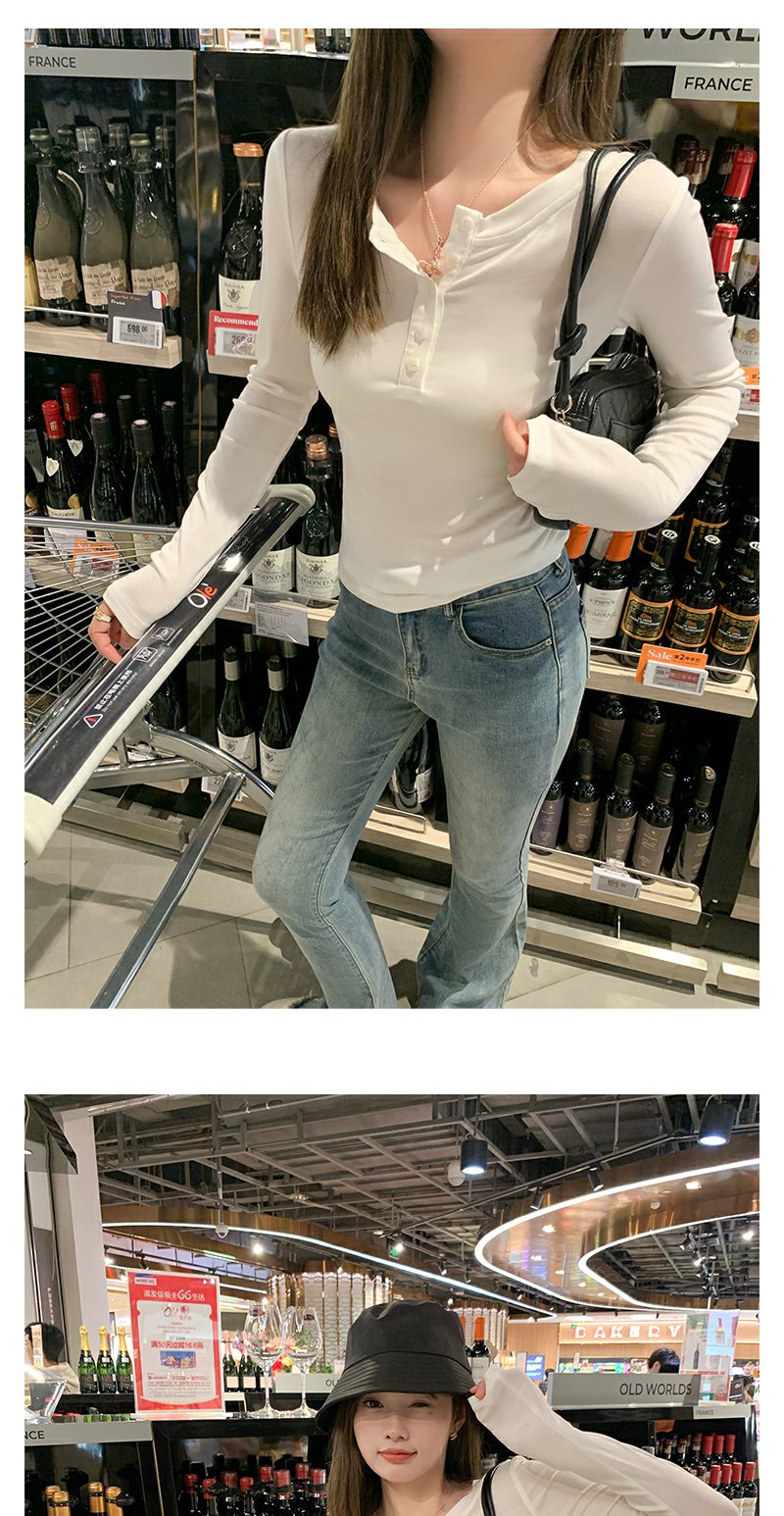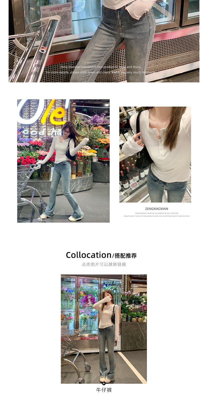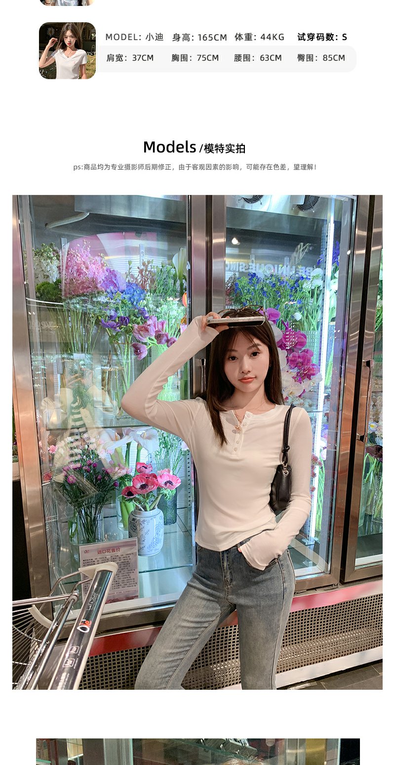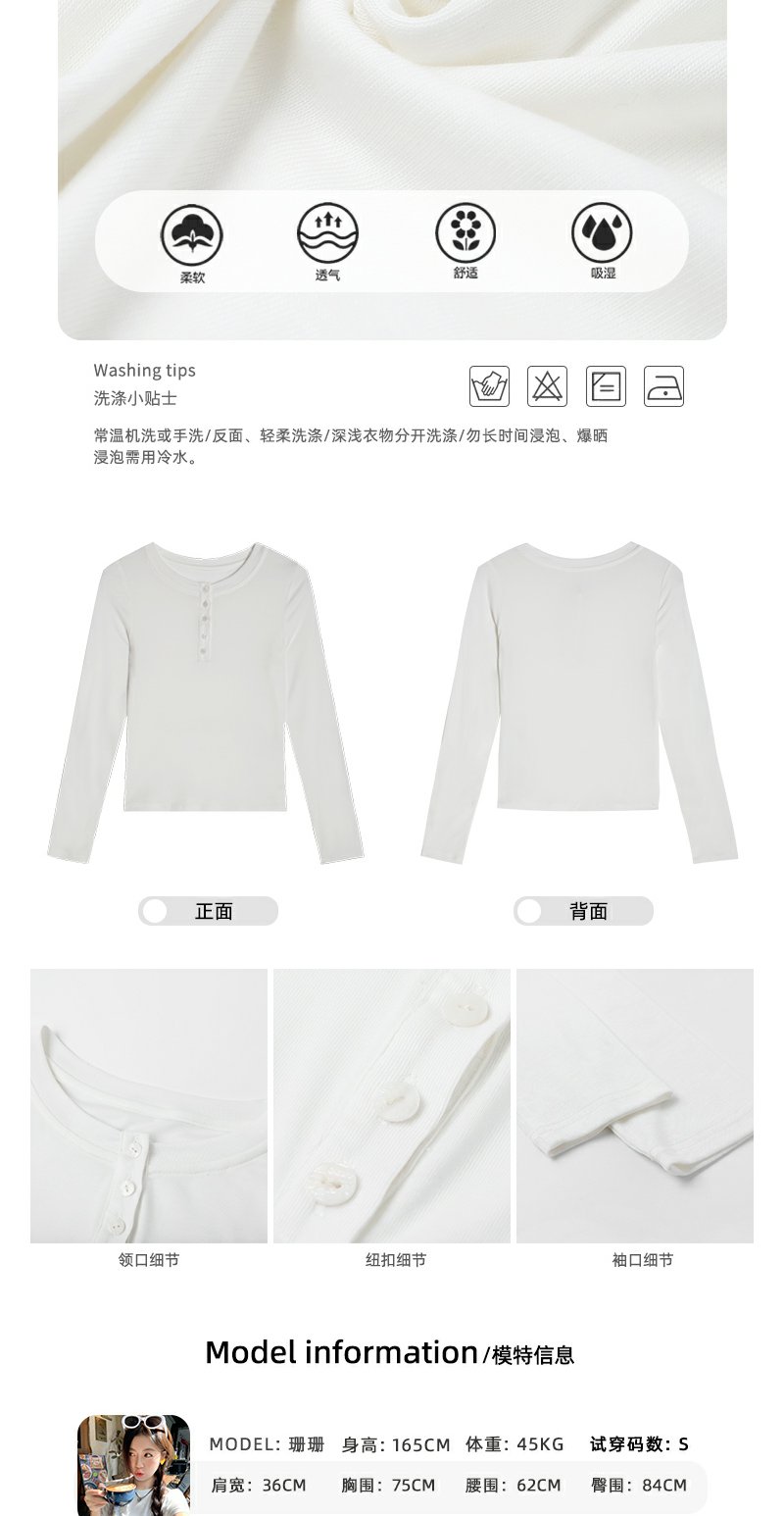 <曾小咸推荐>3.16现货秒杀 !微信超特价!半开领纽扣修身长袖T恤 日常99.99 立减40 秒杀59.99!!