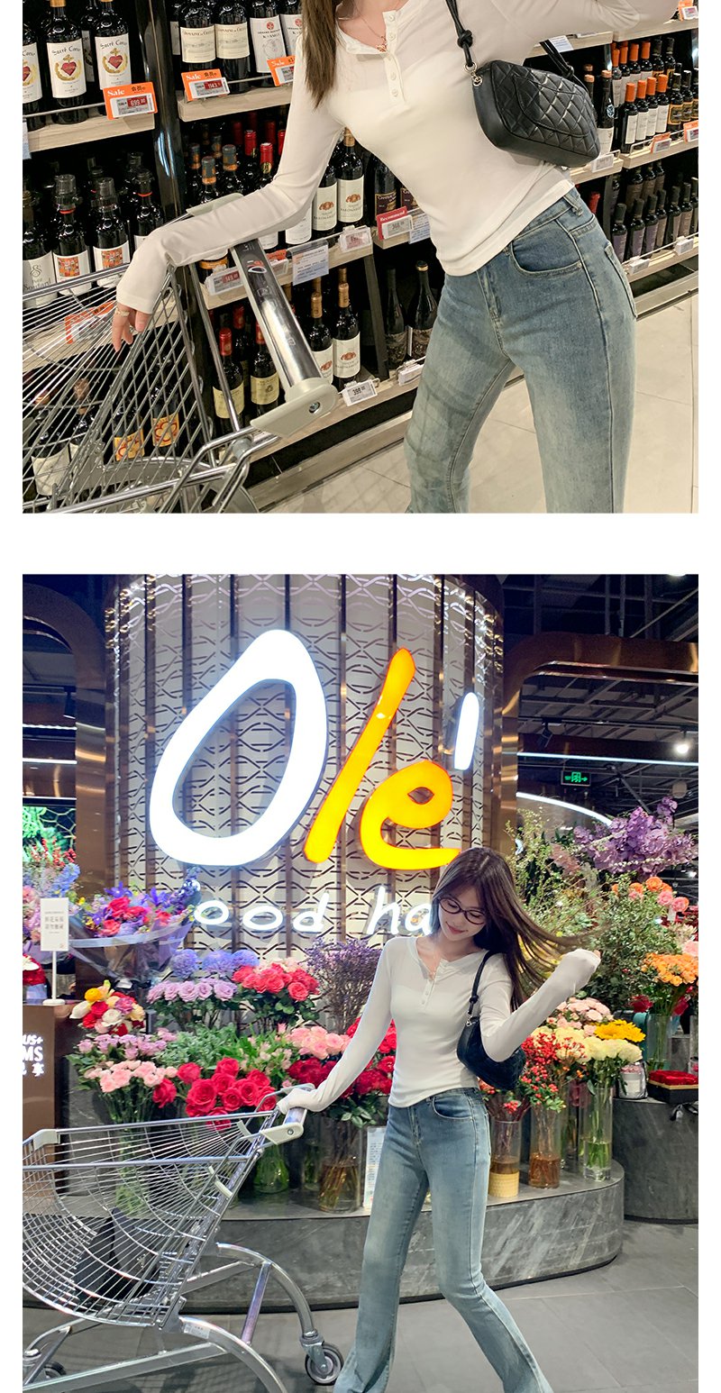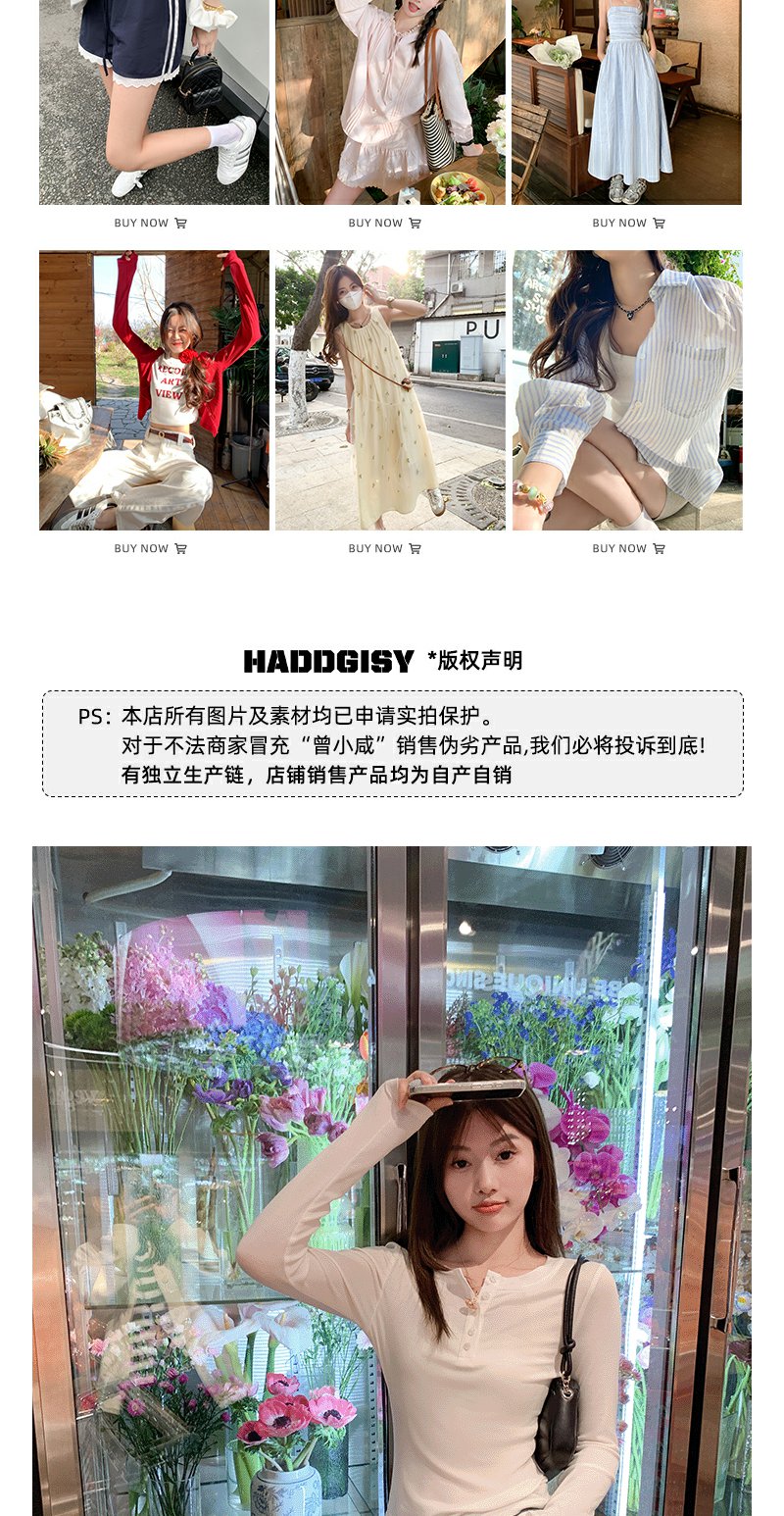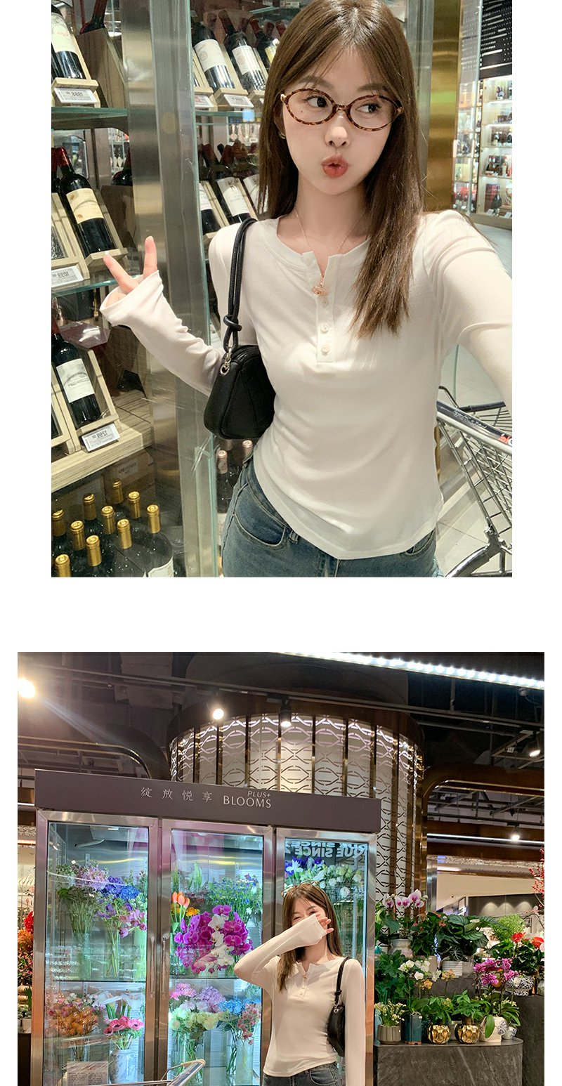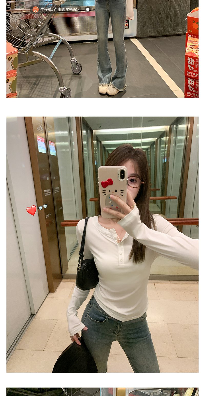 <曾小咸推荐>3.16现货秒杀 !微信超特价!半开领纽扣修身长袖T恤 日常99.99 立减40 秒杀59.99!!