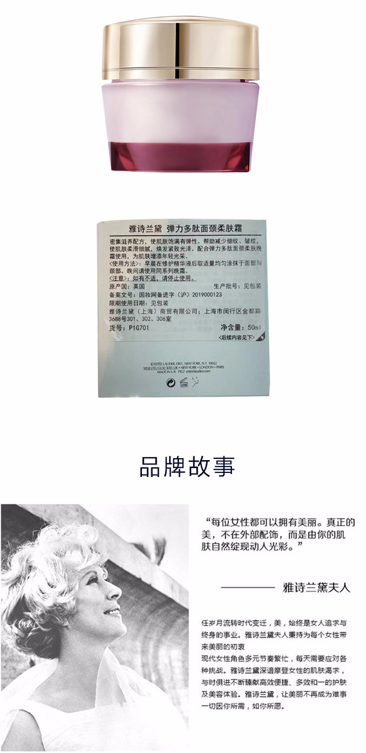 美国 ESTEE LAUDER 雅诗兰黛 弹力多肽面颈柔肤晚霜 50ml(提拉紧致)