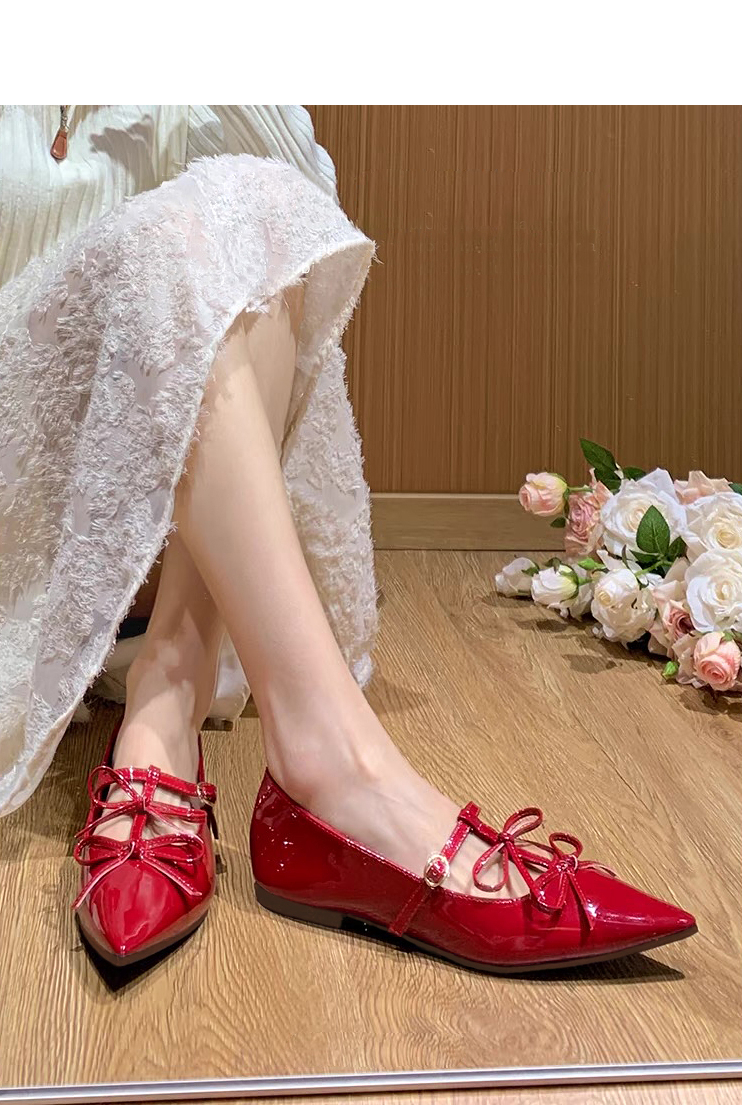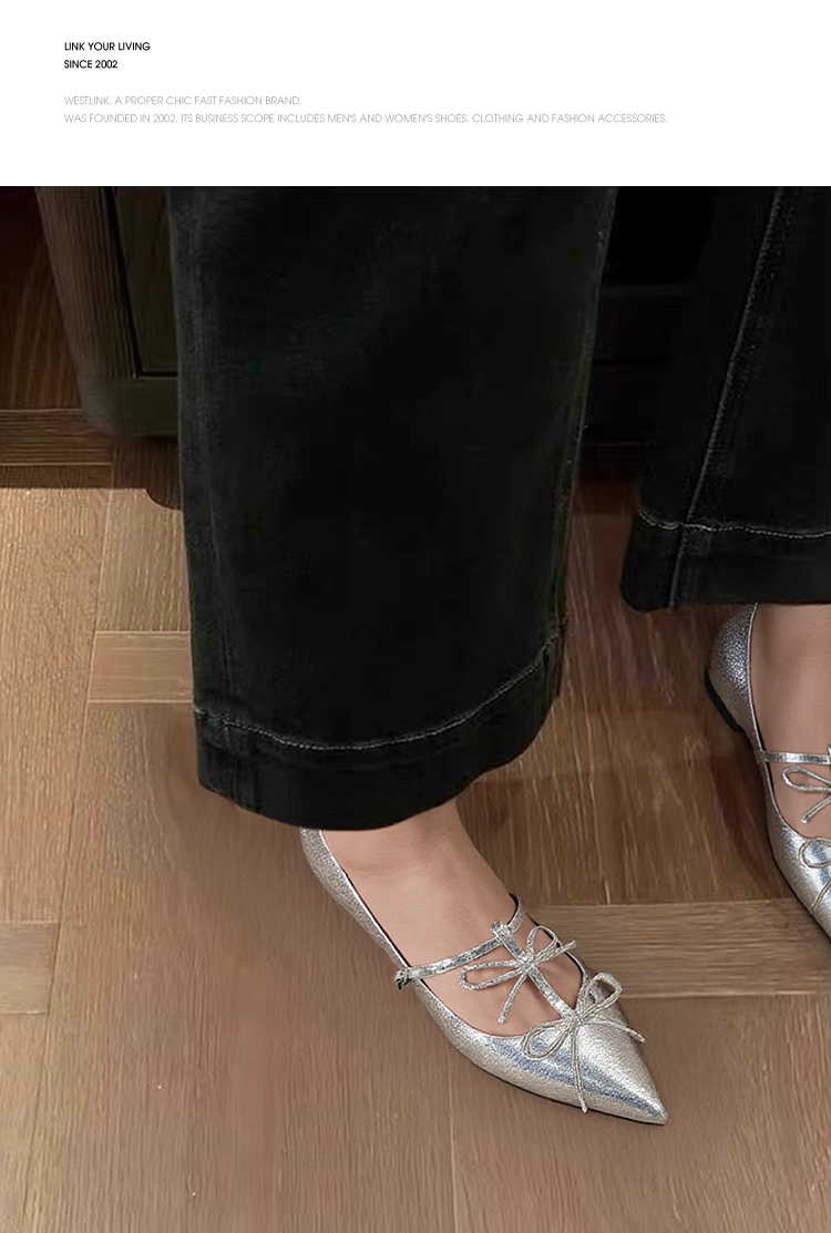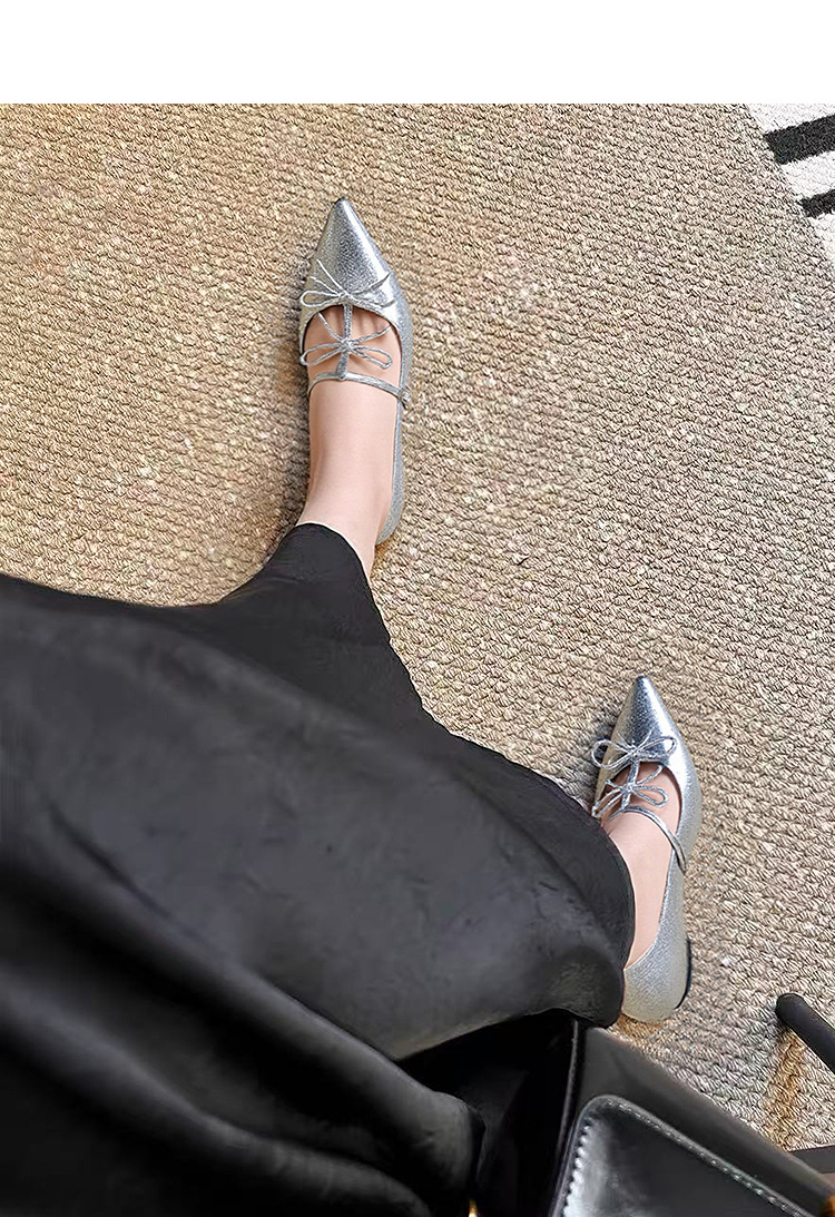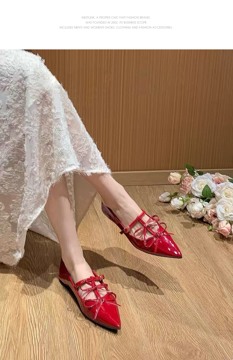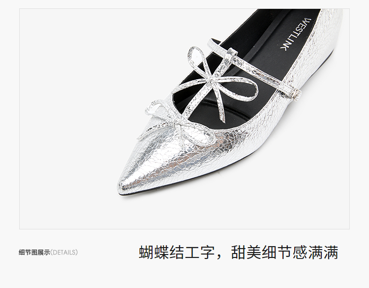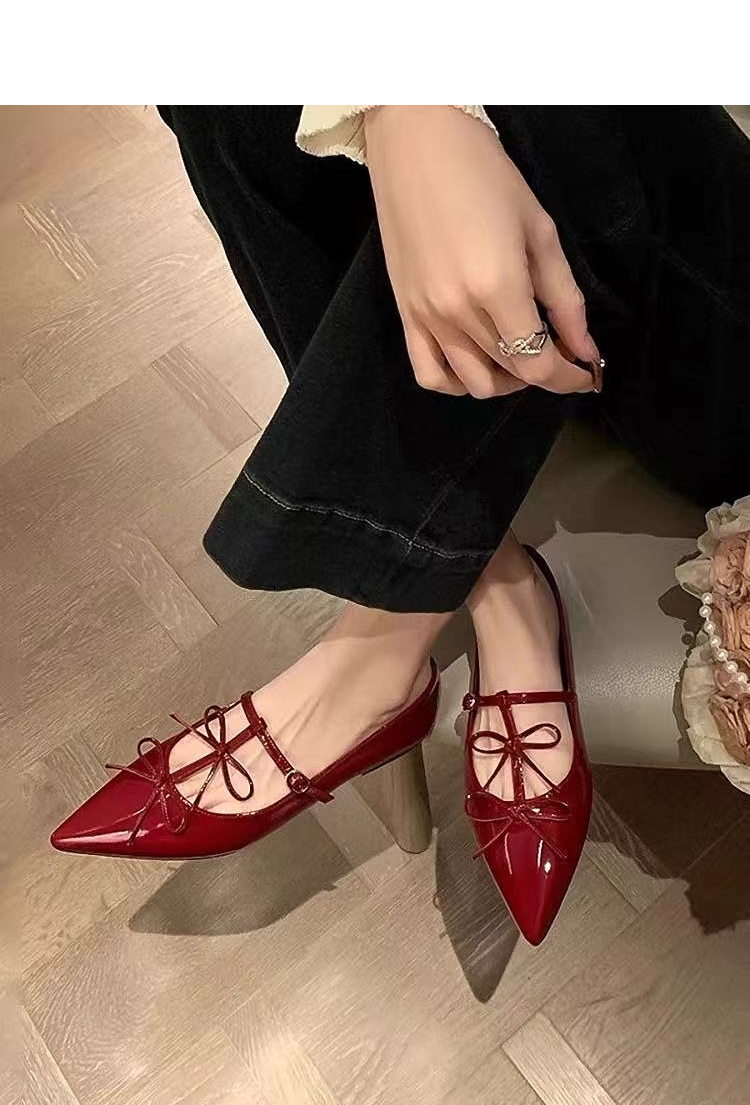 西遇蝴蝶结尖头单鞋女新款夏季法式绝美内增高配裙子玛丽珍鞋V1056721