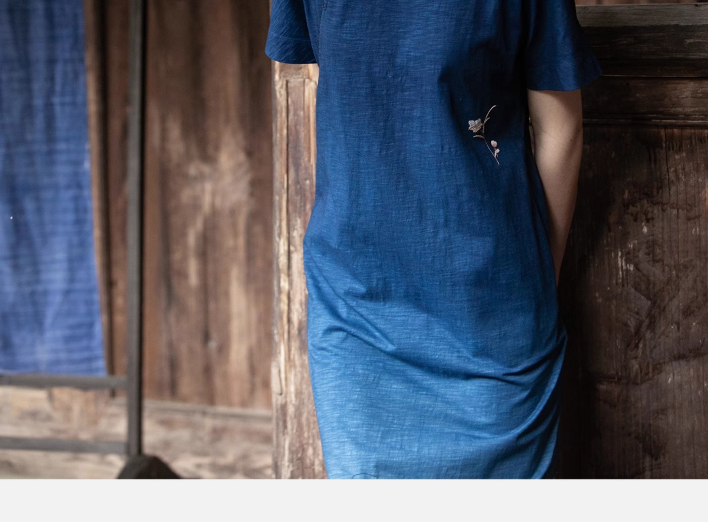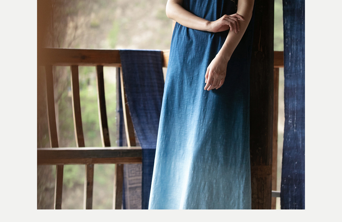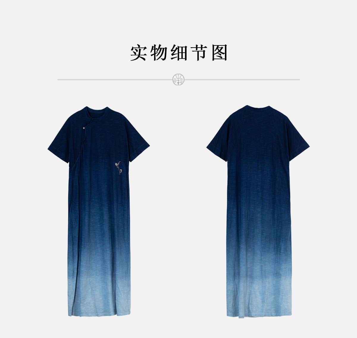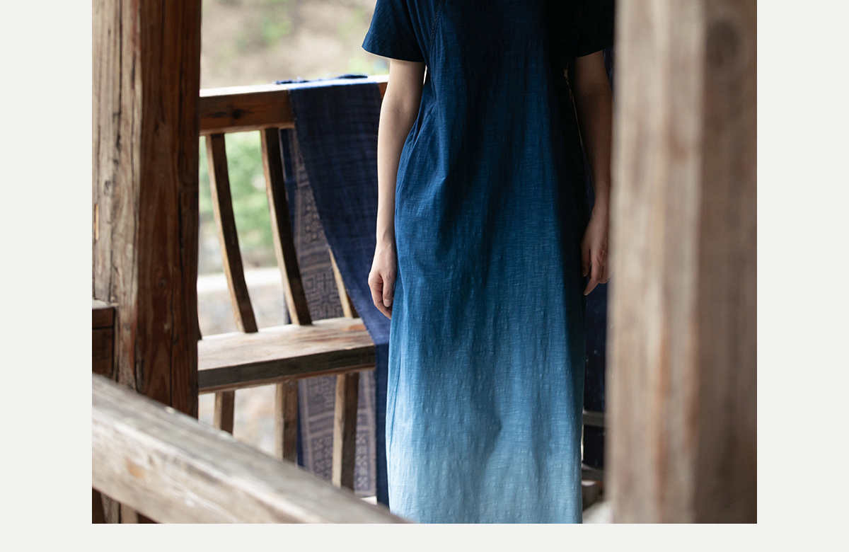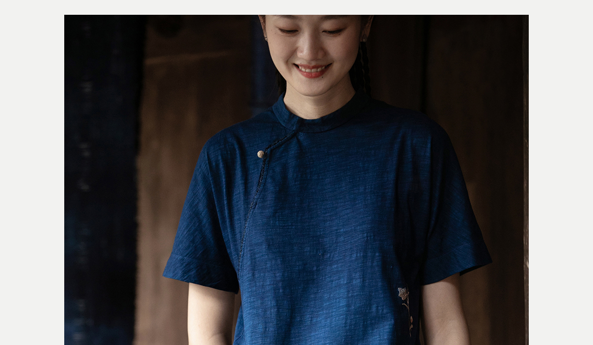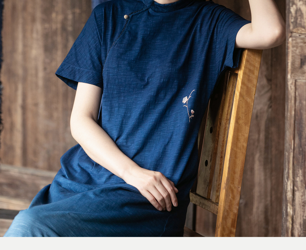 牧衣游原创 吊蓝染棉质连衣裙手绣质朴文艺复古新中式长裙 乐涛
