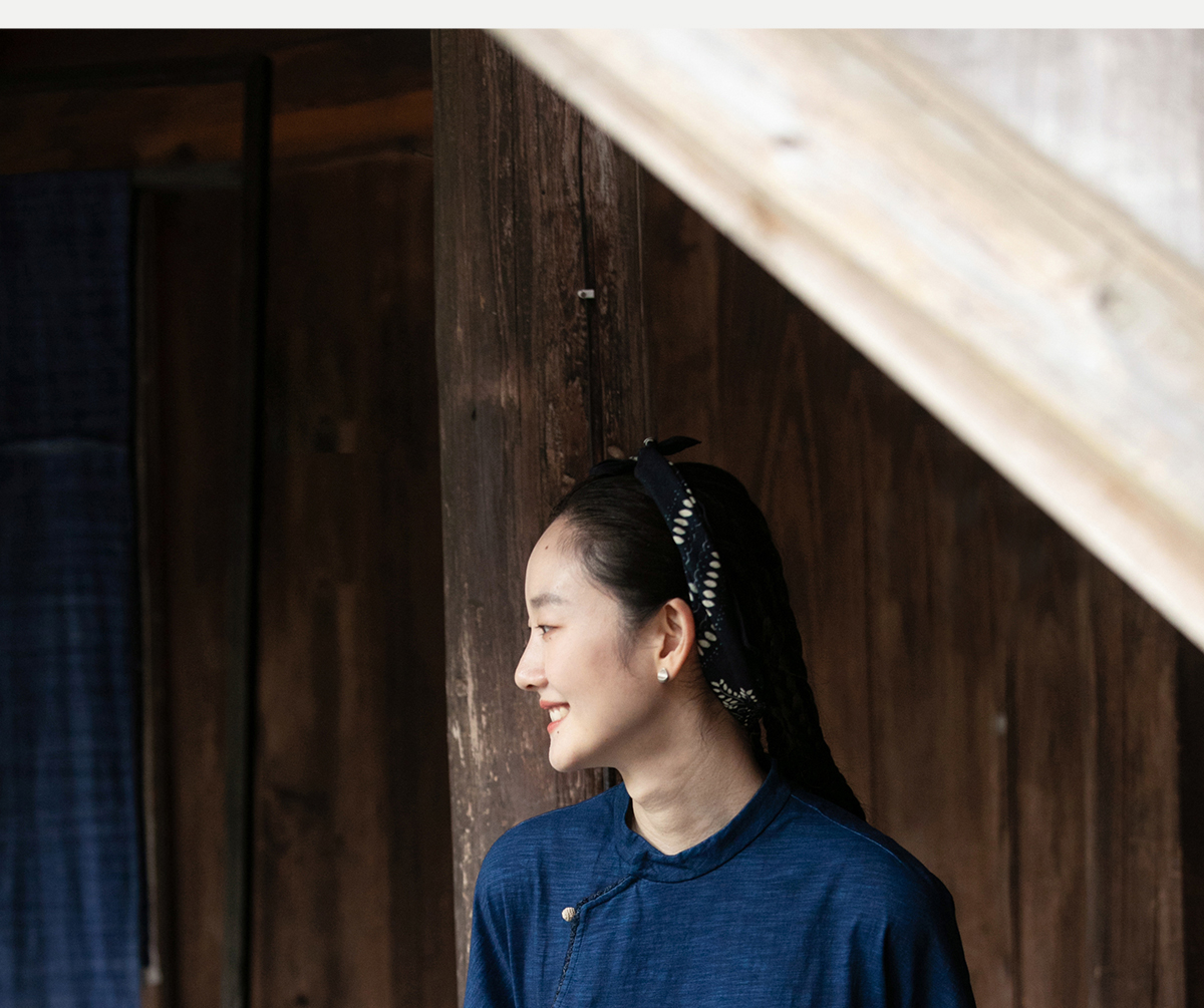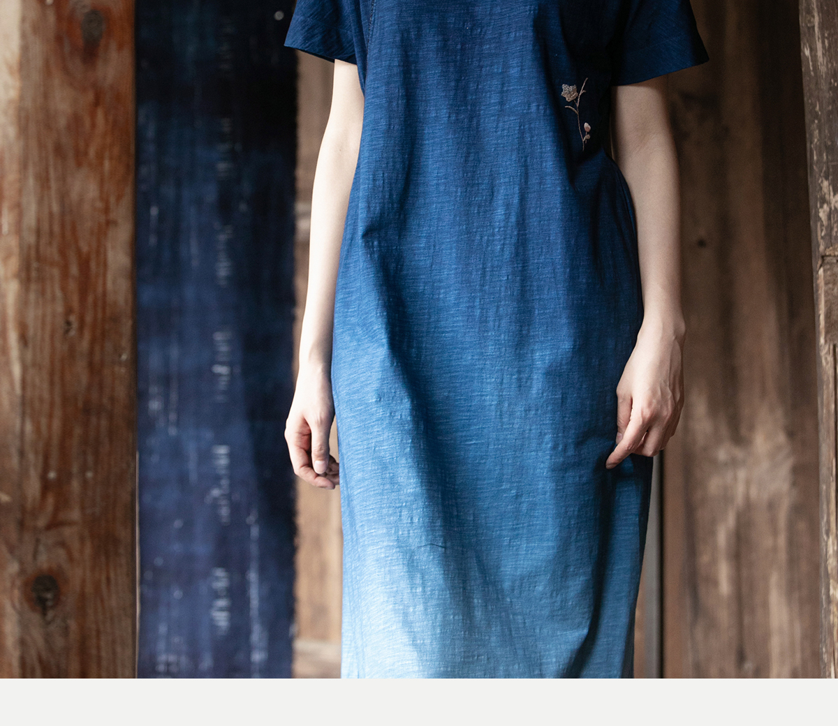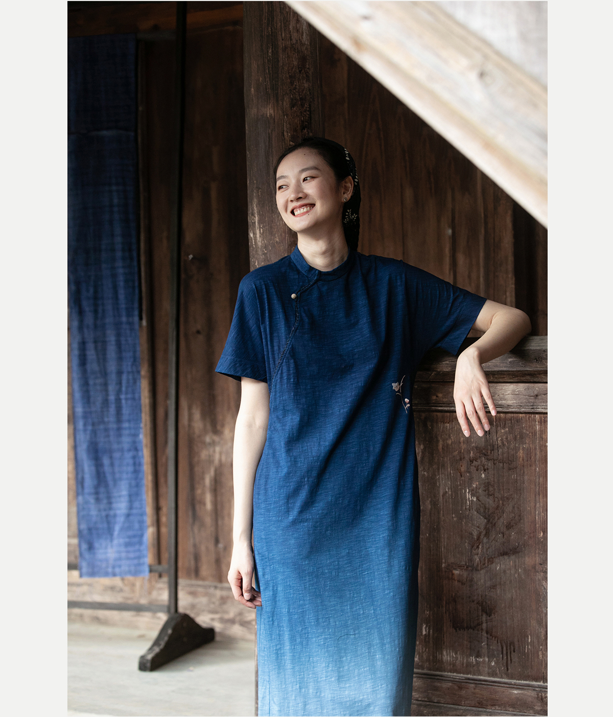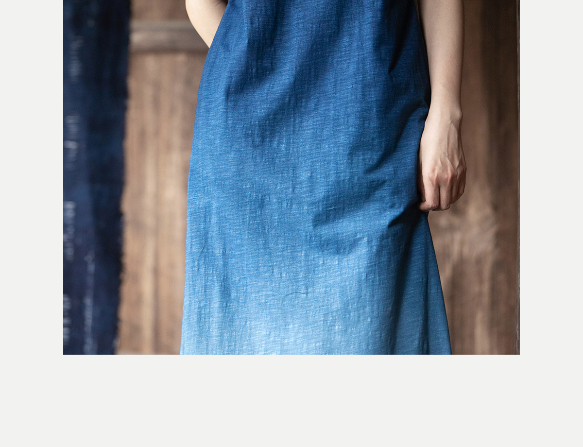 牧衣游原创 吊蓝染棉质连衣裙手绣质朴文艺复古新中式长裙 乐涛