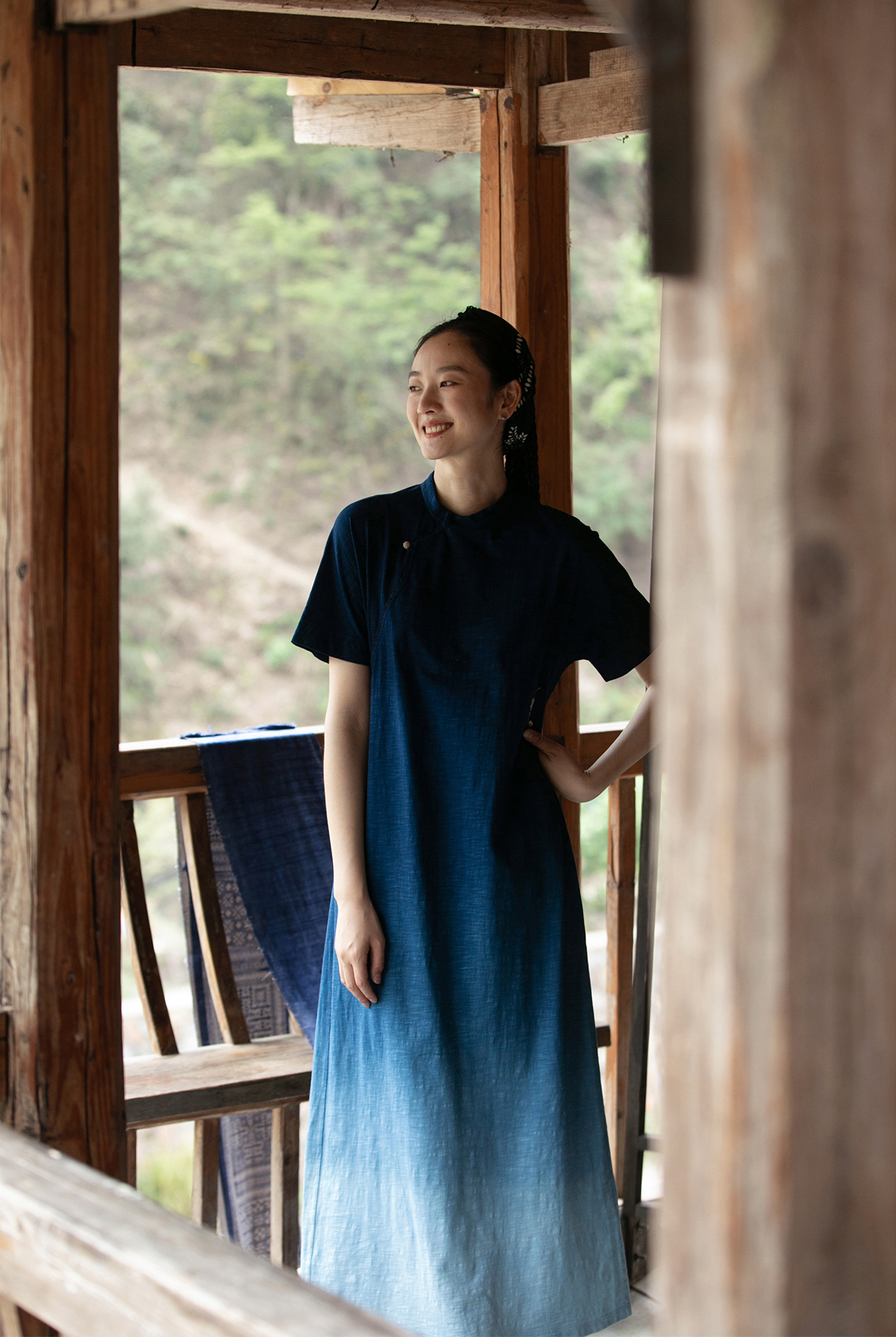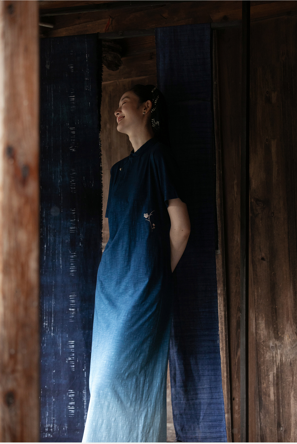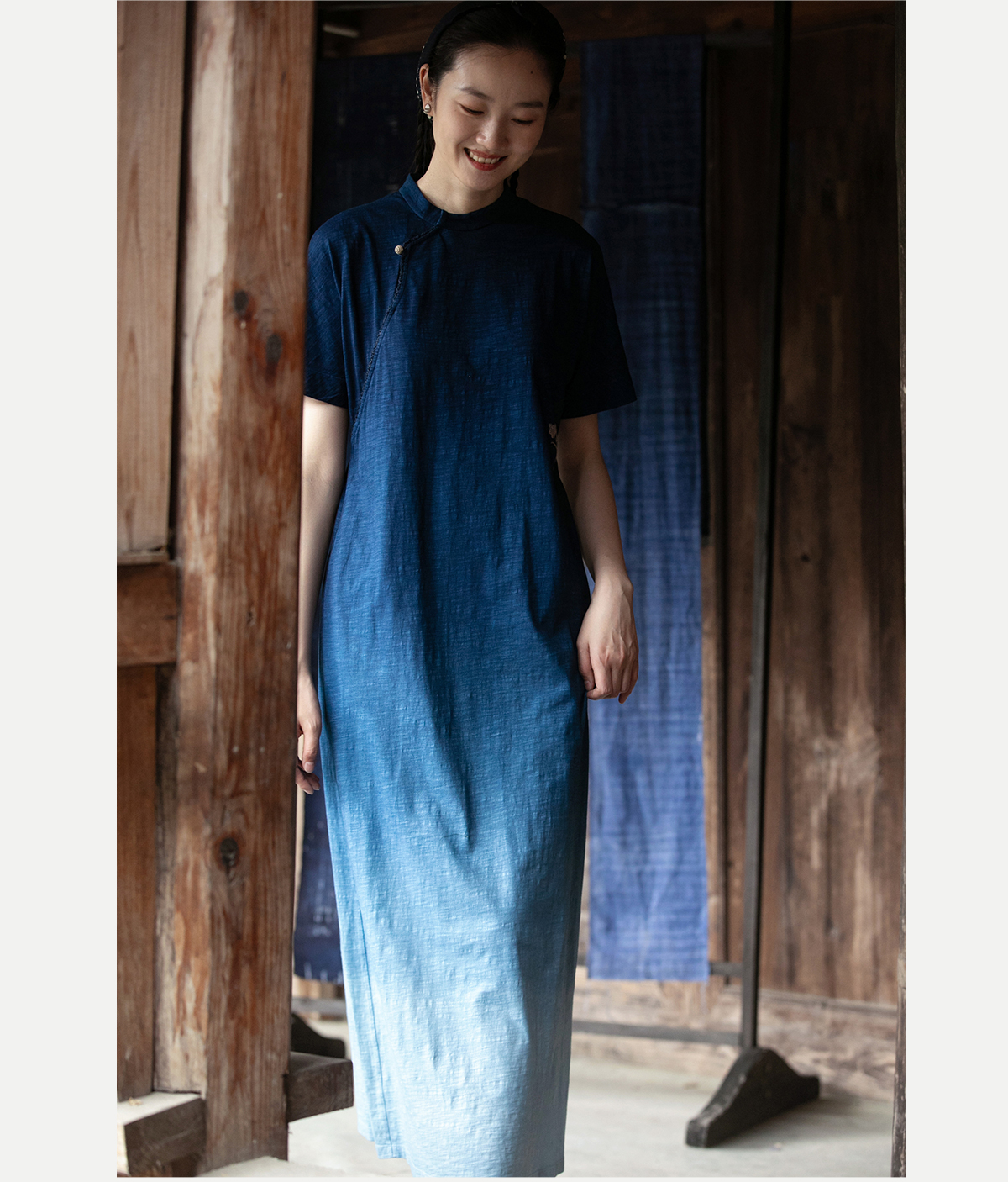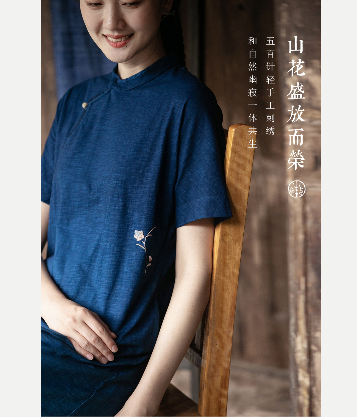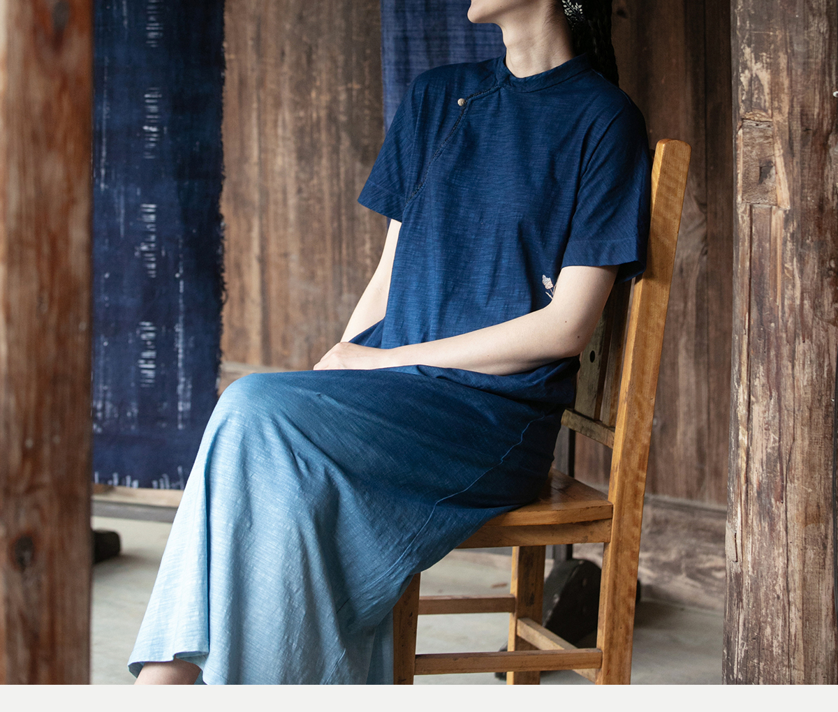 牧衣游原创 吊蓝染棉质连衣裙手绣质朴文艺复古新中式长裙 乐涛