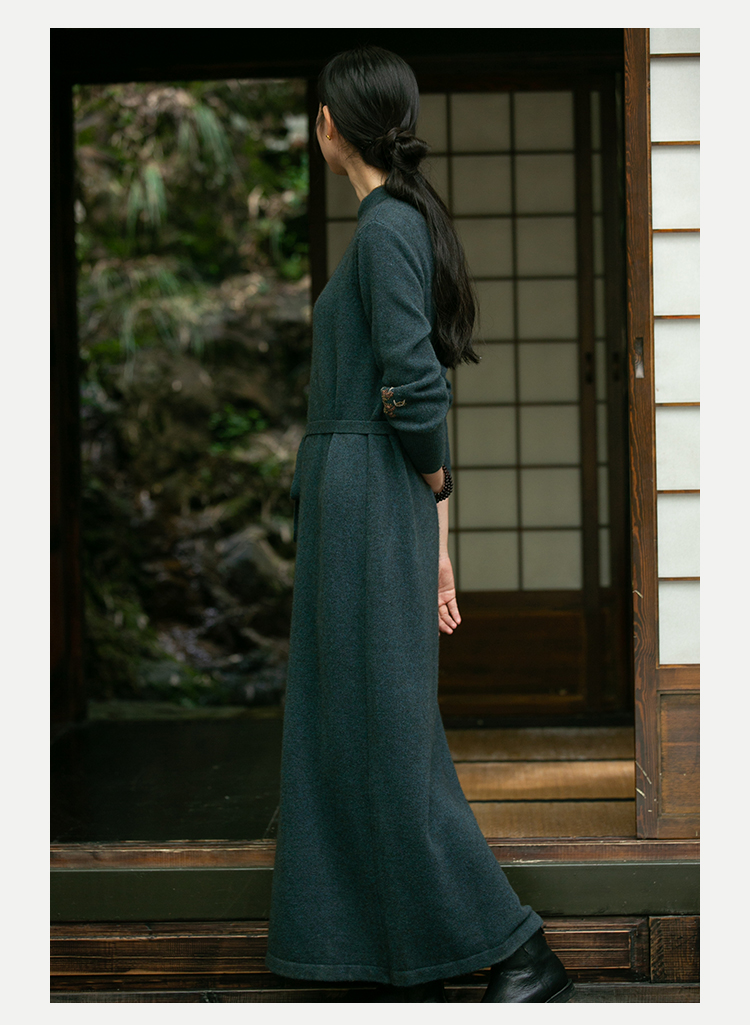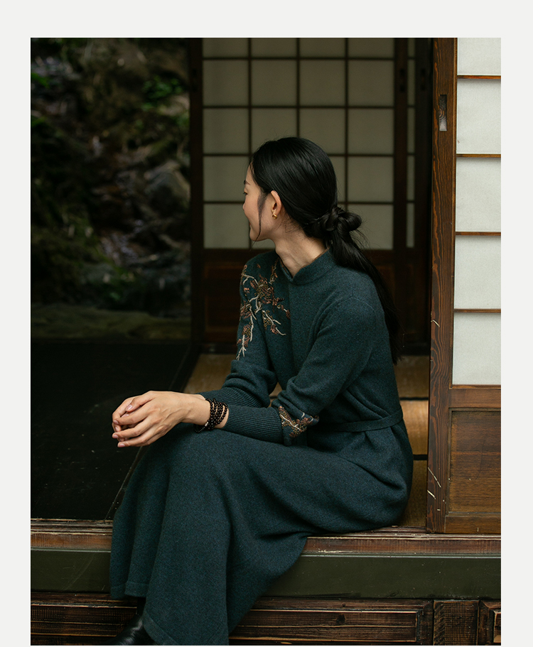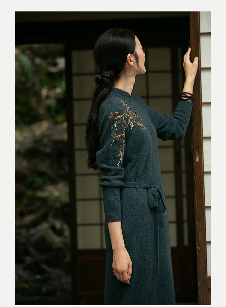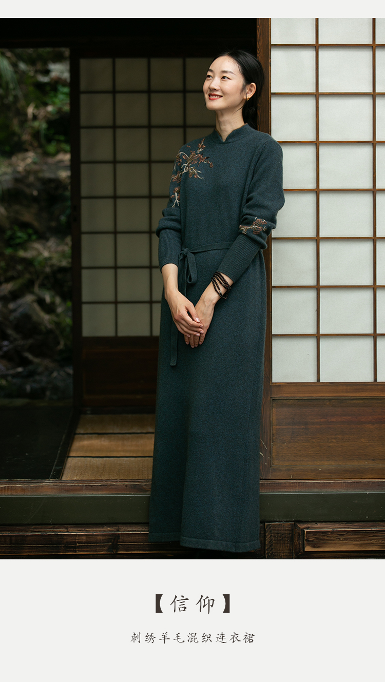 牧衣游原创设计女装复古文艺禅意连衣裙【刺绣毛织连衣裙】信仰