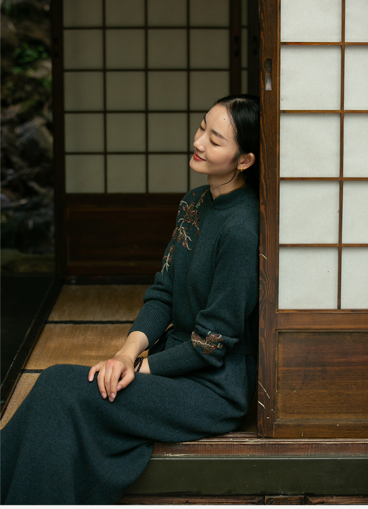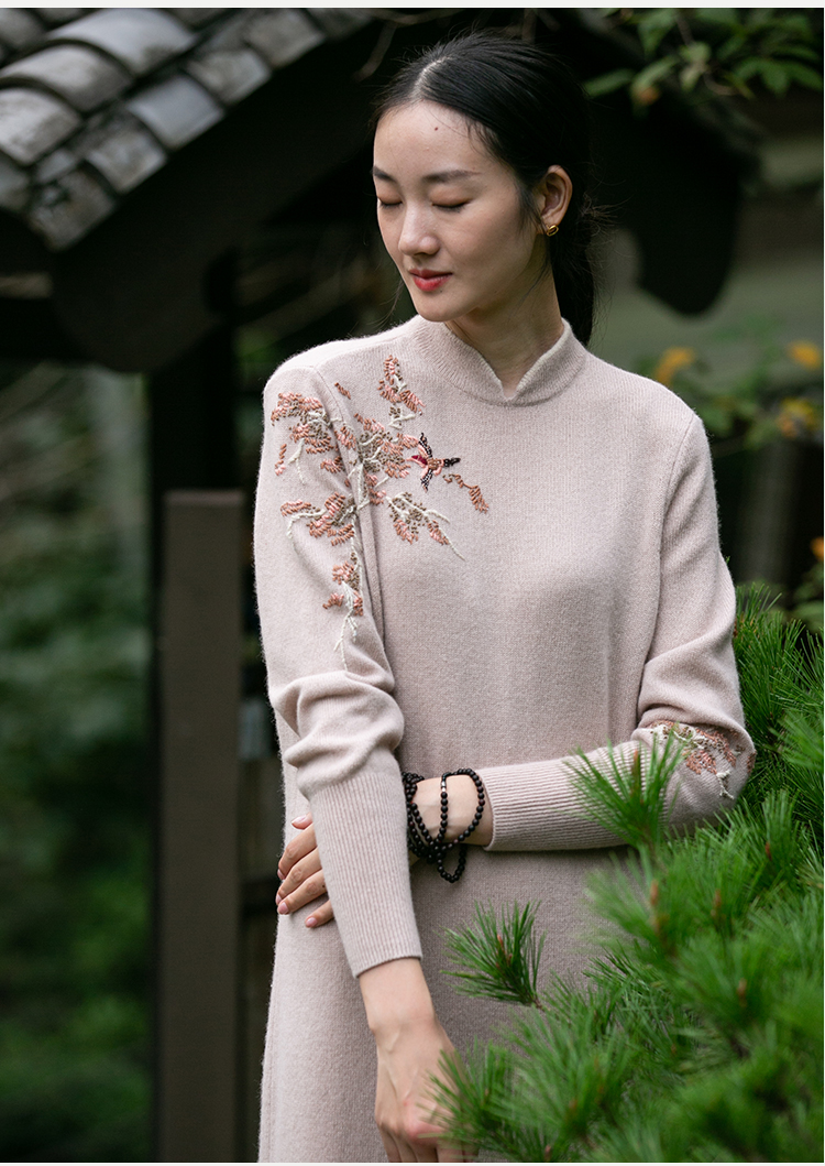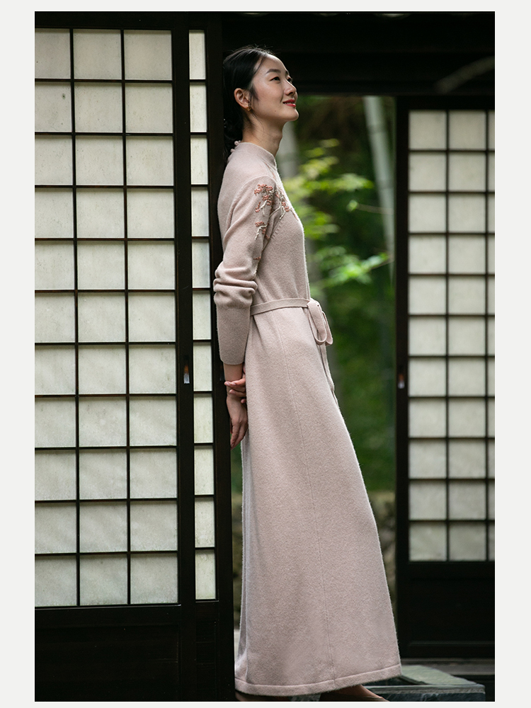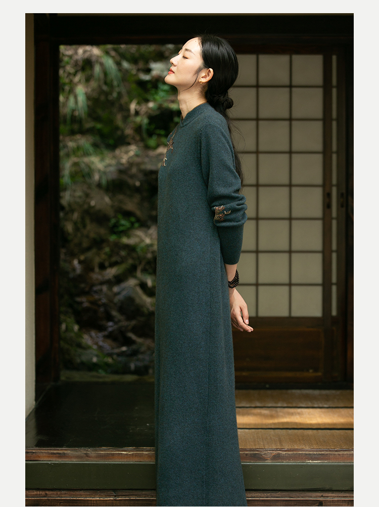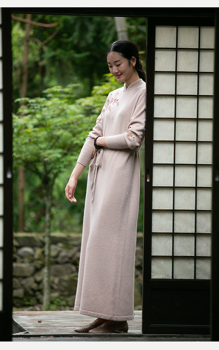 牧衣游原创设计女装复古文艺禅意连衣裙【刺绣毛织连衣裙】信仰