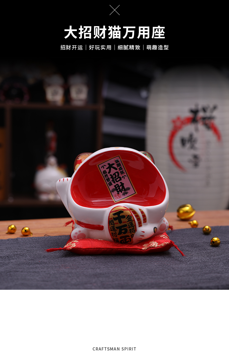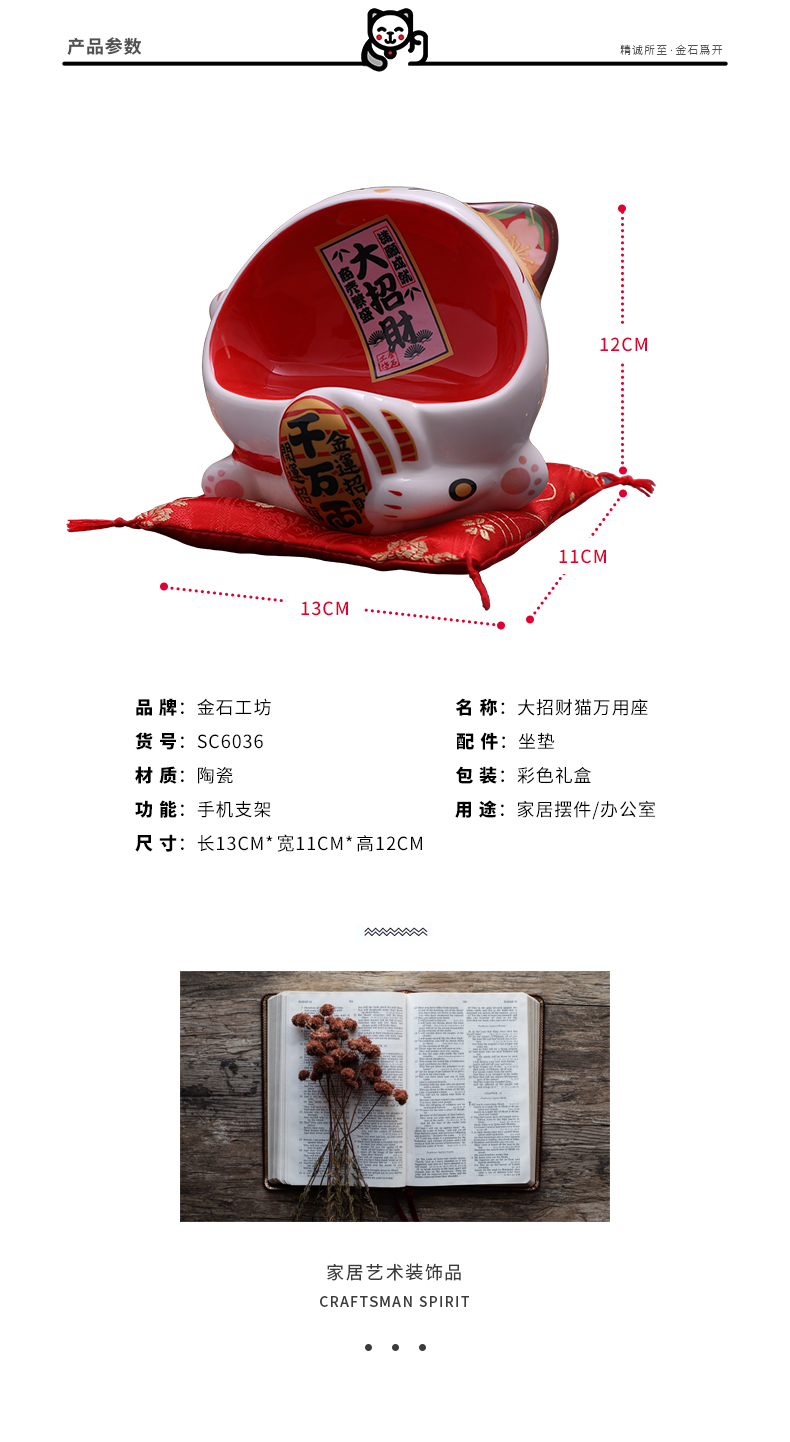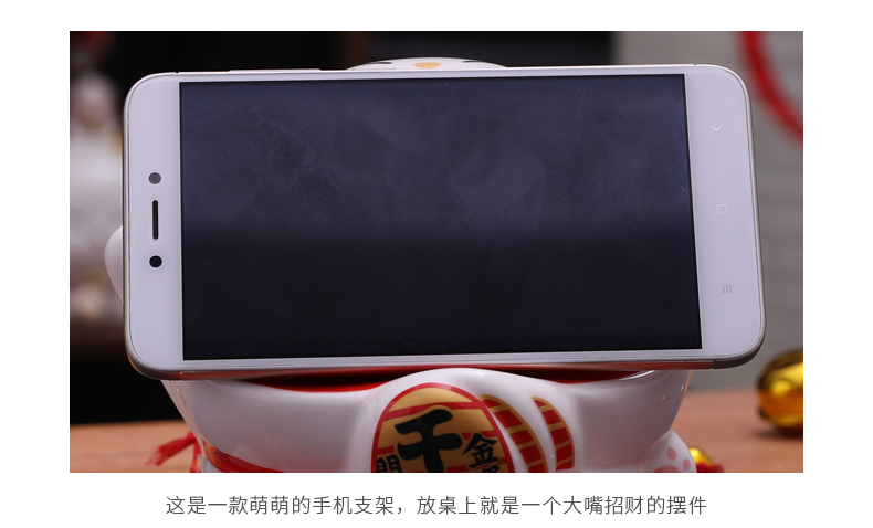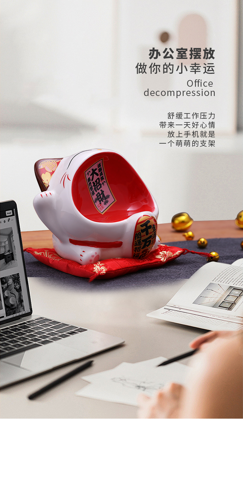 金石工坊大嘴招财猫万用座手机支架可爱桌面陶瓷创意摆件