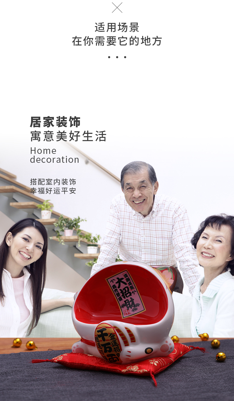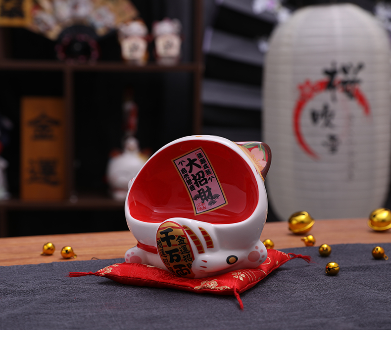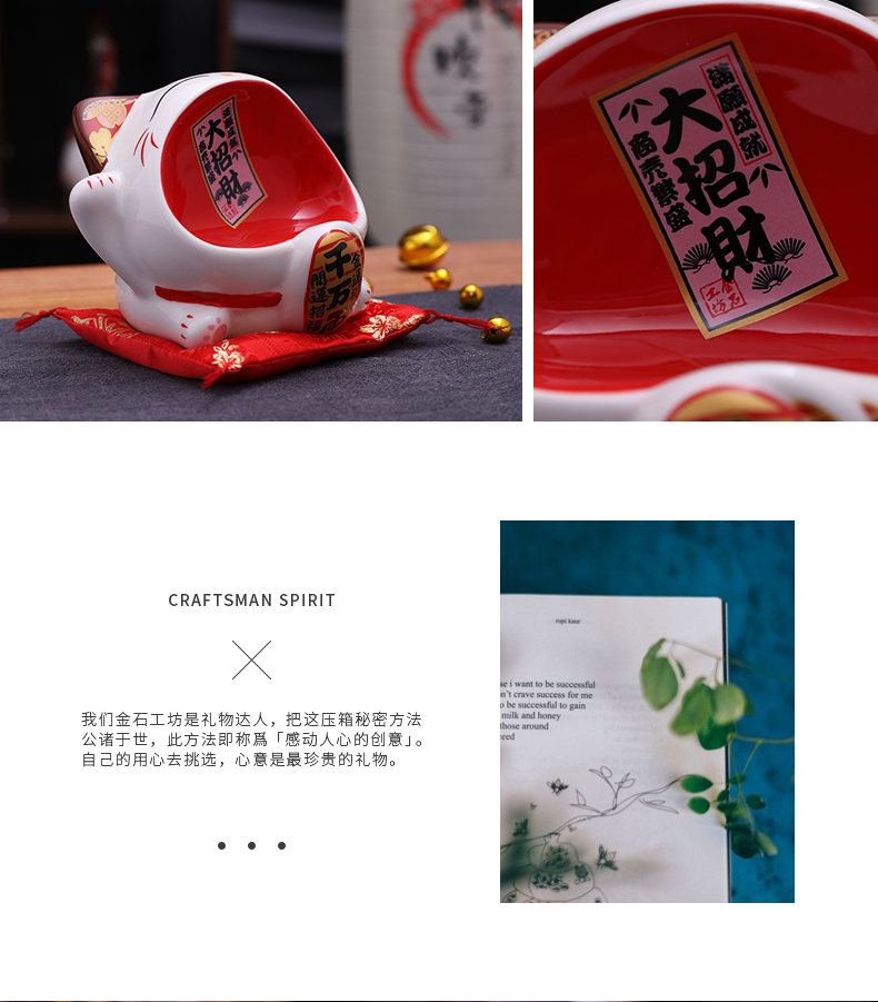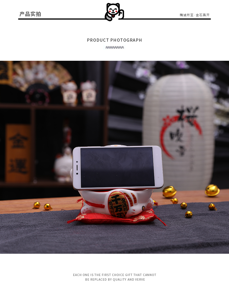 金石工坊大嘴招财猫万用座手机支架可爱桌面陶瓷创意摆件