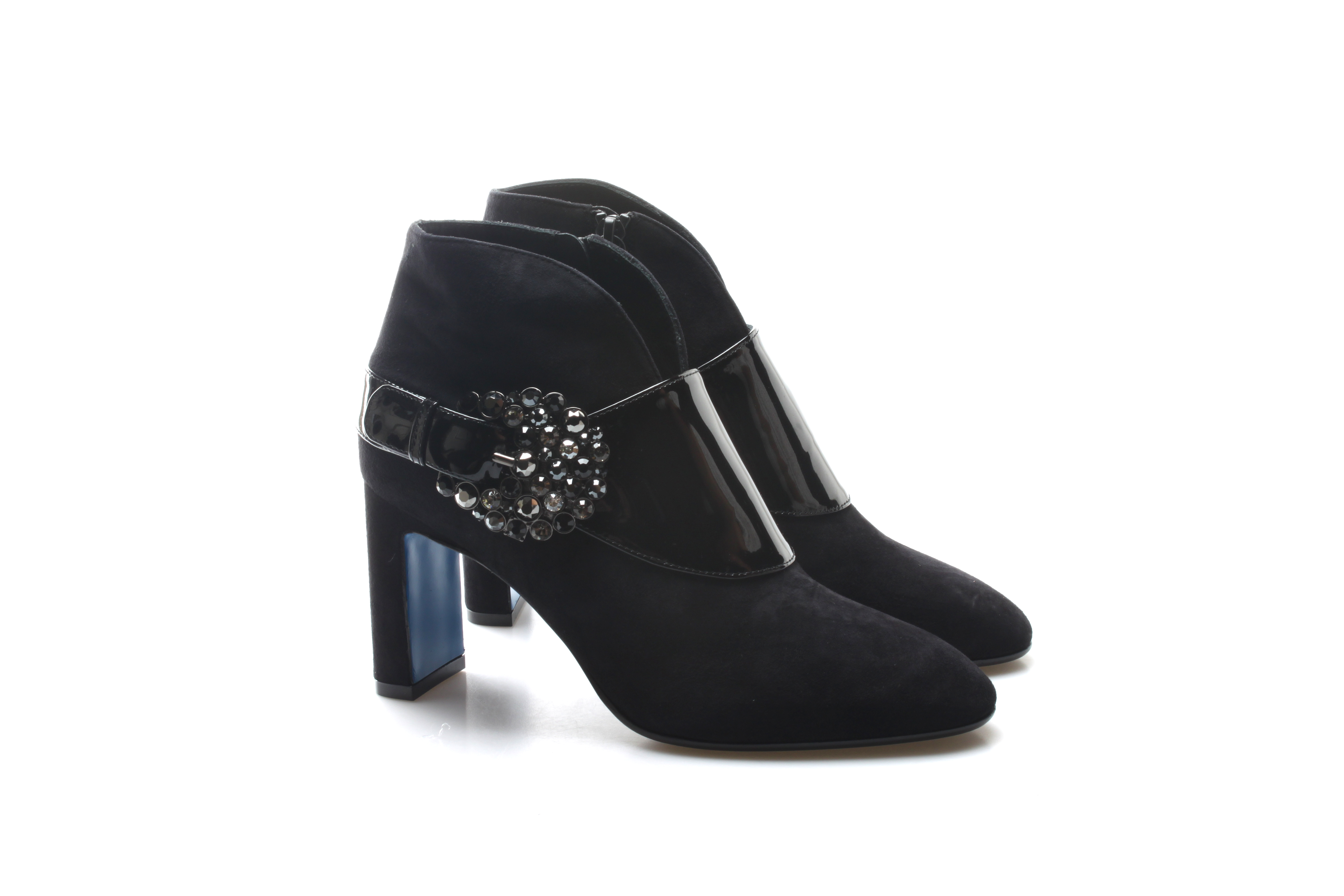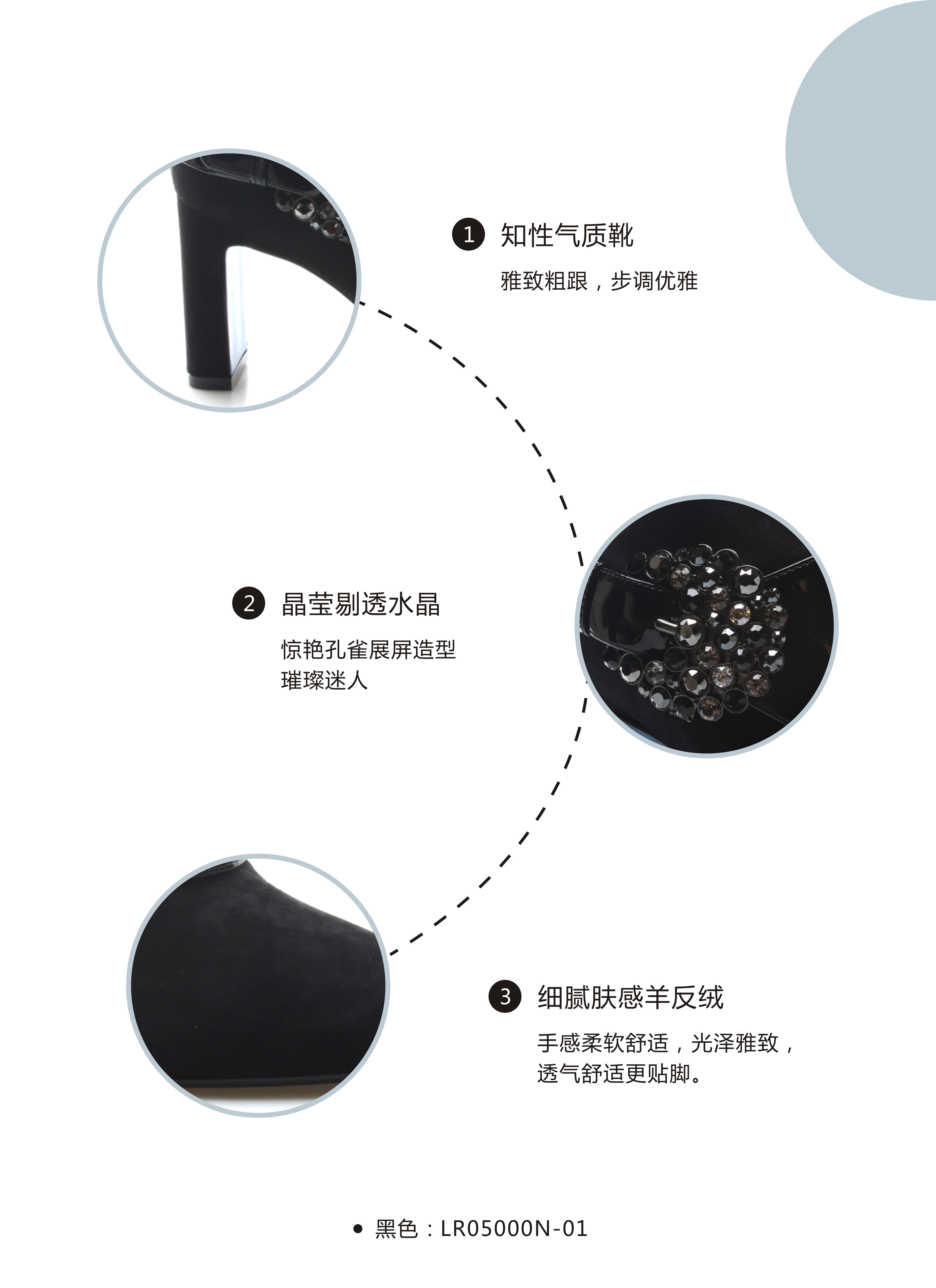 豪麟名鞋奥莱LORIBLU女装羊反绒面革时尚雅致靴LR05000N黑色 原价5660元