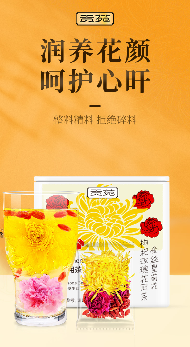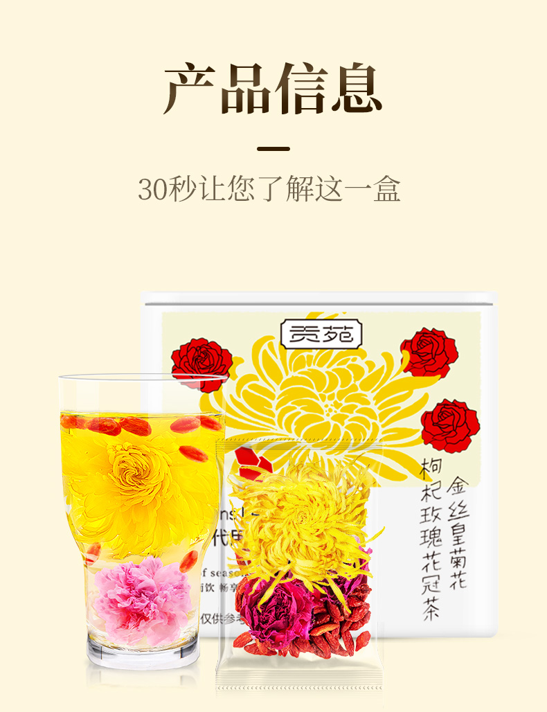 【自营】 贡苑 金丝皇菊花枸杞玫瑰花冠茶 3.7g*7包
