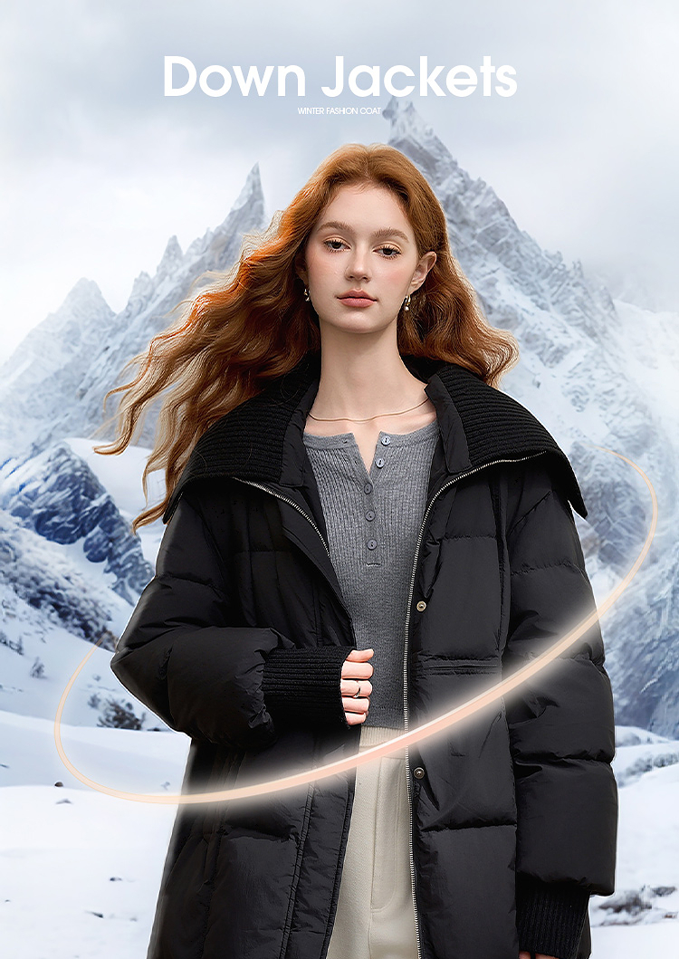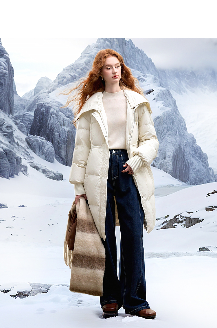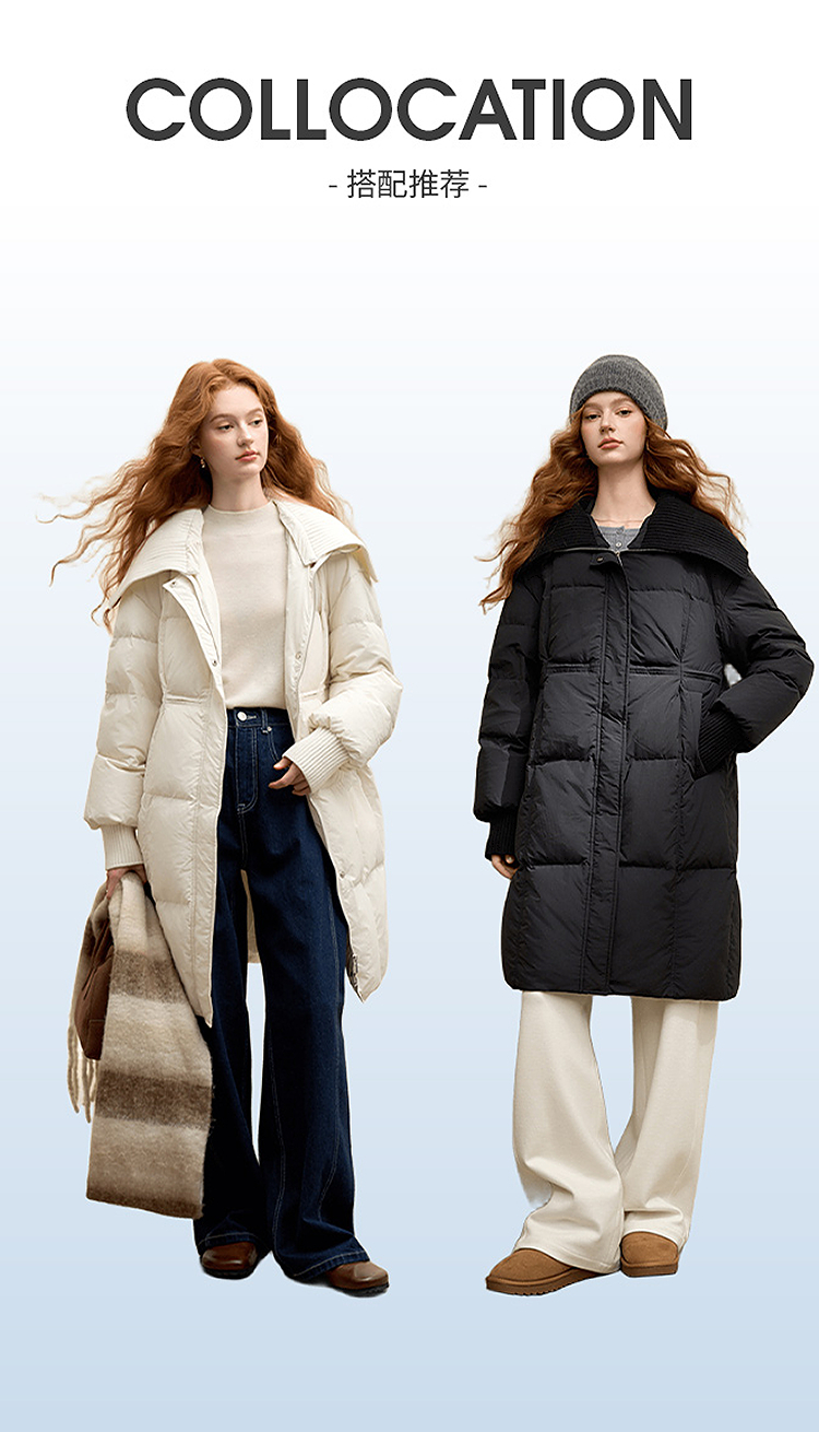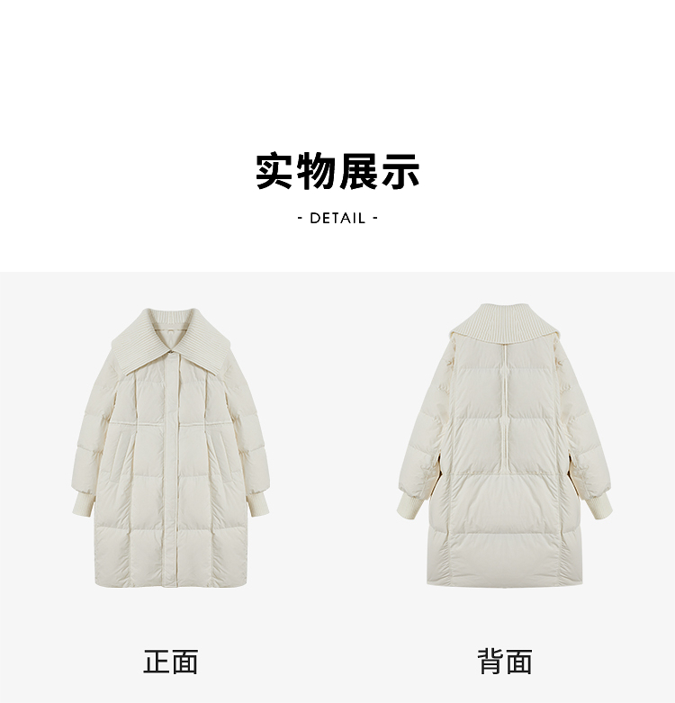 高级感针织围领中长款羽绒服女秋冬加绒保暖面包服外套V0043457