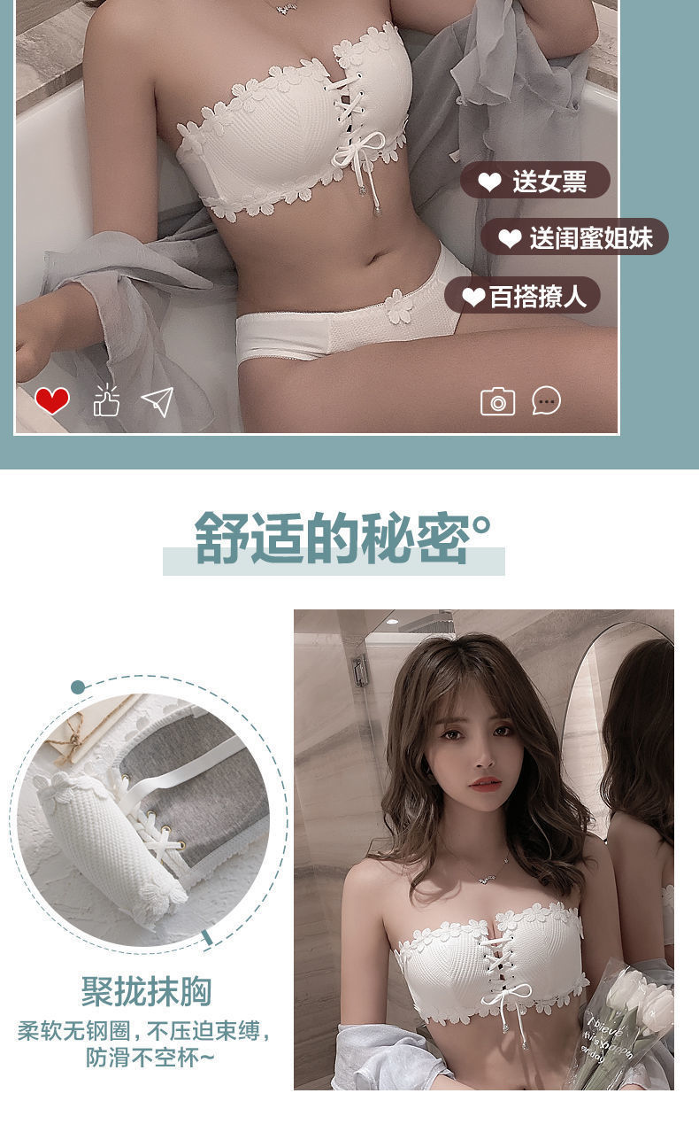 【一拉就聚 集中聚拢~ !】新款无肩带美背文胸 少女性感绑带无钢圈小胸聚拢防下垂 性感瞬间Bao炸!!!
