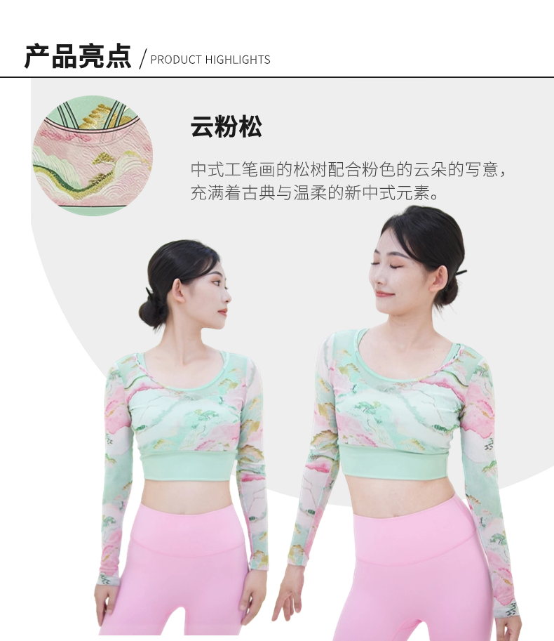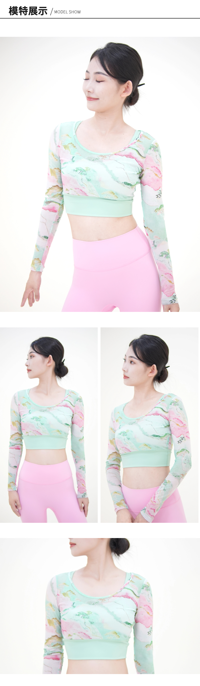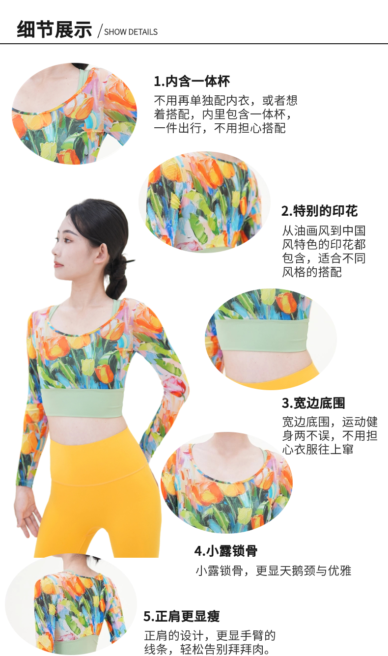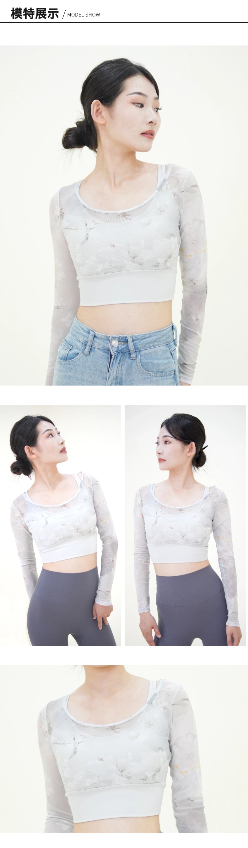 I'd爱帝一体式固定杯罩衫美背修身高弹长袖瑜伽运动上衣