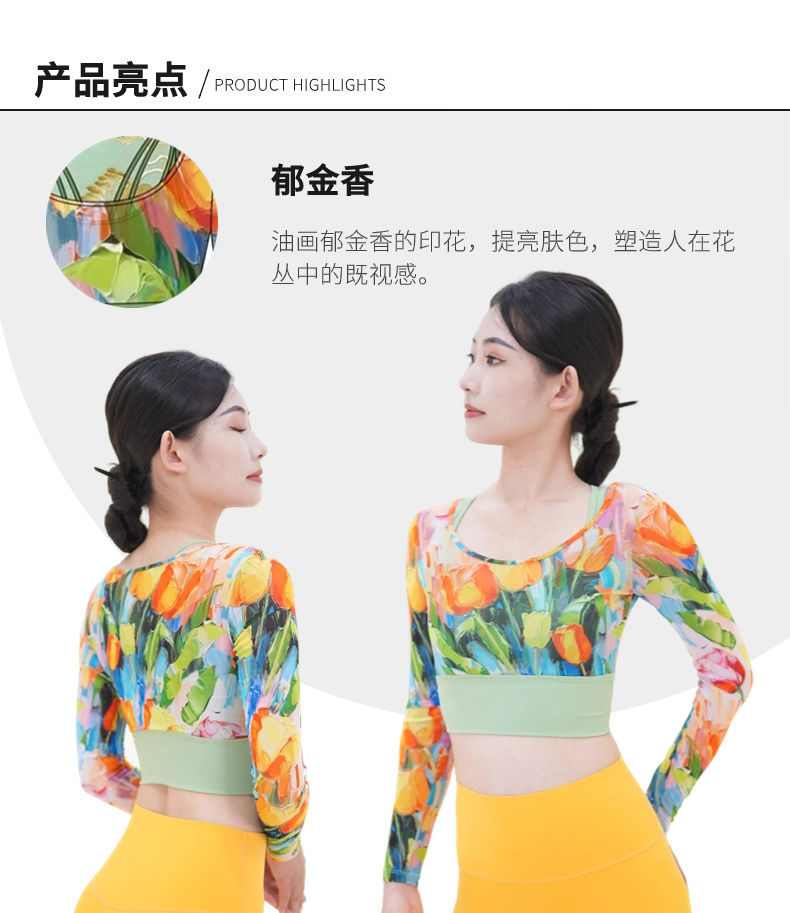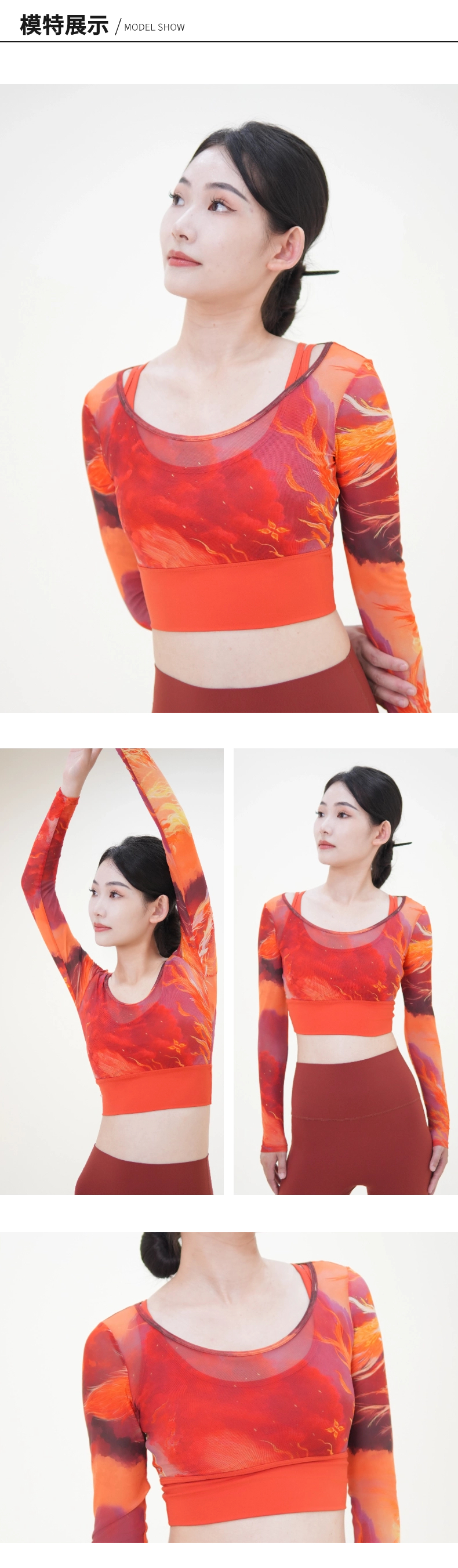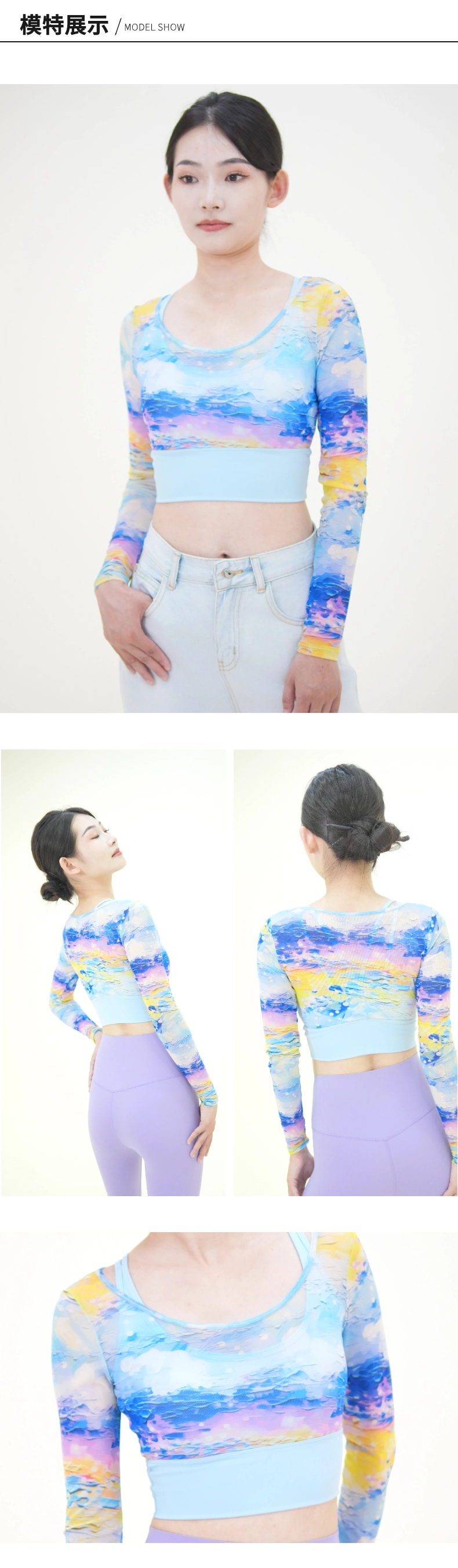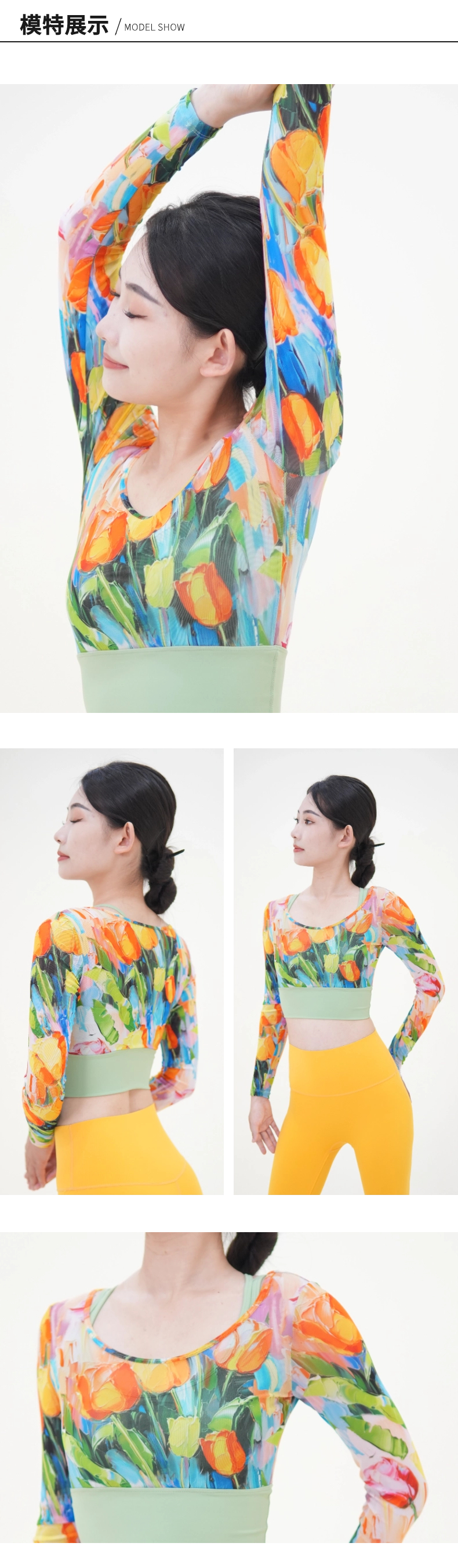 I'd爱帝一体式固定杯罩衫美背修身高弹长袖瑜伽运动上衣