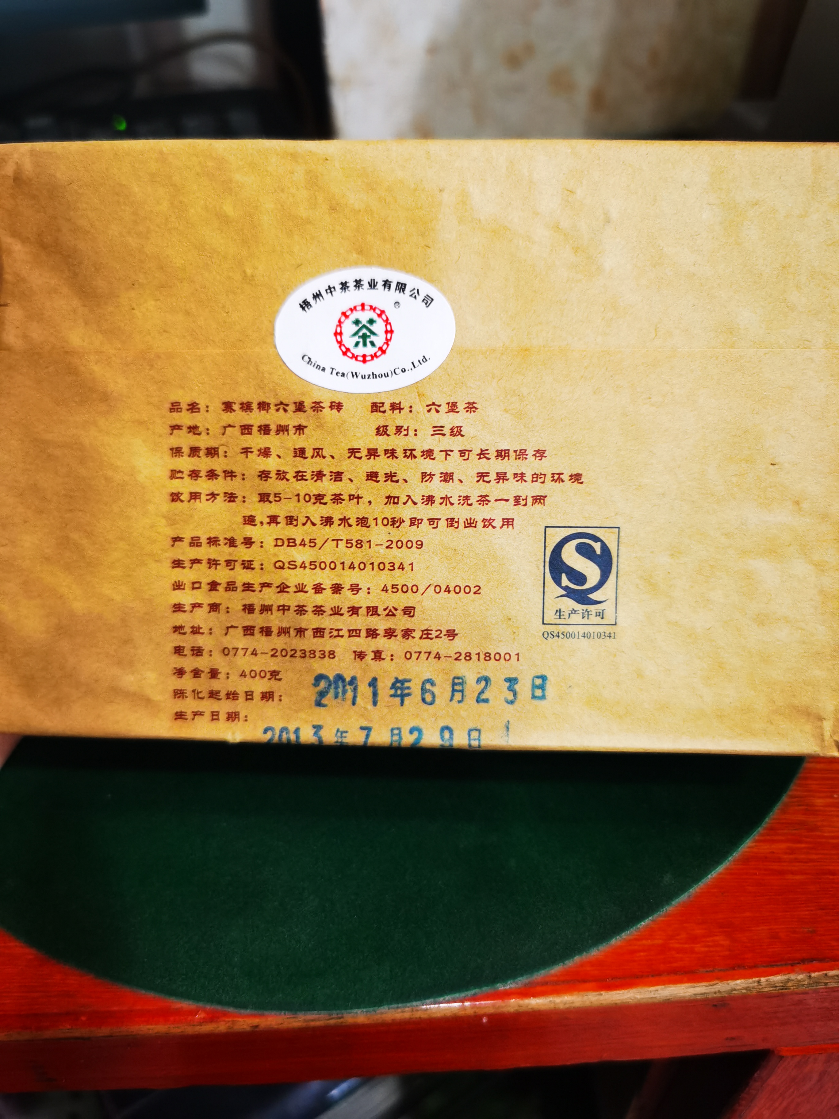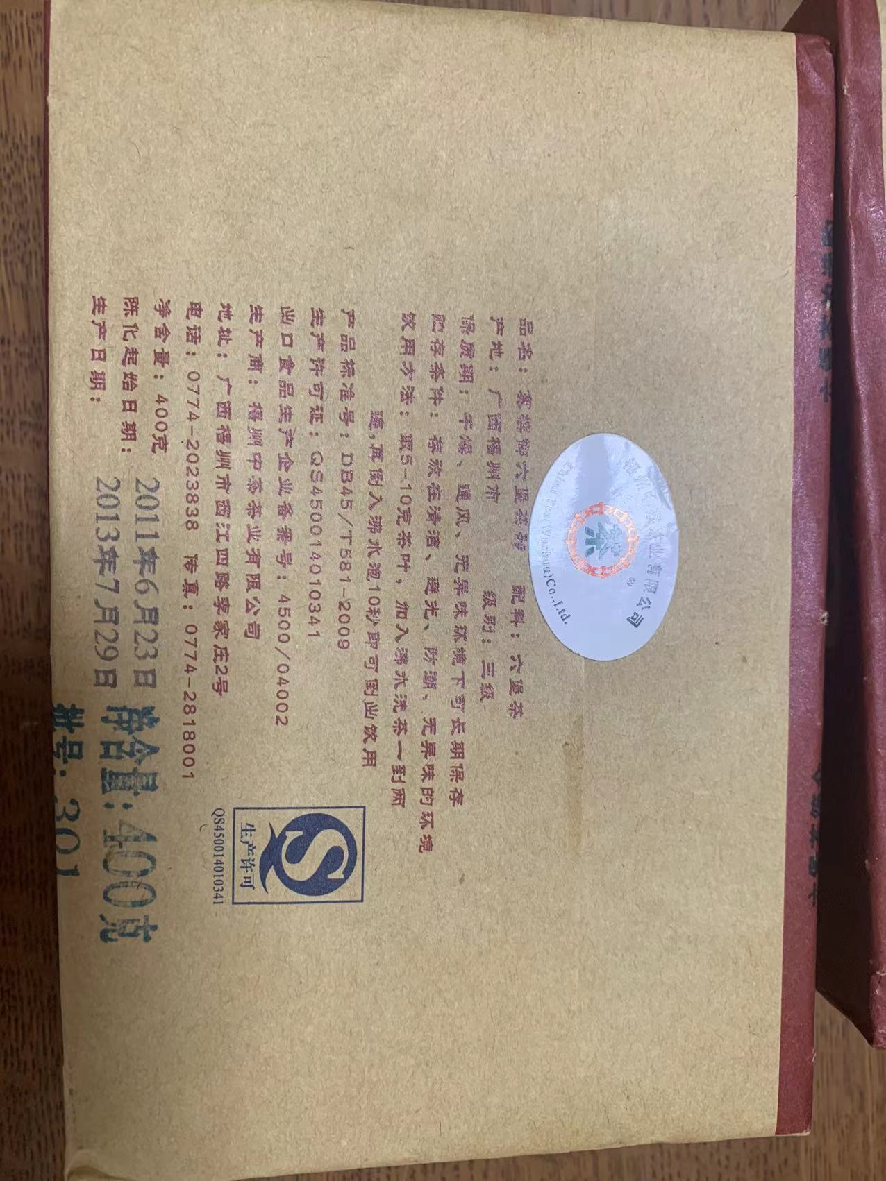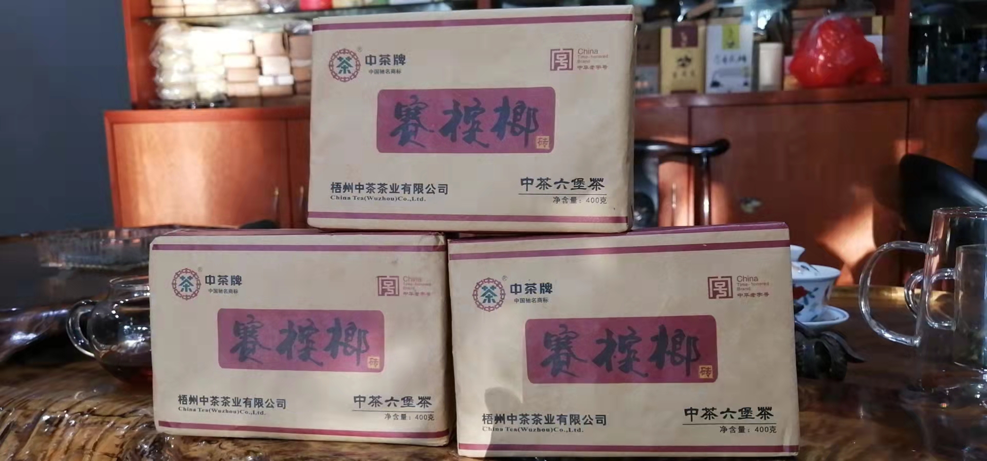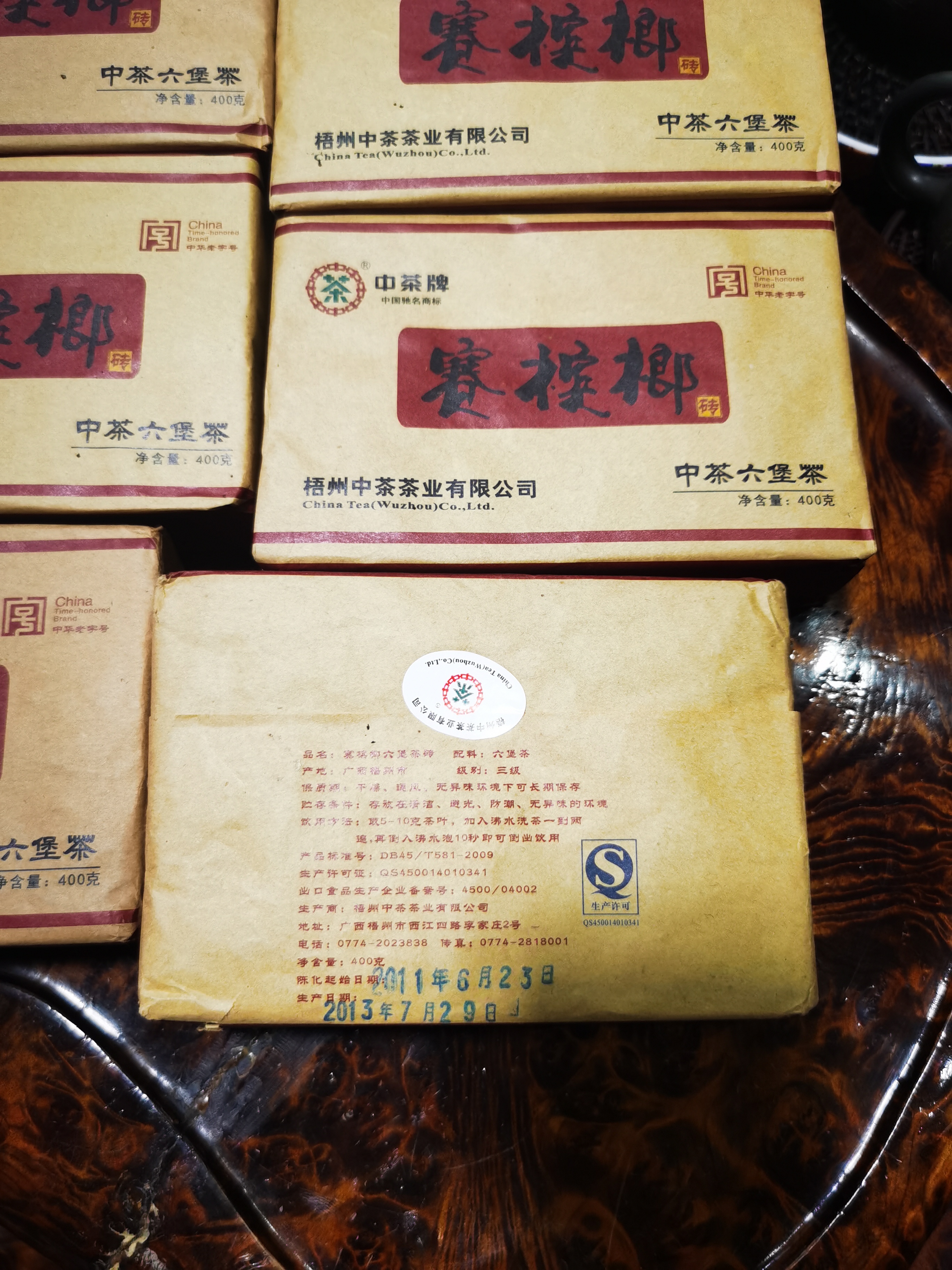 广西梧州六堡茶中茶六堡黑茶2013年赛槟榔400克装砖茶