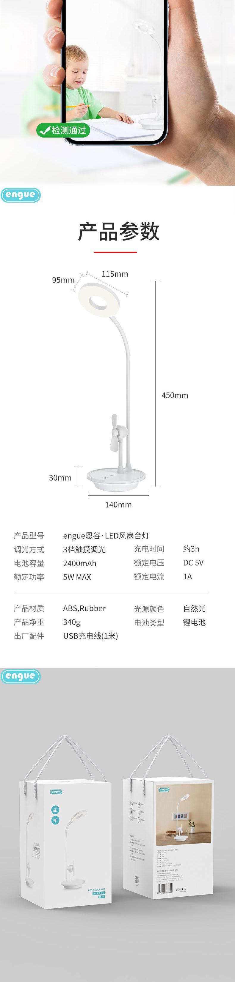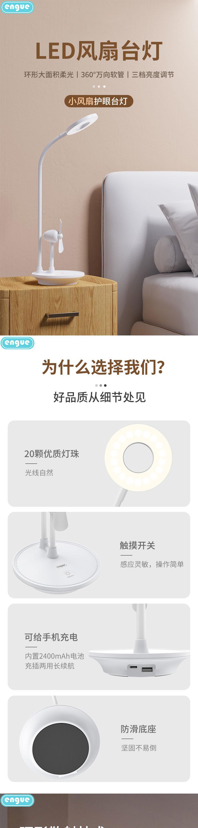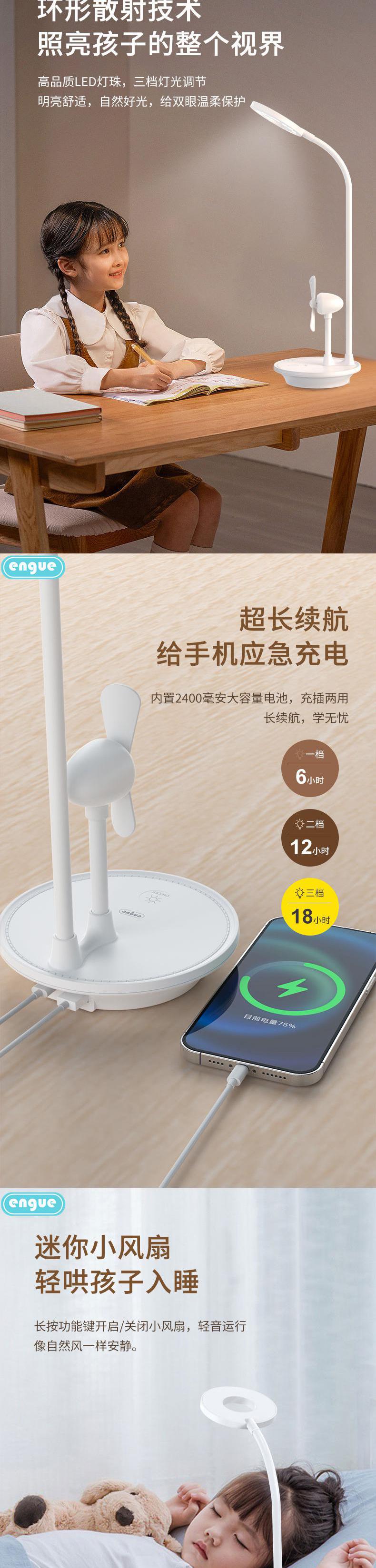 engue恩谷 三合一风扇台灯(星空)EG-610风扇照明充电宝三用宿舍神器