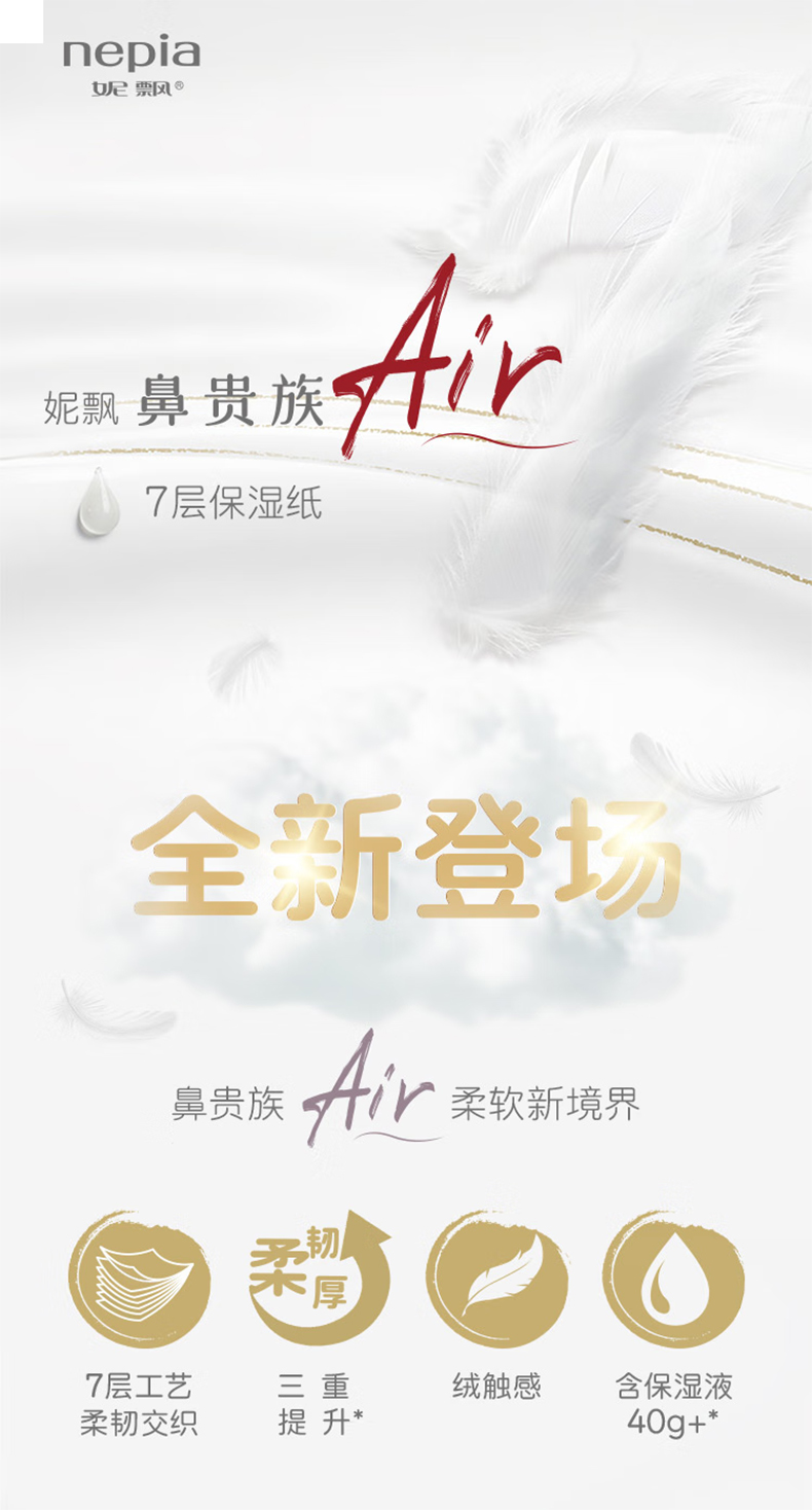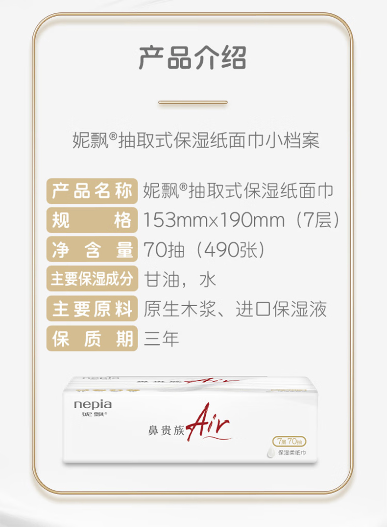 妮飘抽取式保湿纸面巾70抽X6盒(鼻贵族Air)