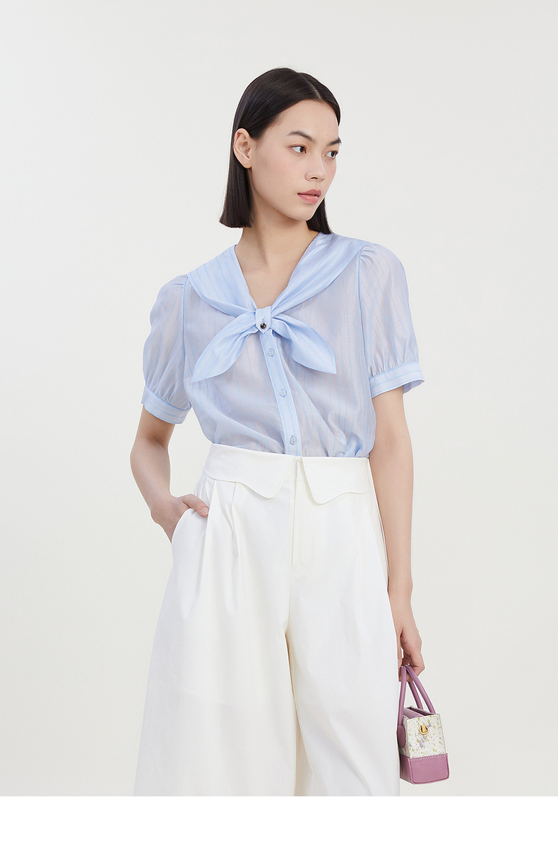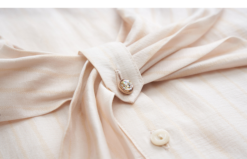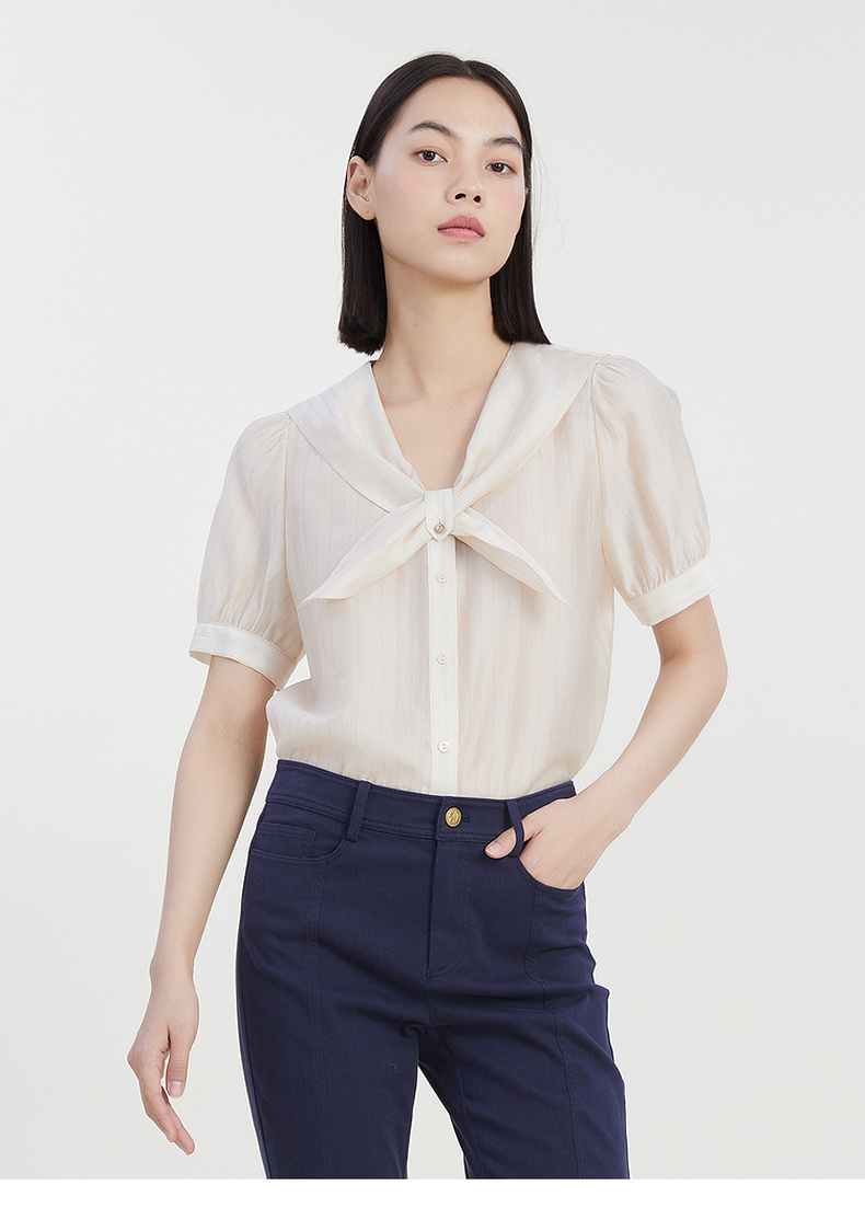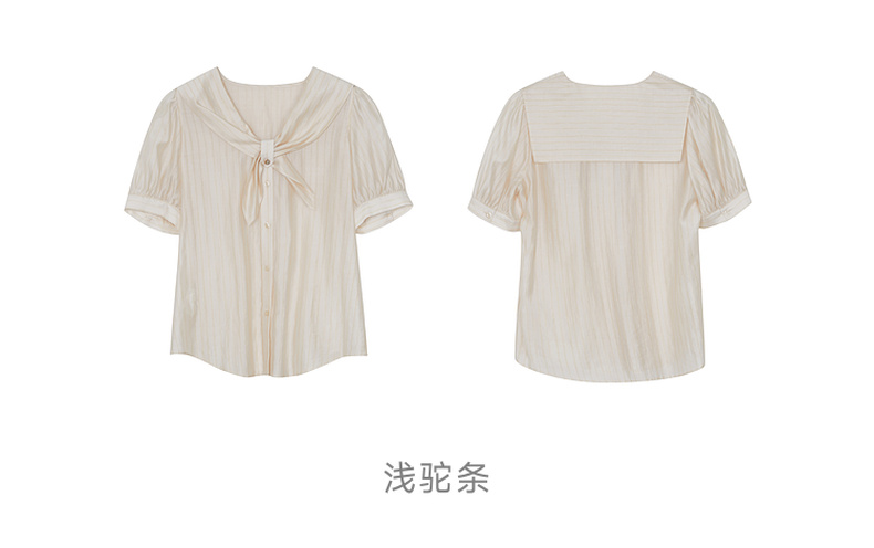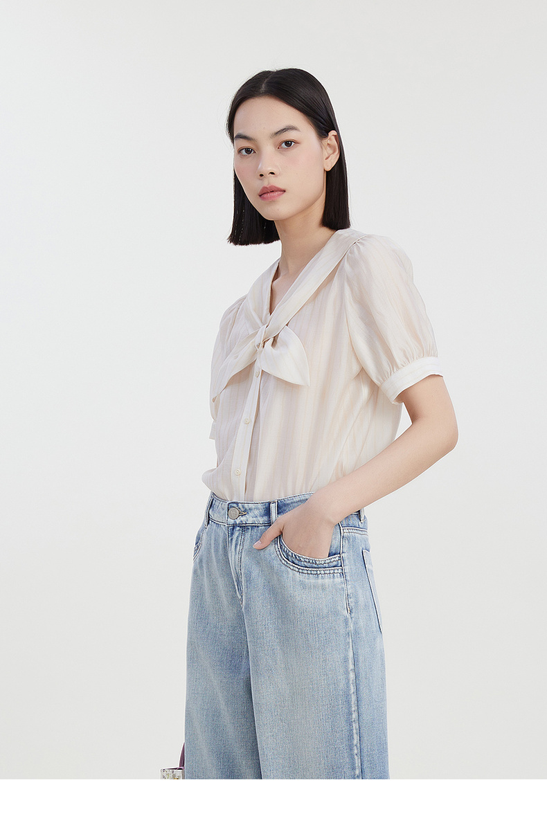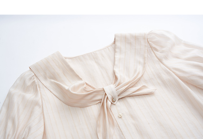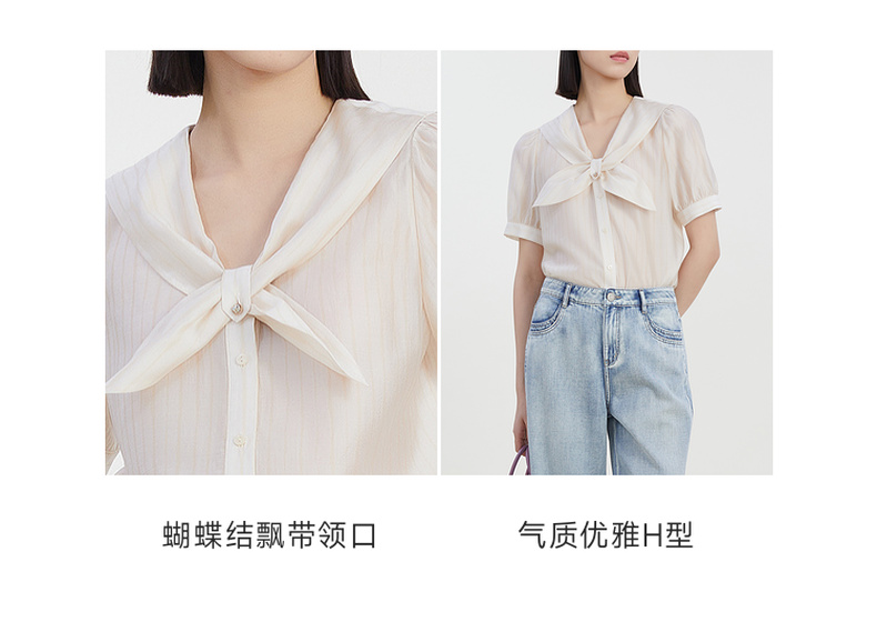 谜底气质系带圆领天丝衬衫短袖女2023夏款通勤修身衬衣232MC0695