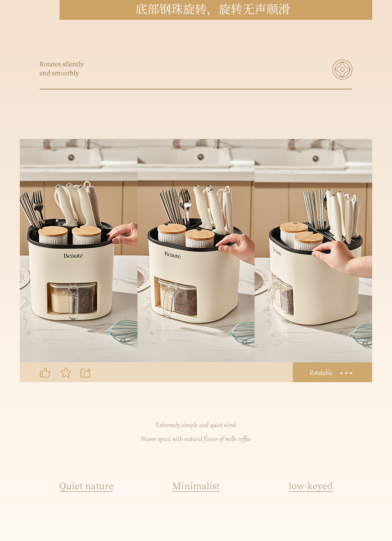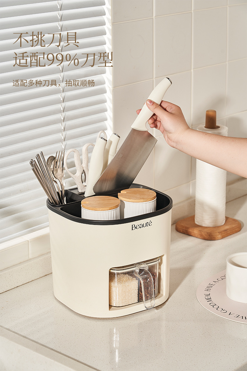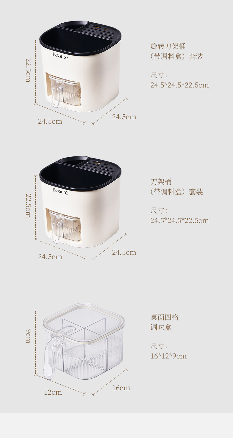 「多功能款!轻松收纳」多功能厨房用品收纳整理好物置物架 筷子筒调料盒调味罐厨房大容量旋转刀架