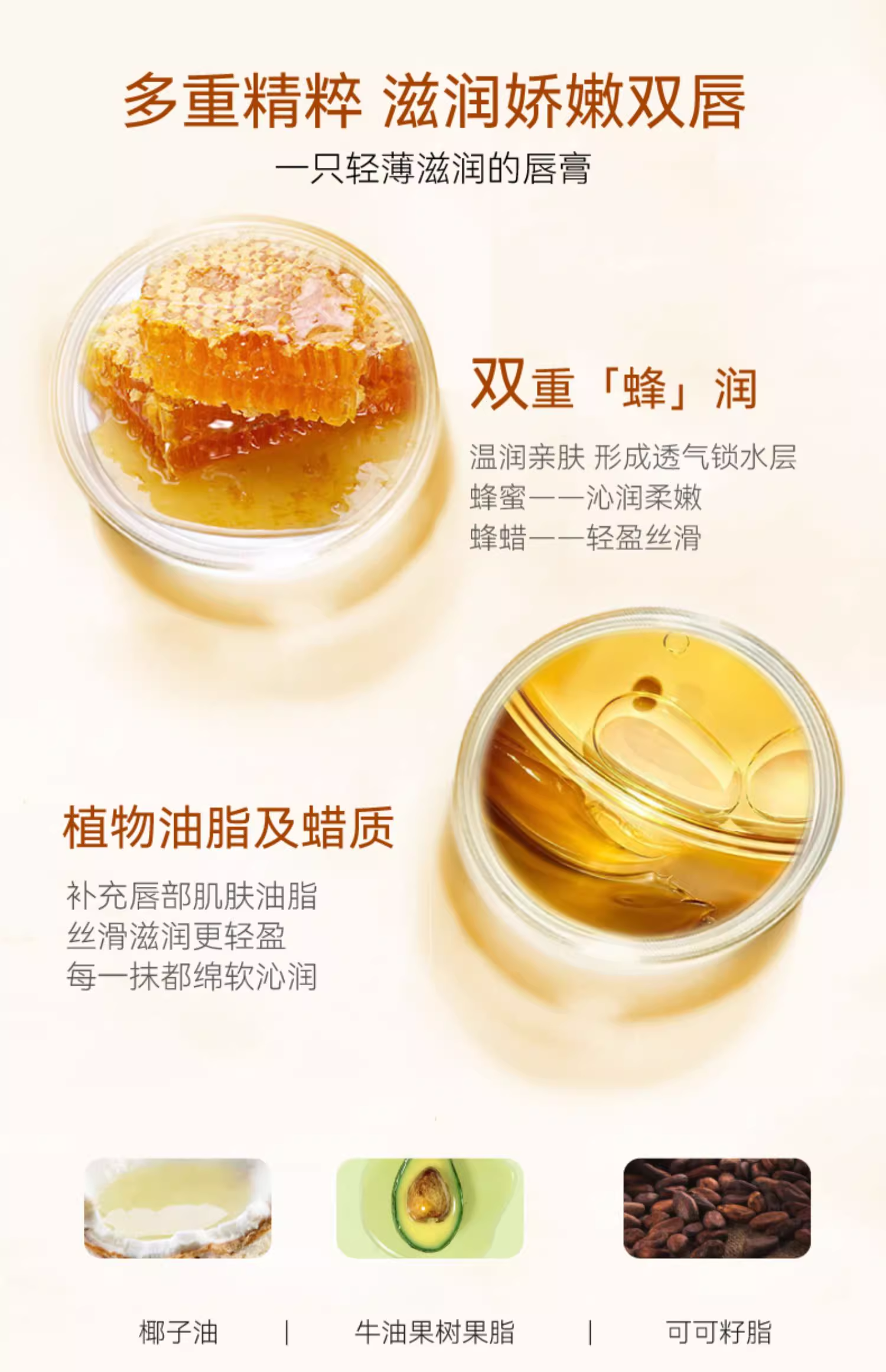 小蜜坊蜂蜜角鲨烷修护润唇膏