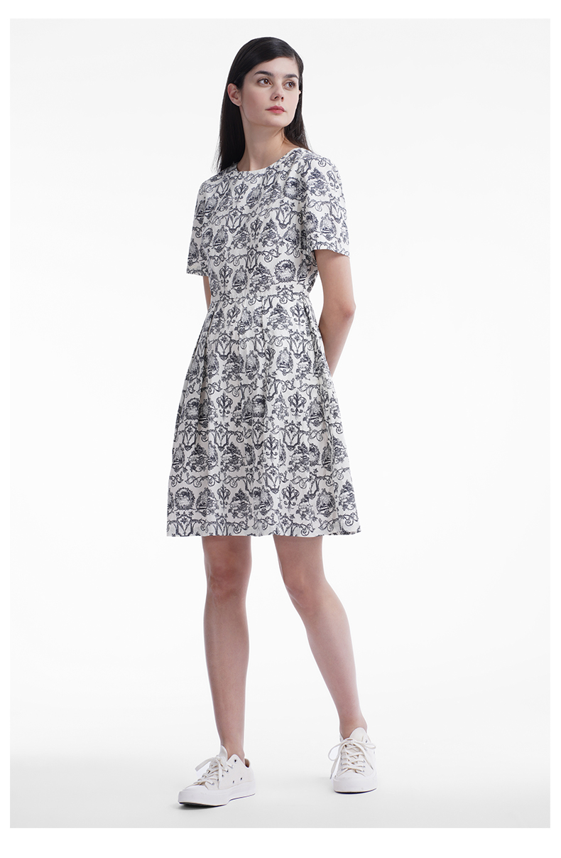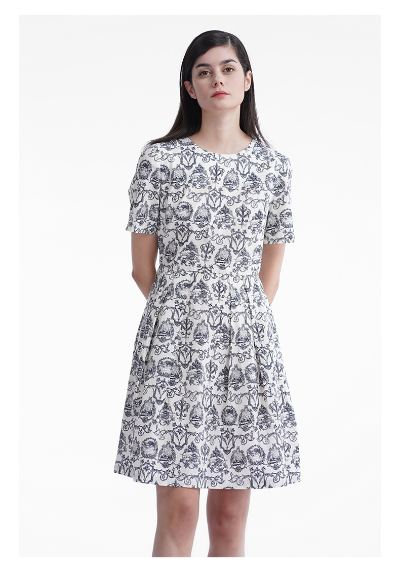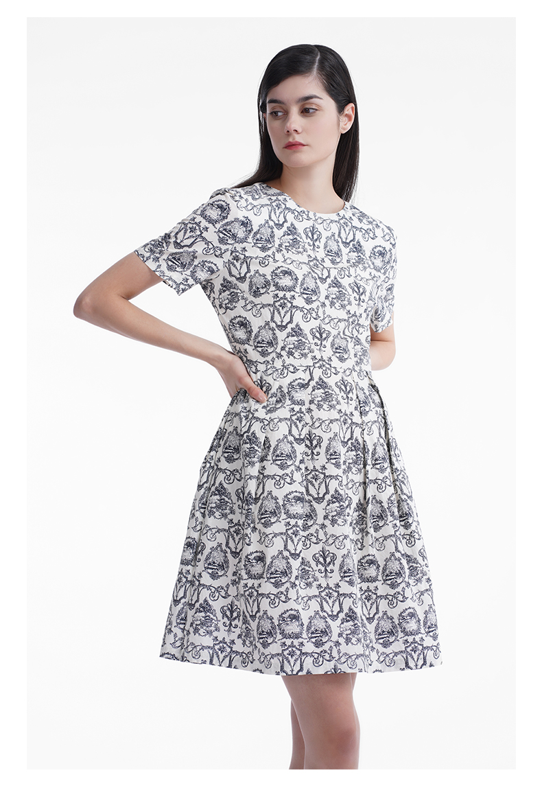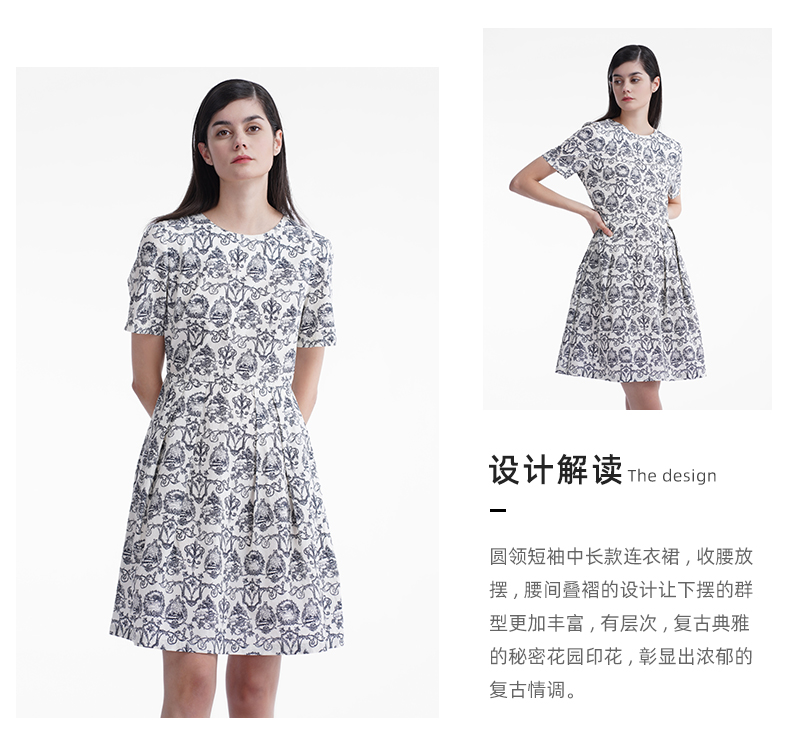 三石一澜女装连衣裙米底印花SG24101066
