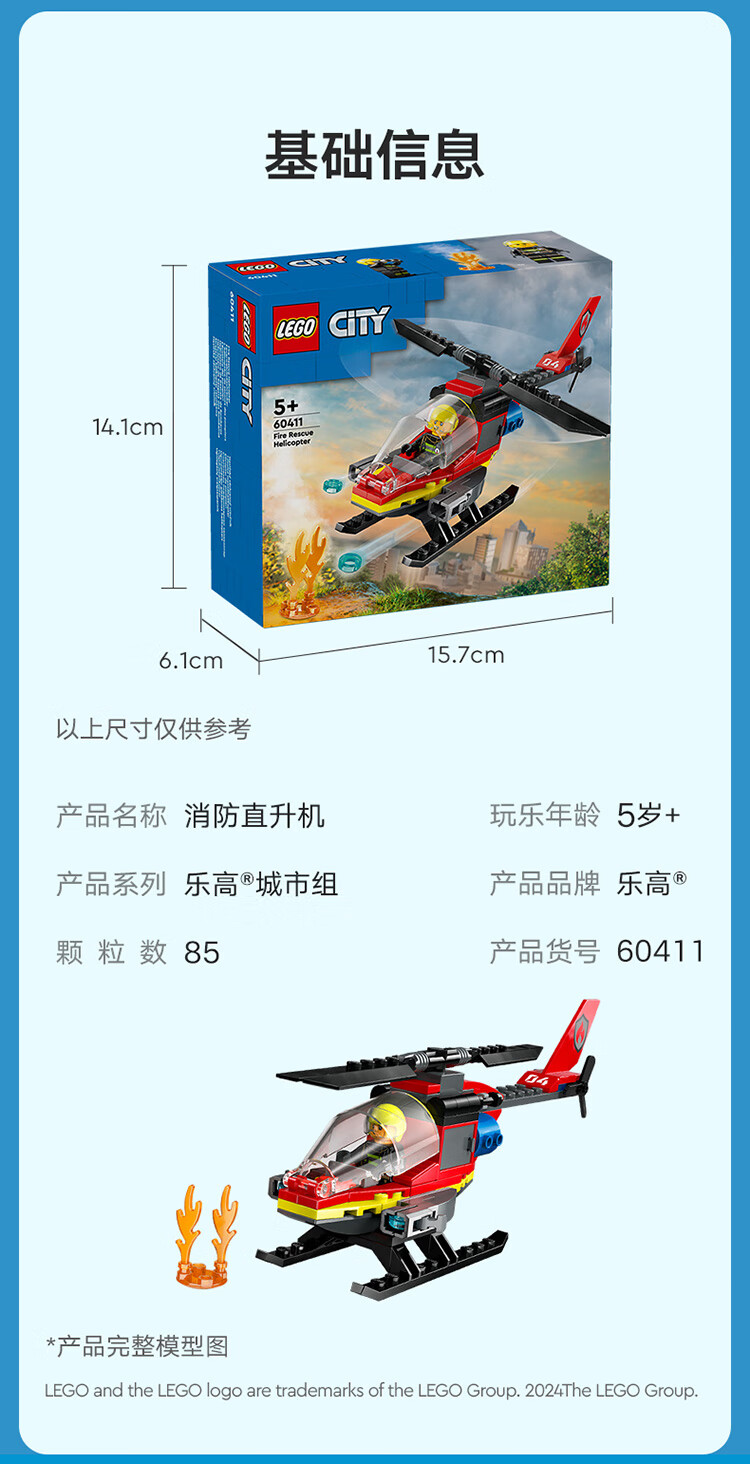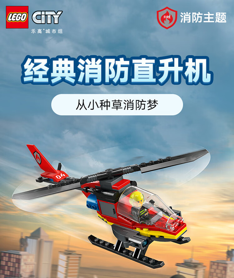 乐高积木L60411乐高城市系列消防直升机