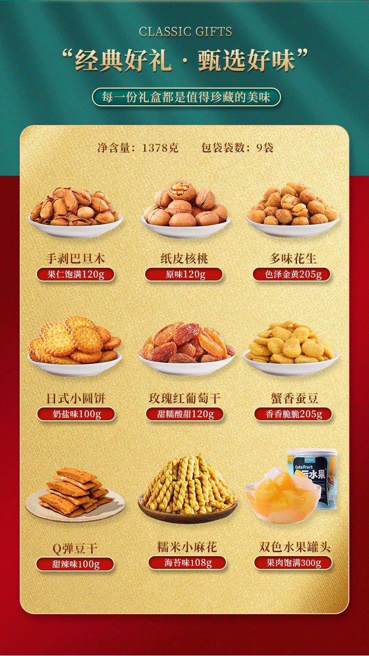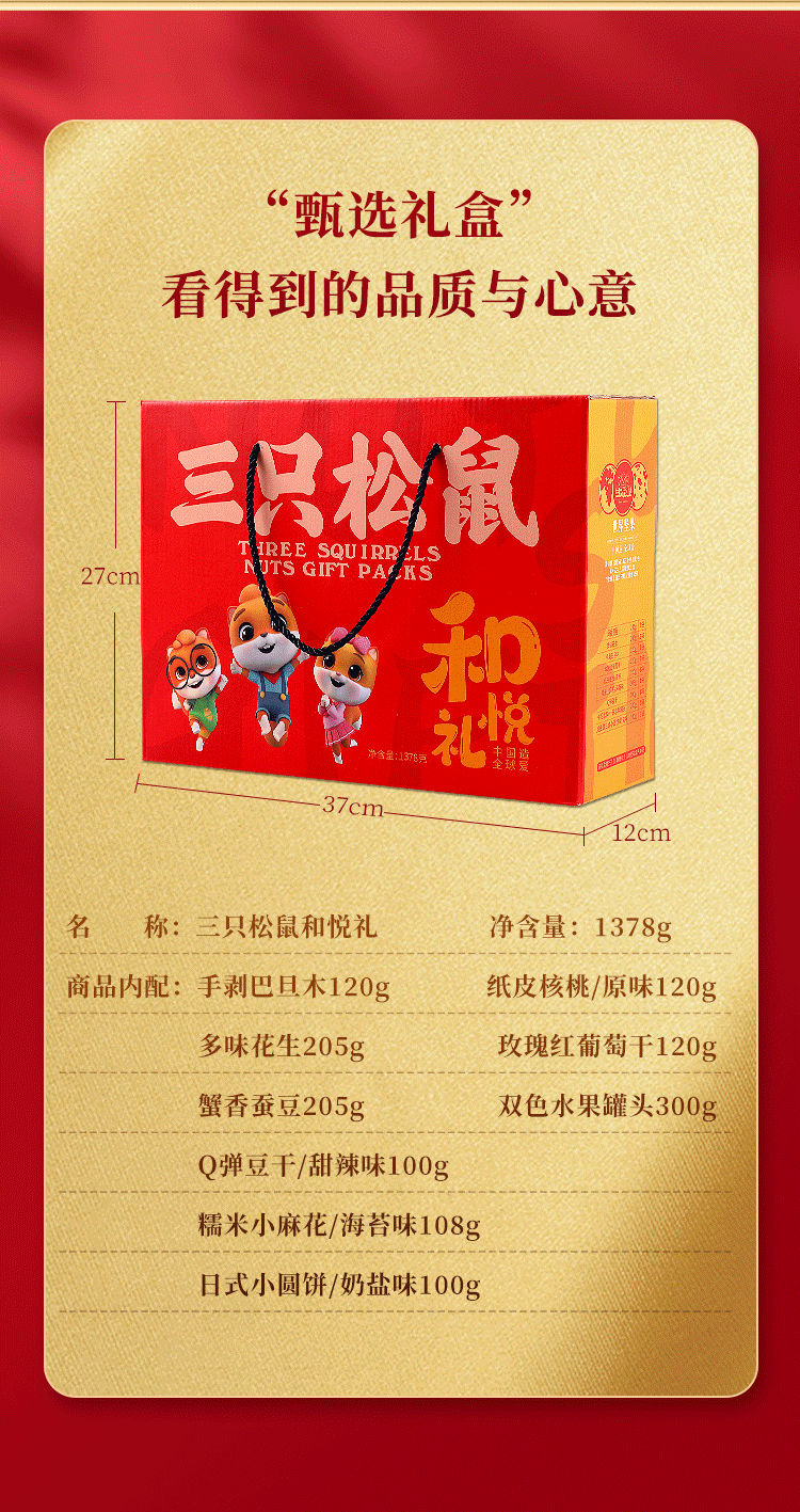 【已下架】积分换购 | 三只松鼠 和悦礼 坚果新年礼盒9袋(1378g)[福利品]