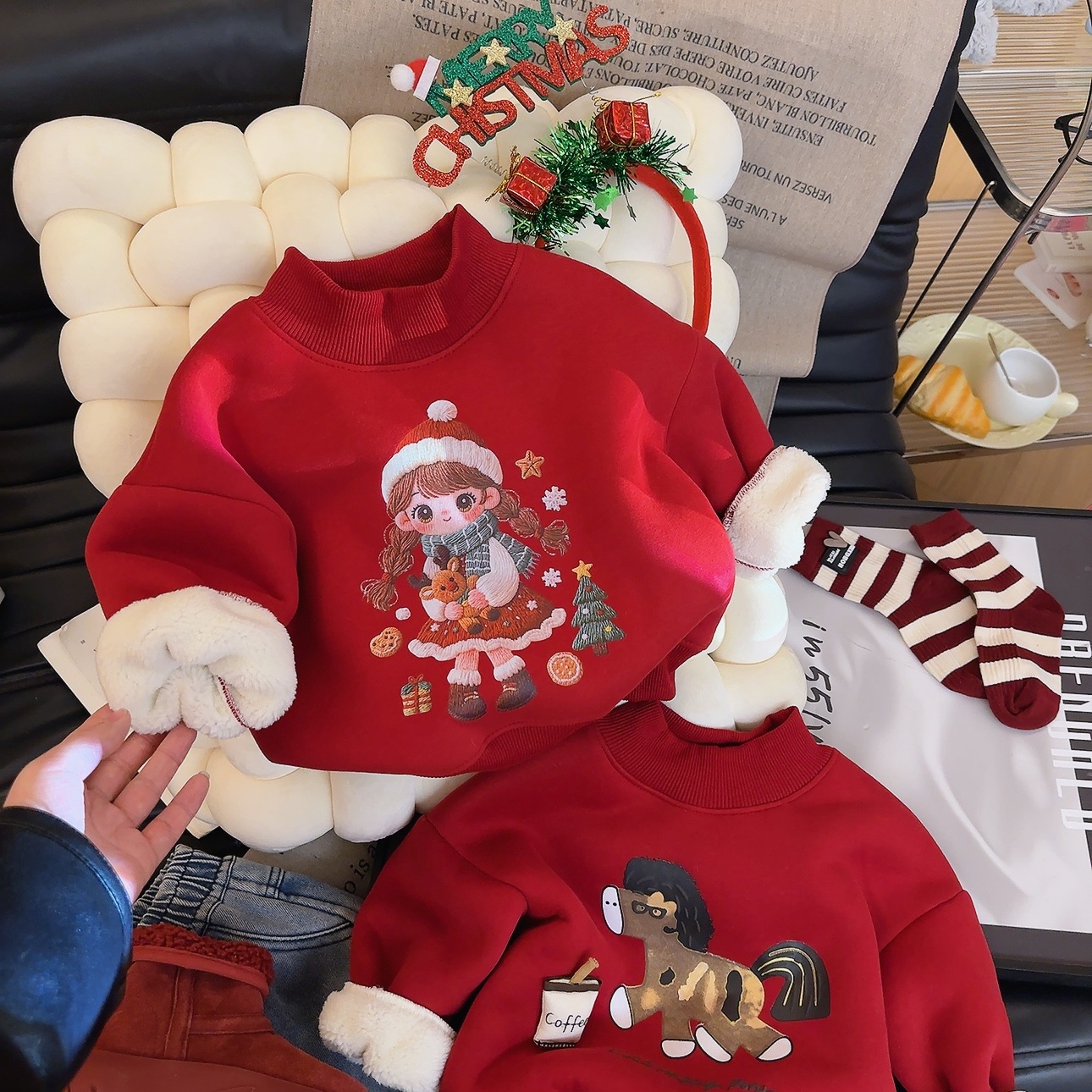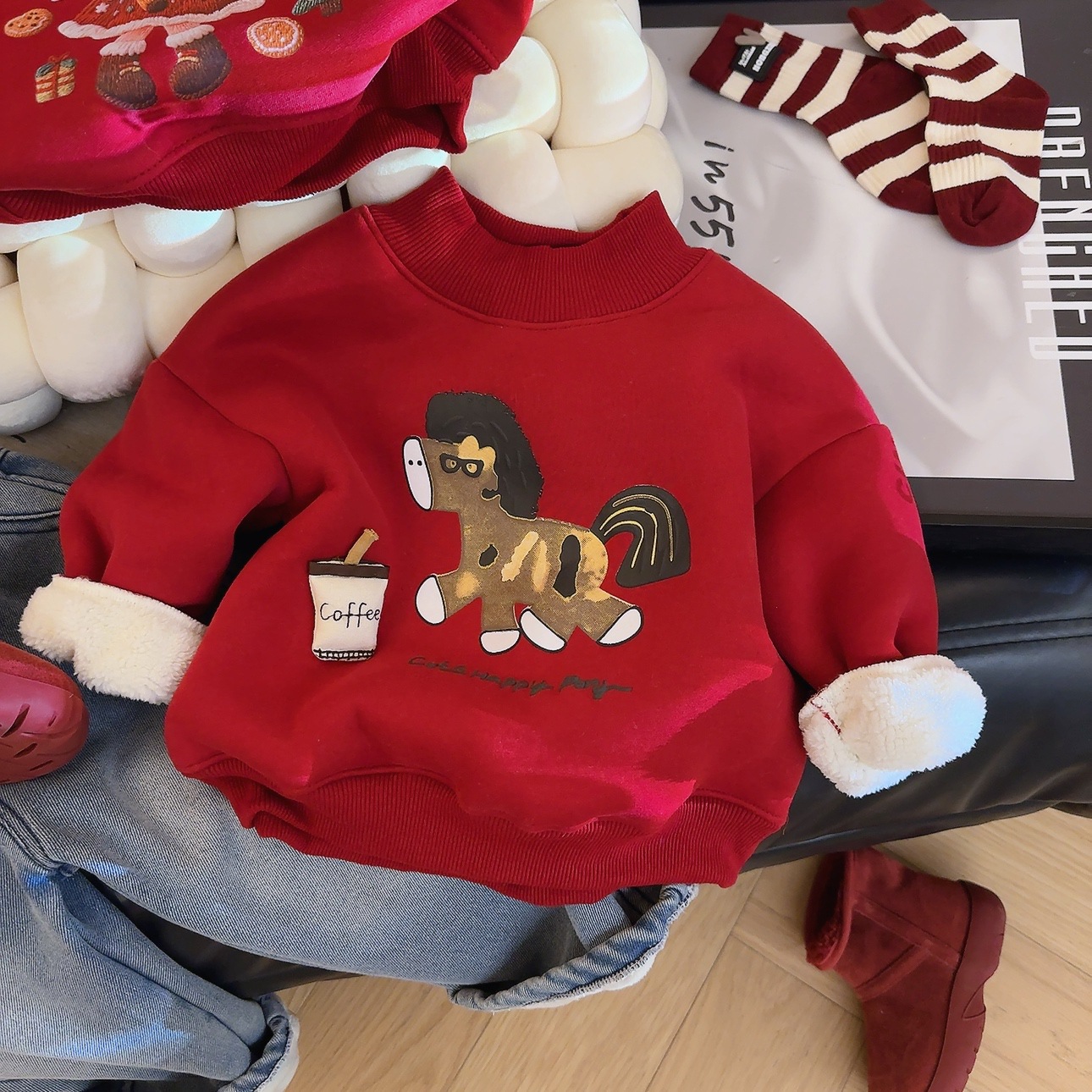 鸿运年服💰49.9/2 件羊羔绒加厚‼️【暖暖绒一体羊羔绒鸿运年服卫衣】手感超级舒服的,轻盈保暖不臃肿!男女宝都安排上 暖暖绒羊羔绒加厚亲肤面料,质感好!撞色设计,耐看的配色搭配精致刺绣小图案,上身一整个活力满满,上学穿超合适