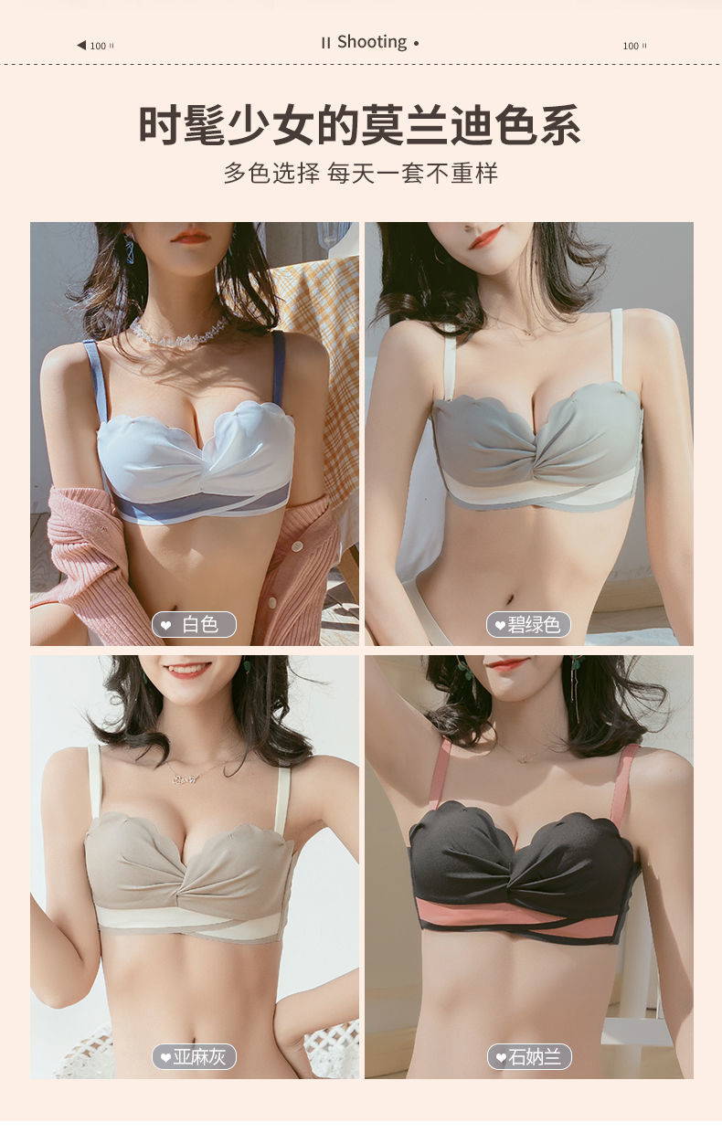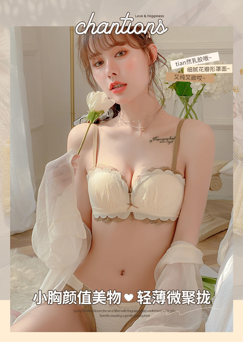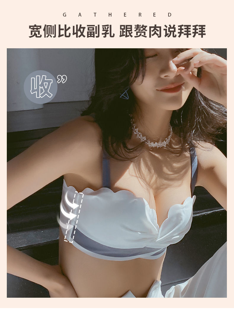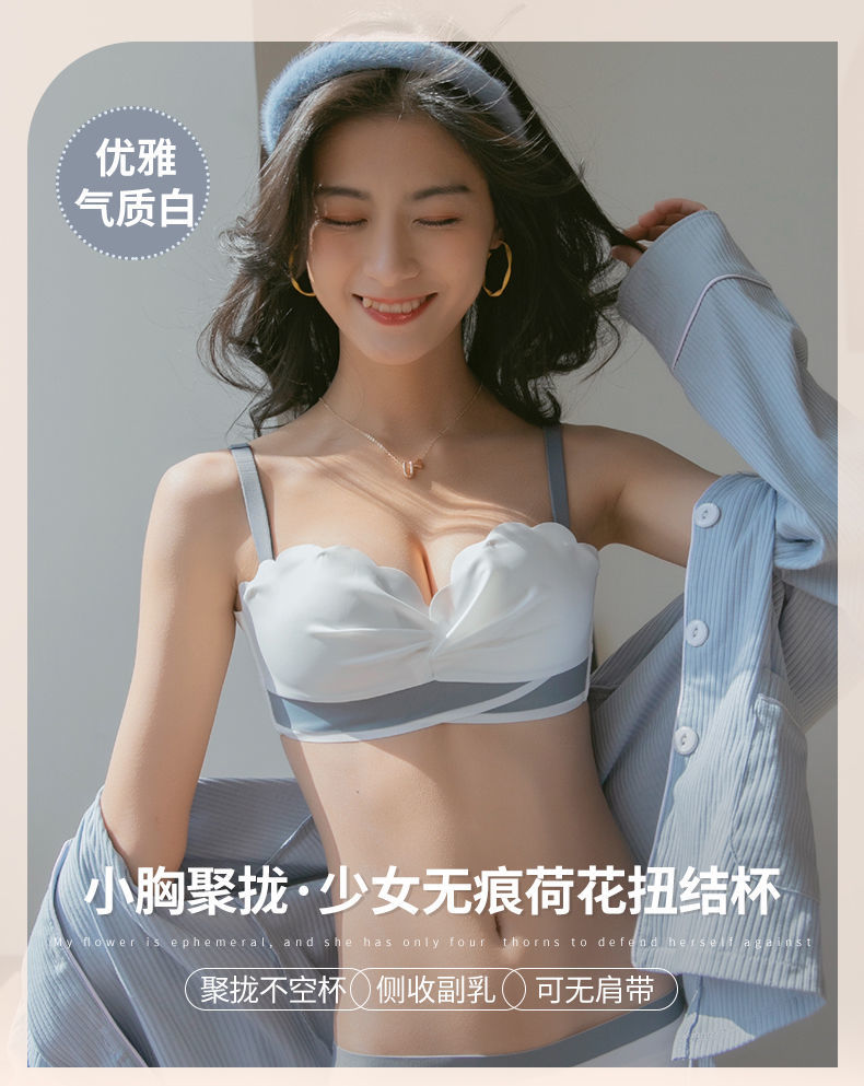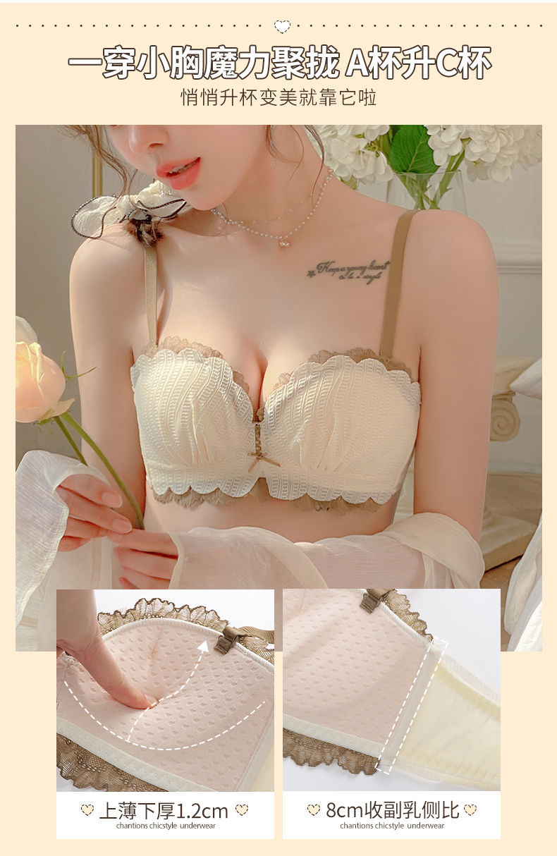 黛唯梵【两件优惠装】糯糯百合小胸聚拢加厚内衣女 新款无钢圈文胸性感调整型防下垂胸罩无痕无肩带收副乳七夕节 七夕情人节