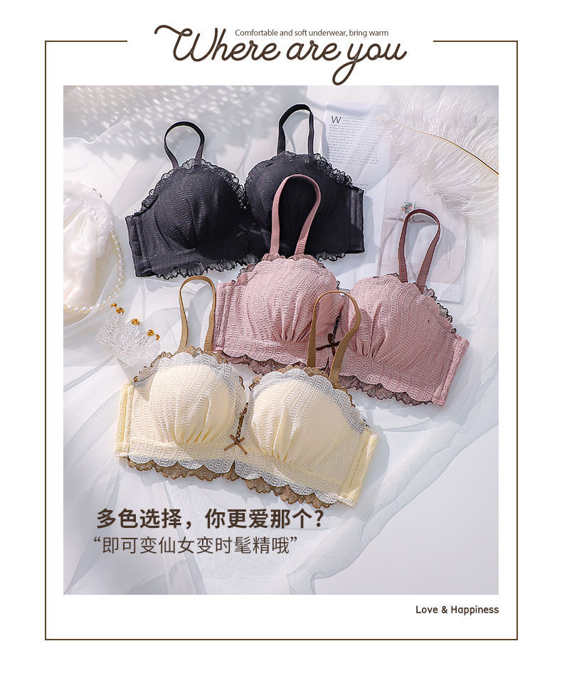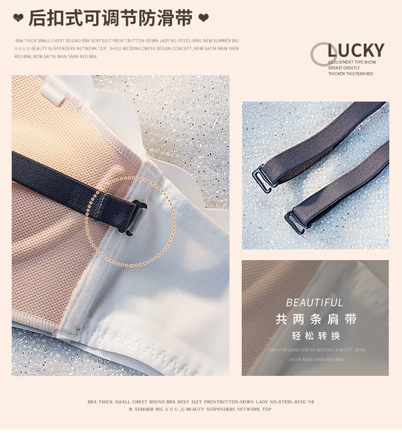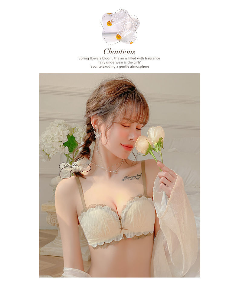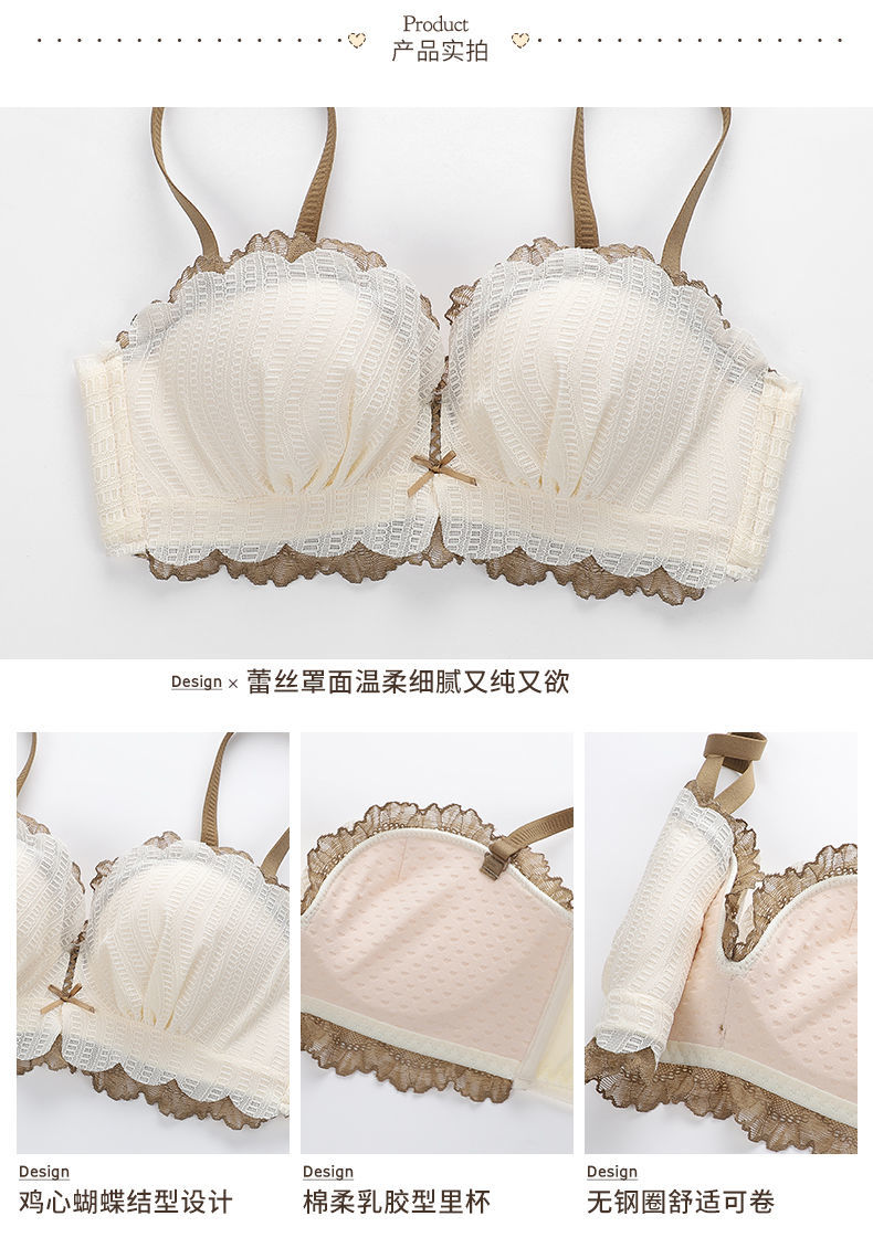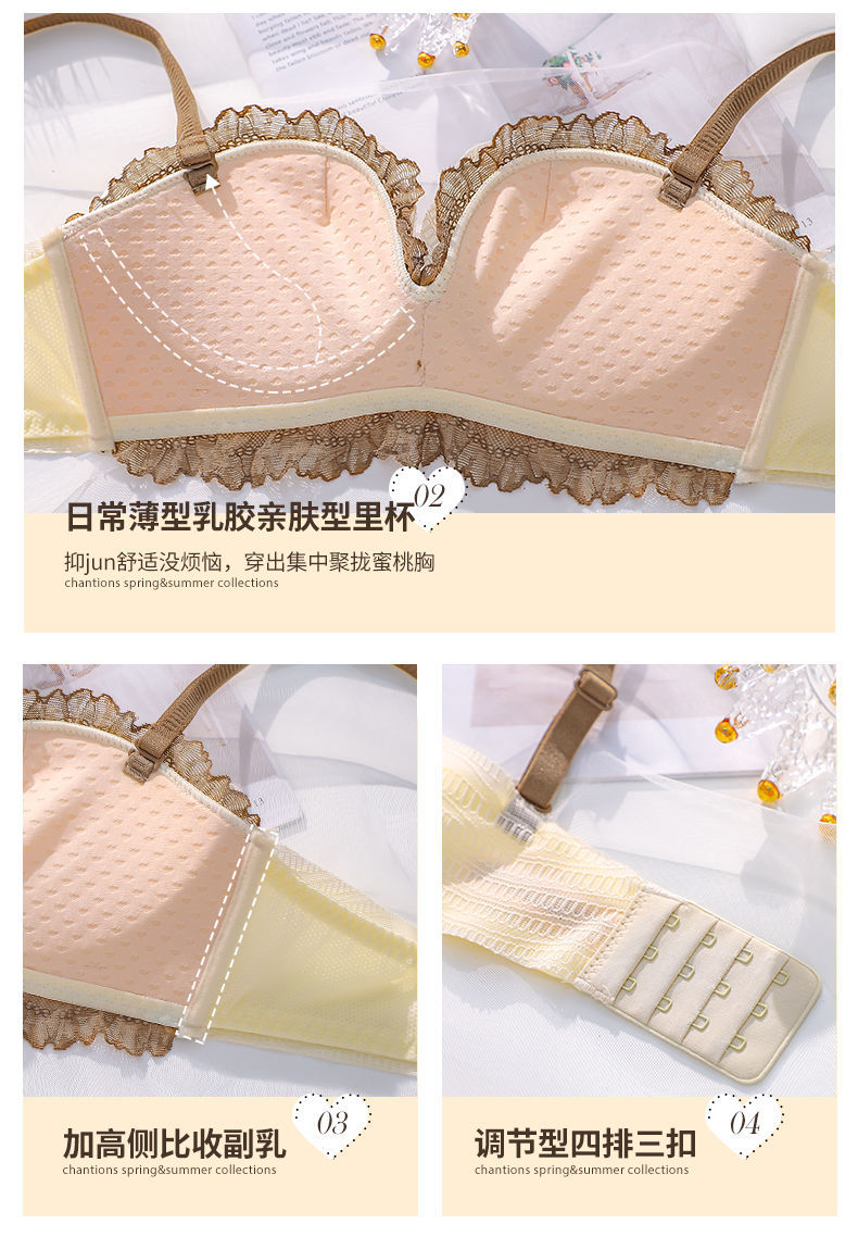 黛唯梵【两件优惠装】糯糯百合小胸聚拢加厚内衣女 新款无钢圈文胸性感调整型防下垂胸罩无痕无肩带收副乳七夕节 七夕情人节