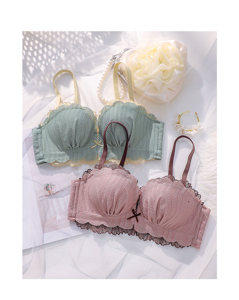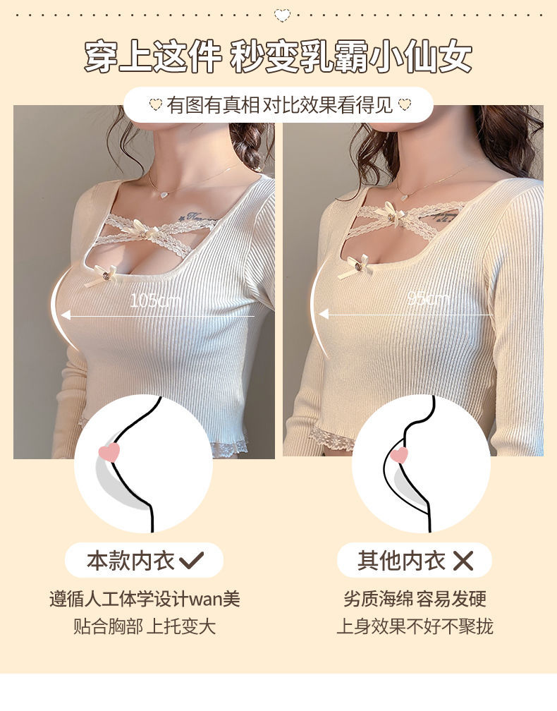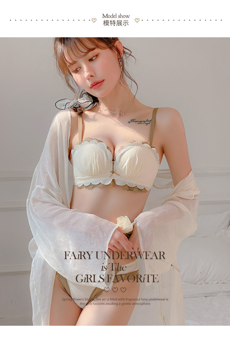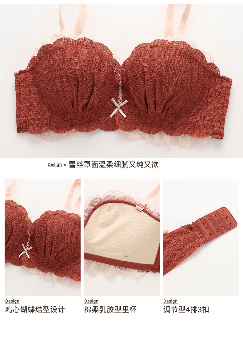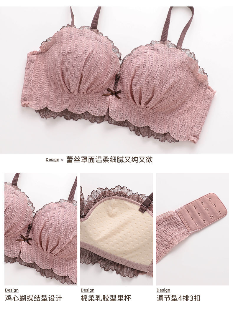 黛唯梵【两件优惠装】糯糯百合小胸聚拢加厚内衣女 新款无钢圈文胸性感调整型防下垂胸罩无痕无肩带收副乳七夕节 七夕情人节