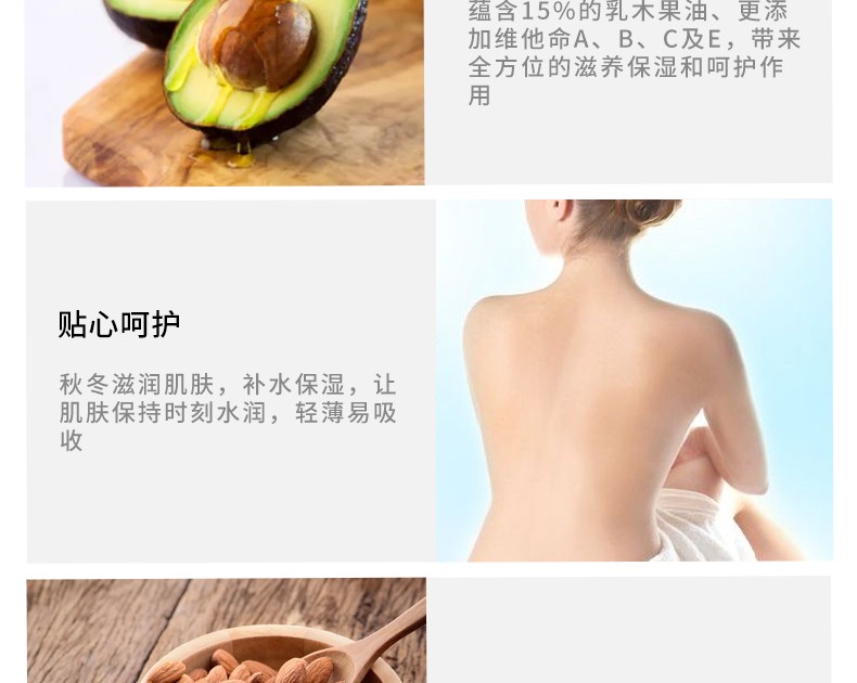 乳感质地肌肤迅速吸收,用后令肌肤整天都柔软亮泽,更添加多种维生素成分,带来多方位的滋养保湿和密集呵护作用~
