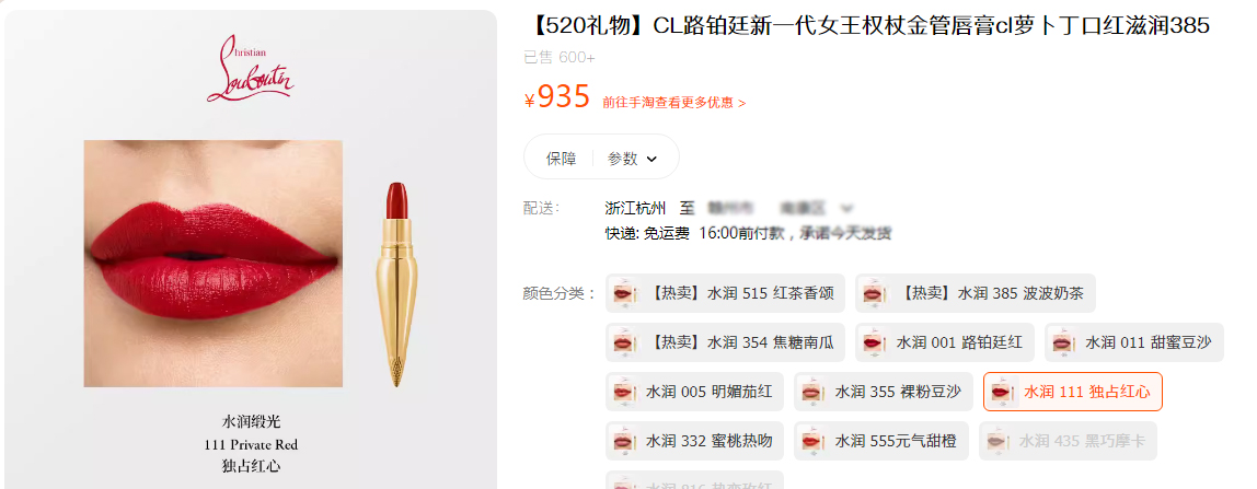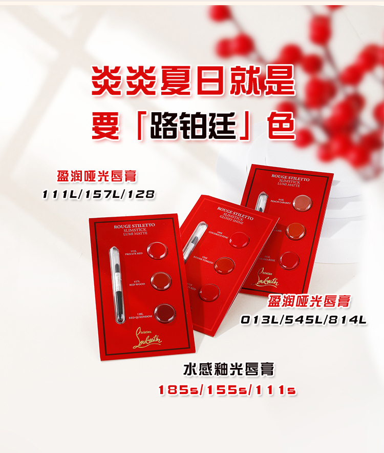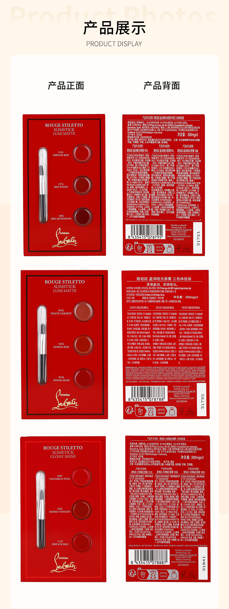 【品名】路铂廷萝卜丁女王权杖试色卡口红0.9g三色体验装唇膏