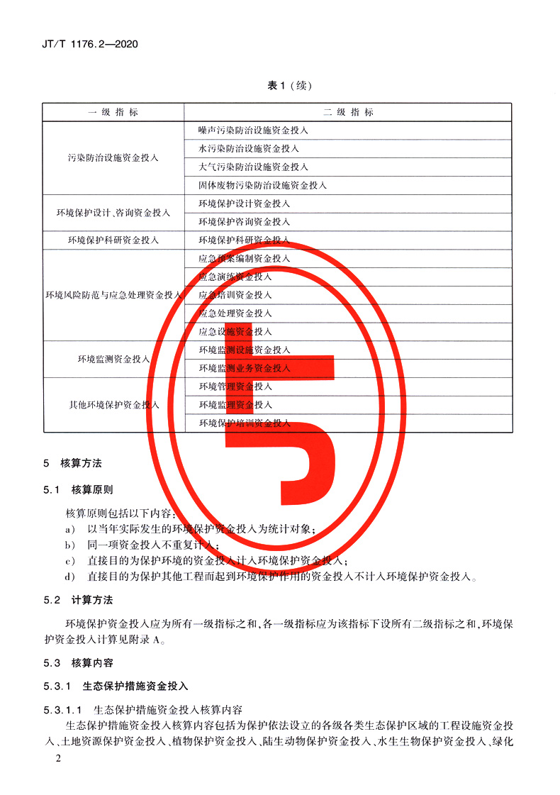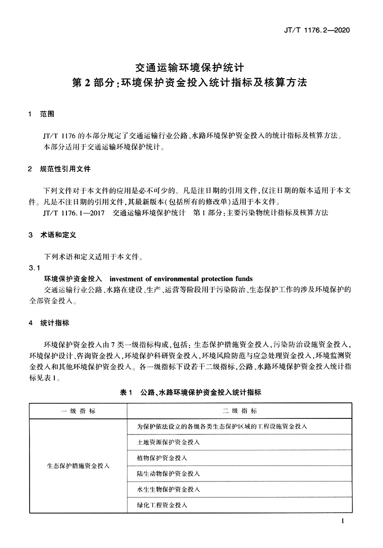 | 交通运输环境保护统计 第2部分:环境保护资金投入统计指标及核算方法(JT/T 1176.2—2020) | ||