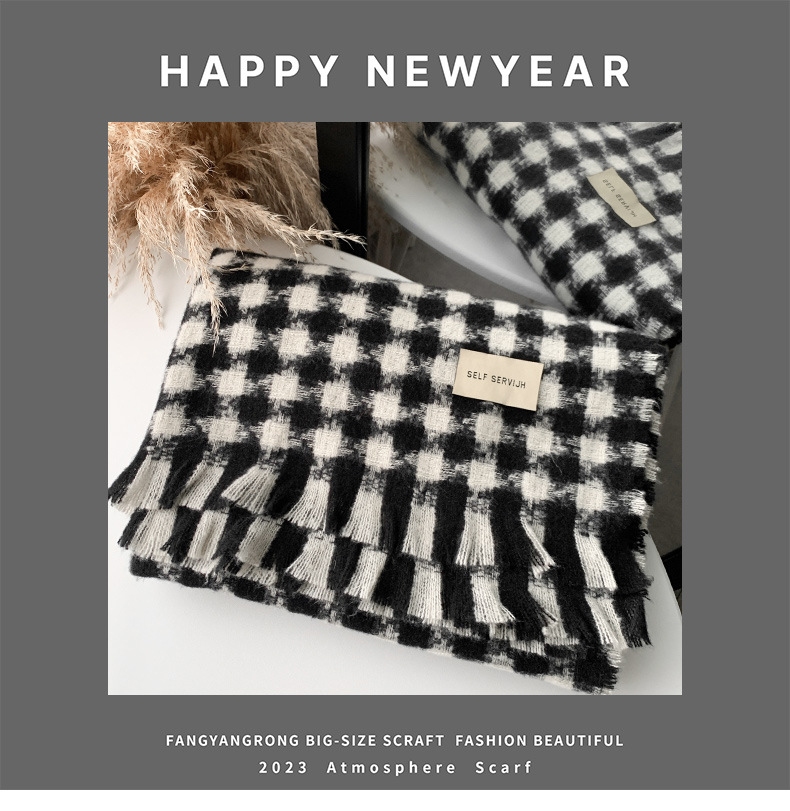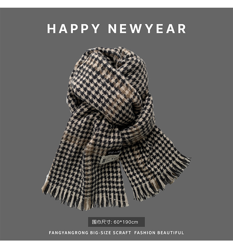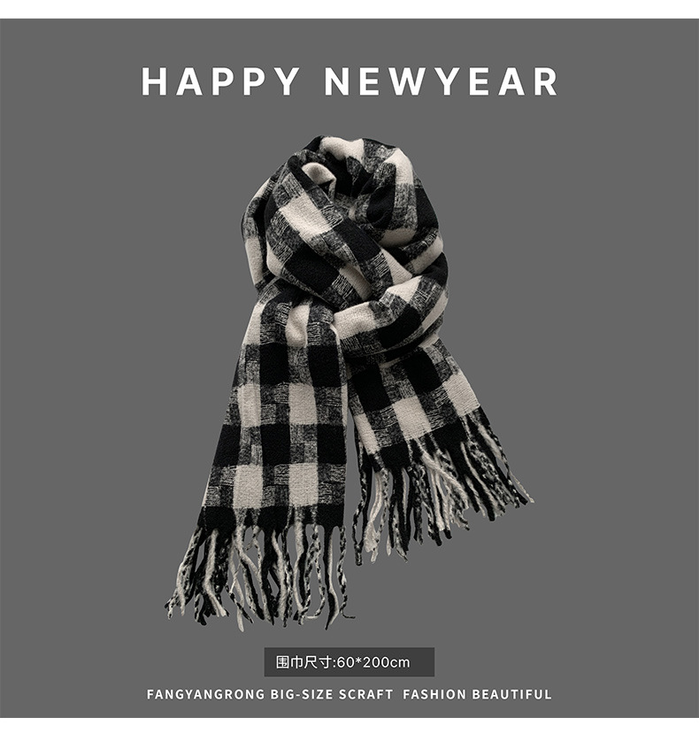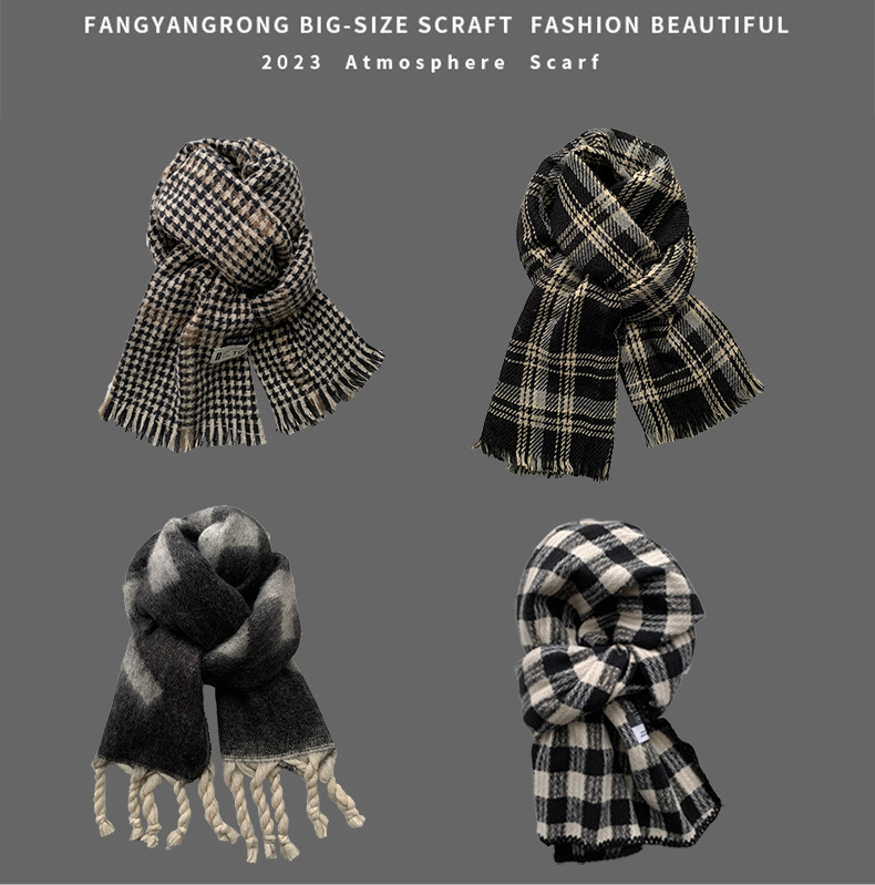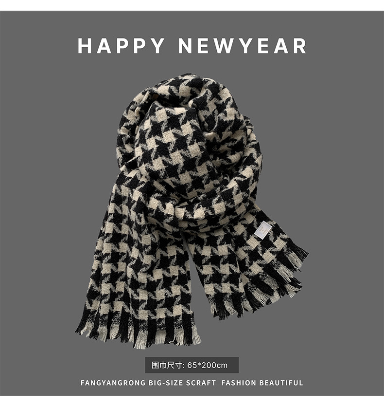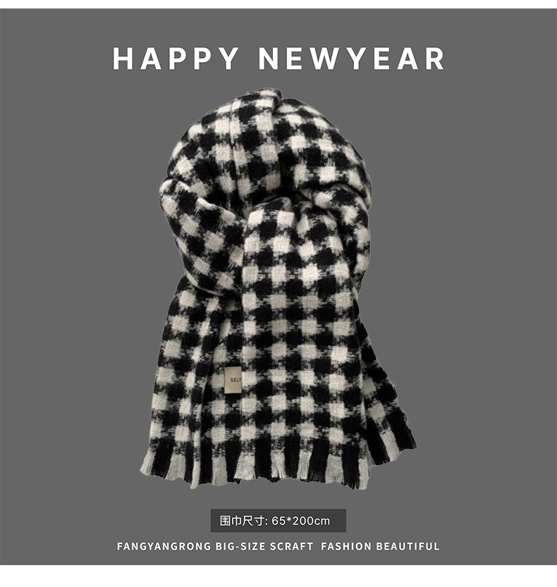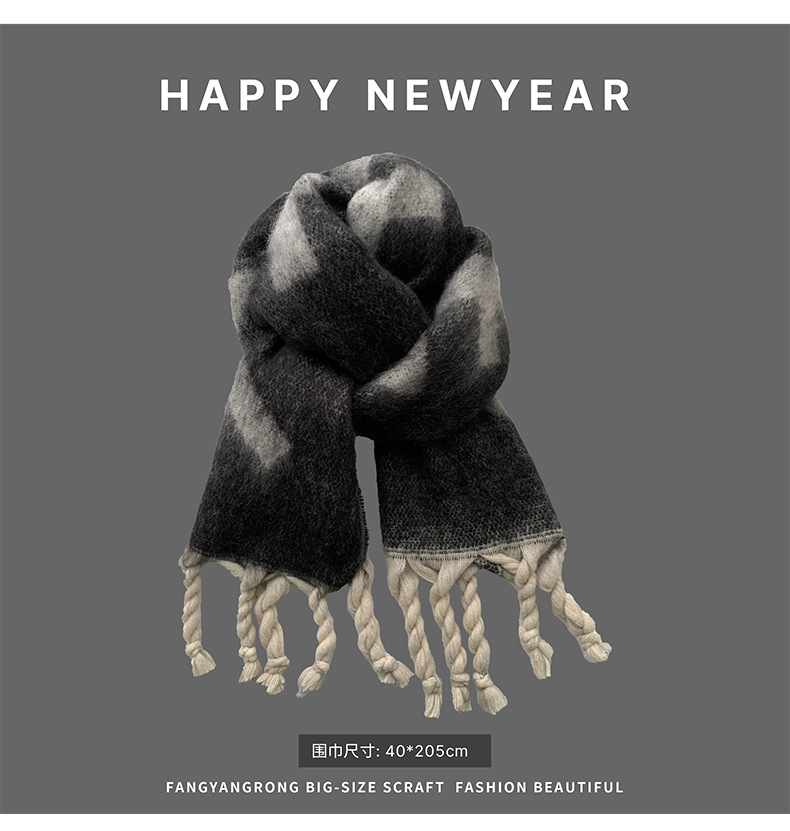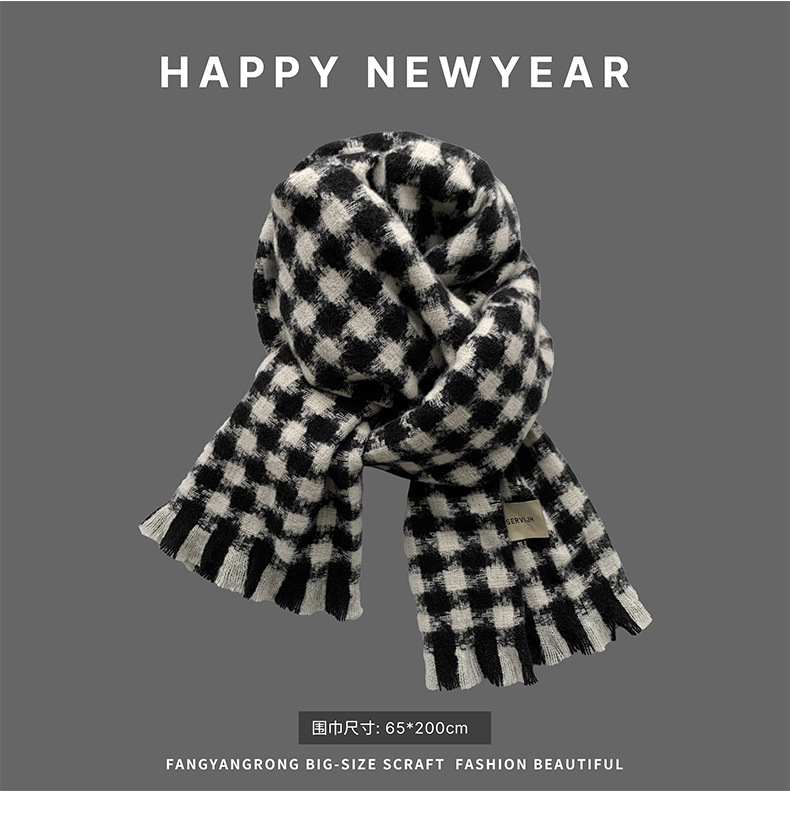 【这个冬天有它就够❗️百搭加厚黑色围巾】针织毛线材质,柔软舒适,精心挑选各种款式和图案,总有一款适合你,新款针织学生百搭加厚围脖保L