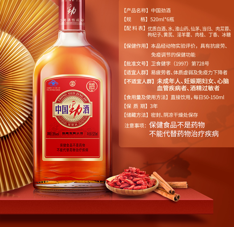 劲牌中国劲酒(保健酒)35度整箱520ml*12瓶
