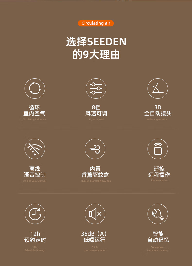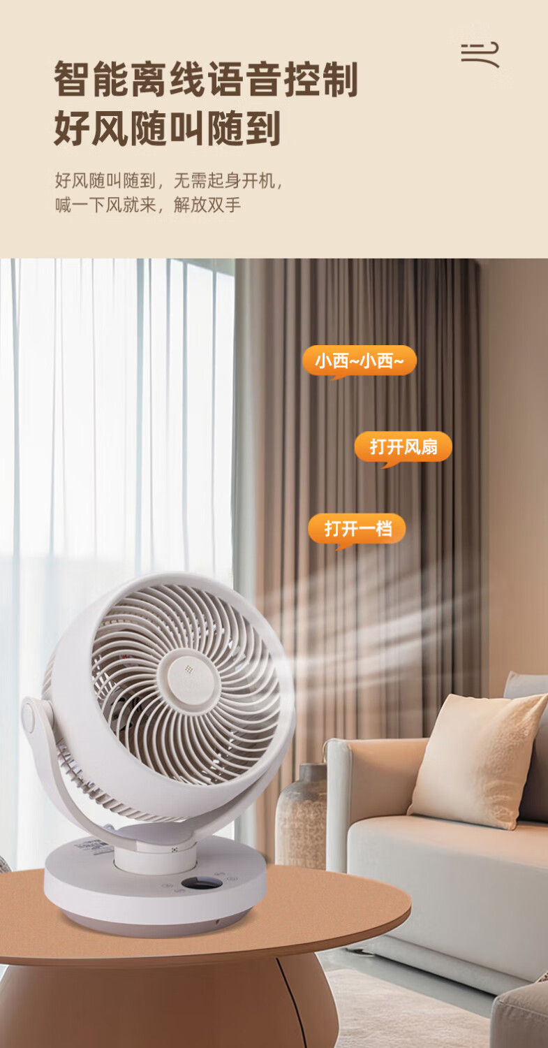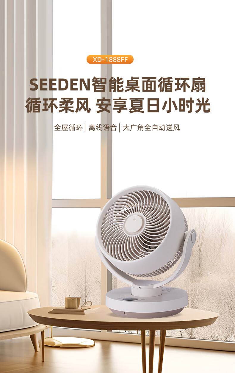 SEEDEN西点 空气循环扇家用办公室台式电风扇桌面轻音小风扇台扇蓝牙控制离线语音控制带香薰盒 XD-1888FF