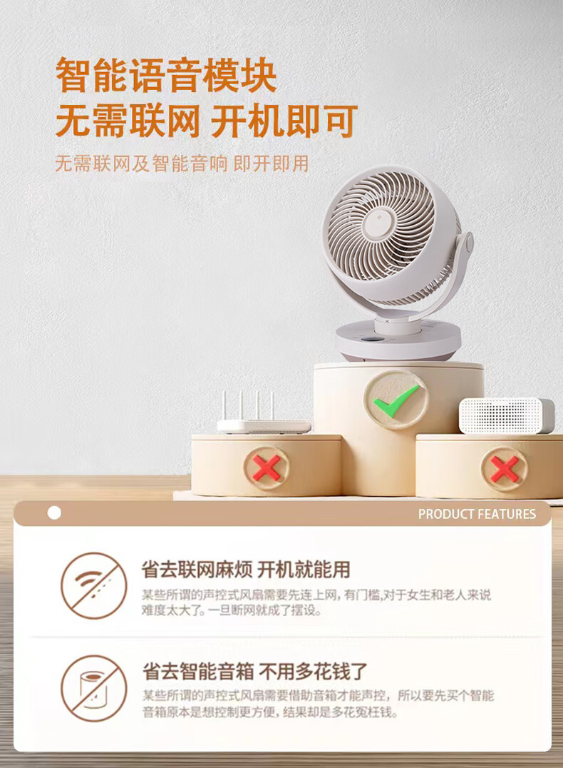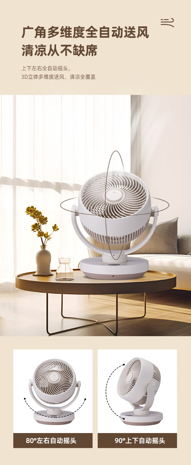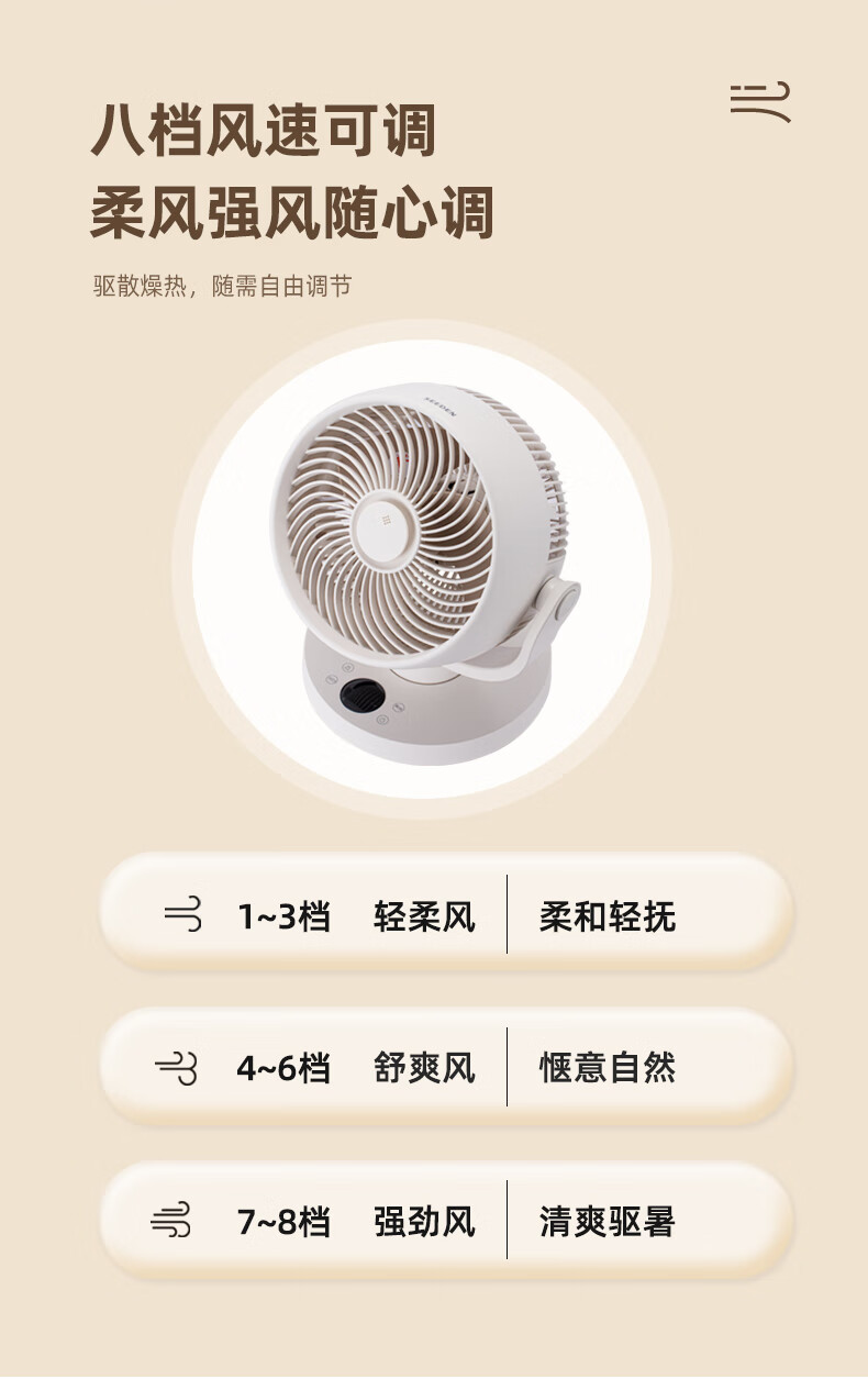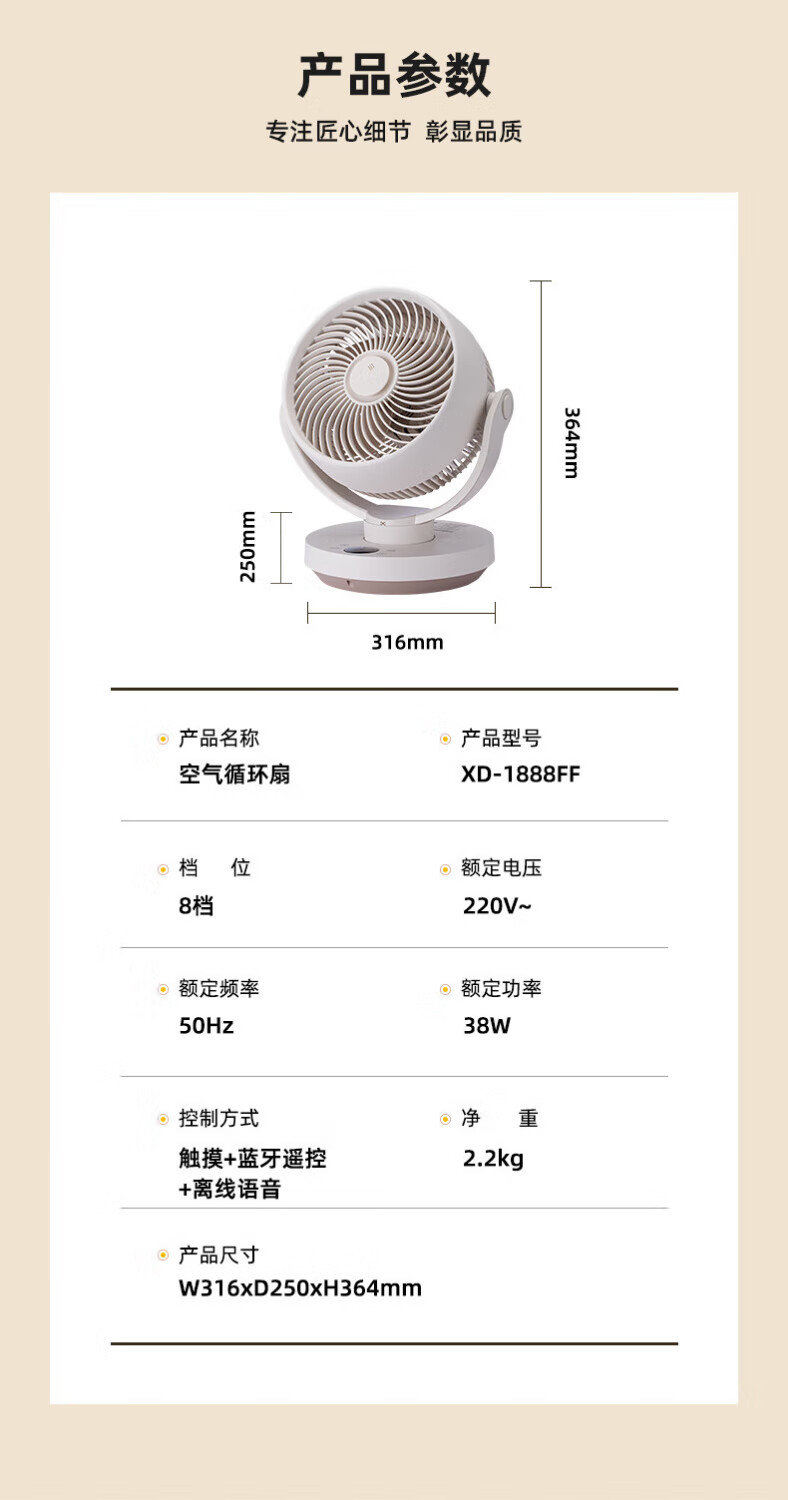 SEEDEN西点 空气循环扇家用办公室台式电风扇桌面轻音小风扇台扇蓝牙控制离线语音控制带香薰盒 XD-1888FF