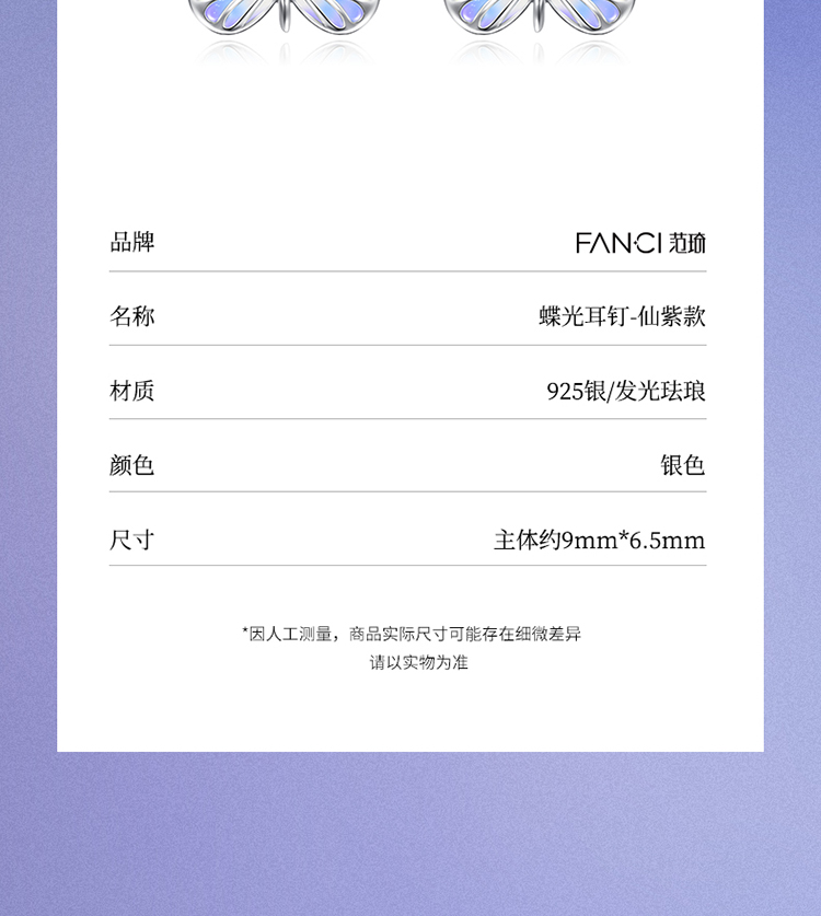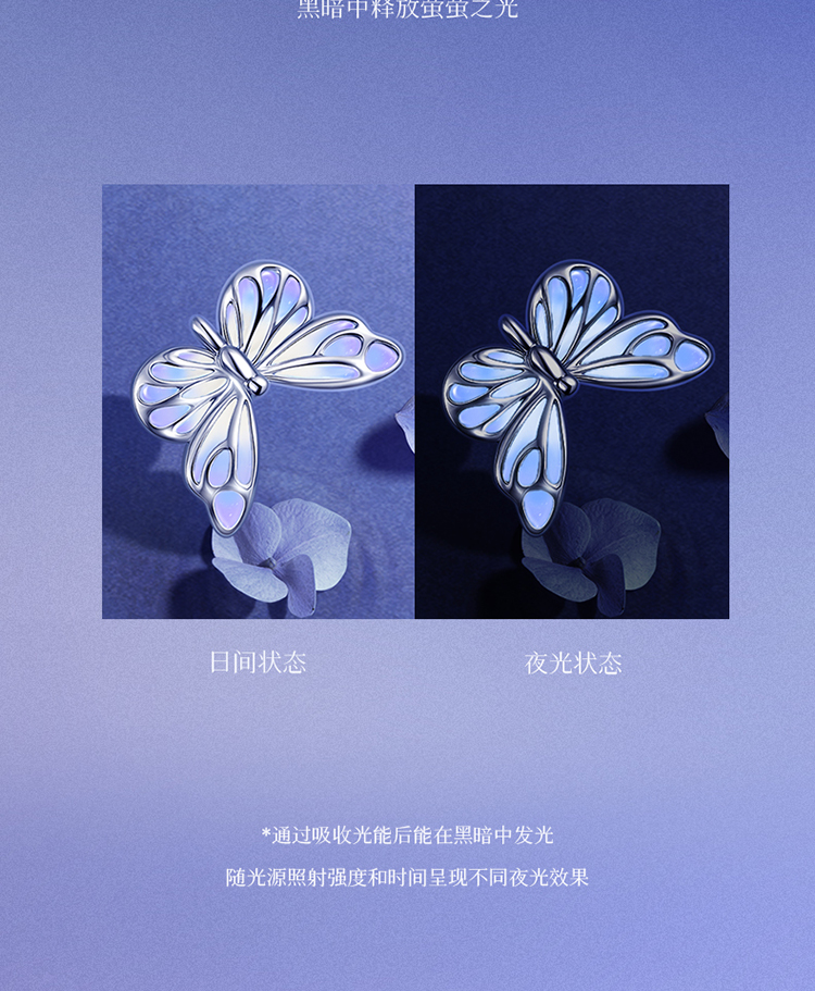 Fanci范琦蝶光耳钉女银耳饰新款夜光蝴蝶礼物送闺蜜女生