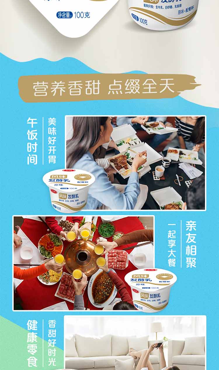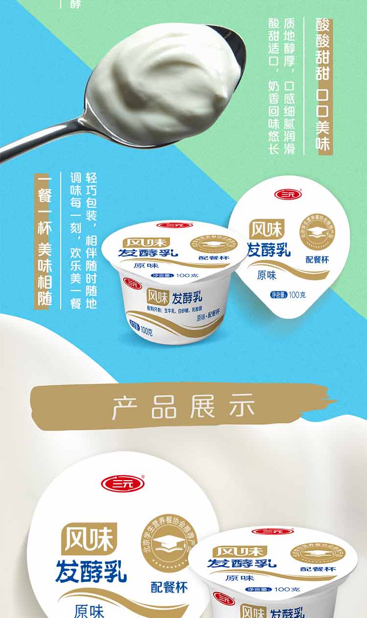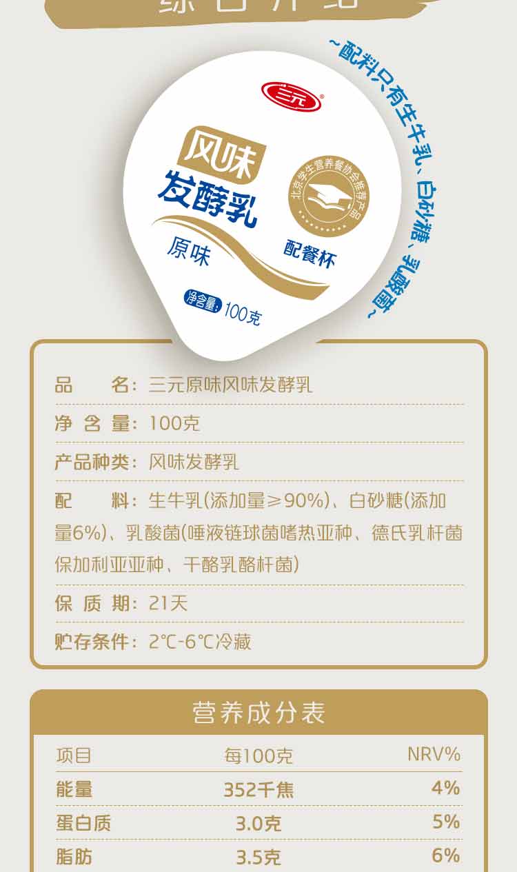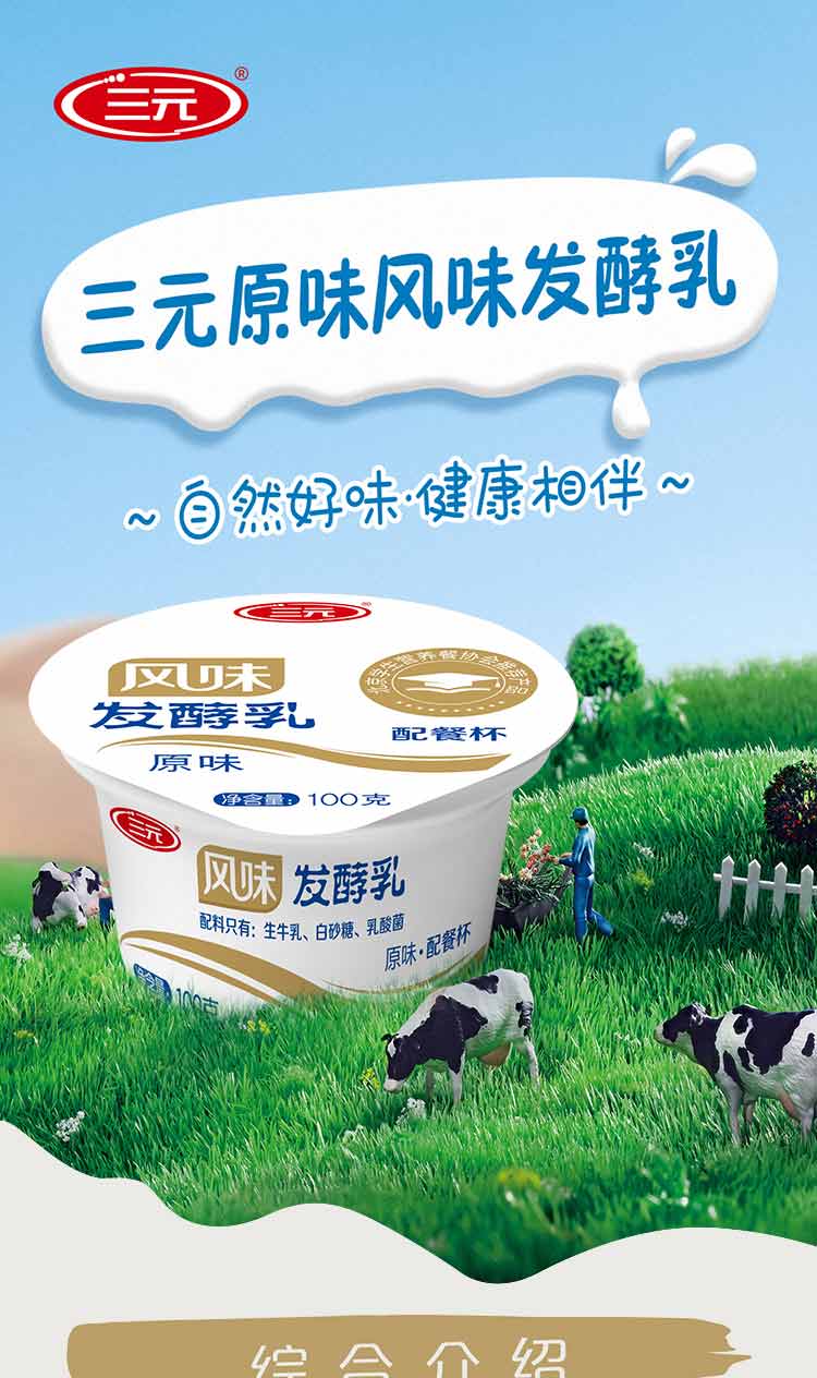 【自提-低温】三元原味杯装风味发酵乳100g*9
