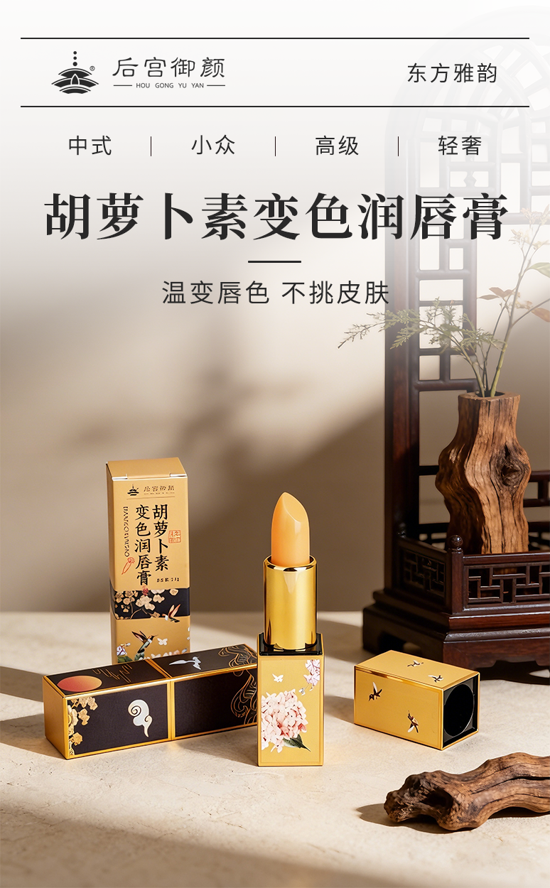 后宫御颜·胡萝卜素变色润唇膏 1支=口红+润唇膏+唇膜 持久保湿滋润、防干裂、淡化唇纹、防水不易脱色