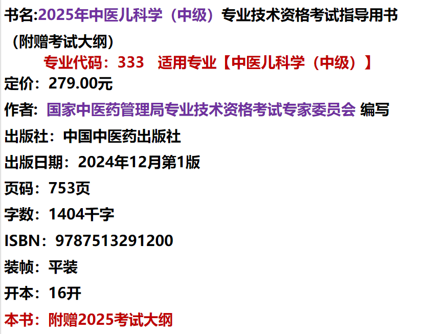 2025年中医儿科学(中级)专业技术资格考试指导用书 专业代码333国家中医药管理局专业技术资格考试专家委员会 中国中医药出版社