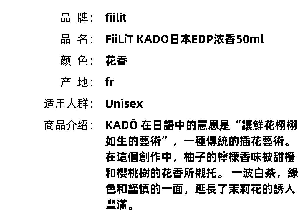 【保税仓】FiiLiT KADO日本EDP浓香50ml可补充