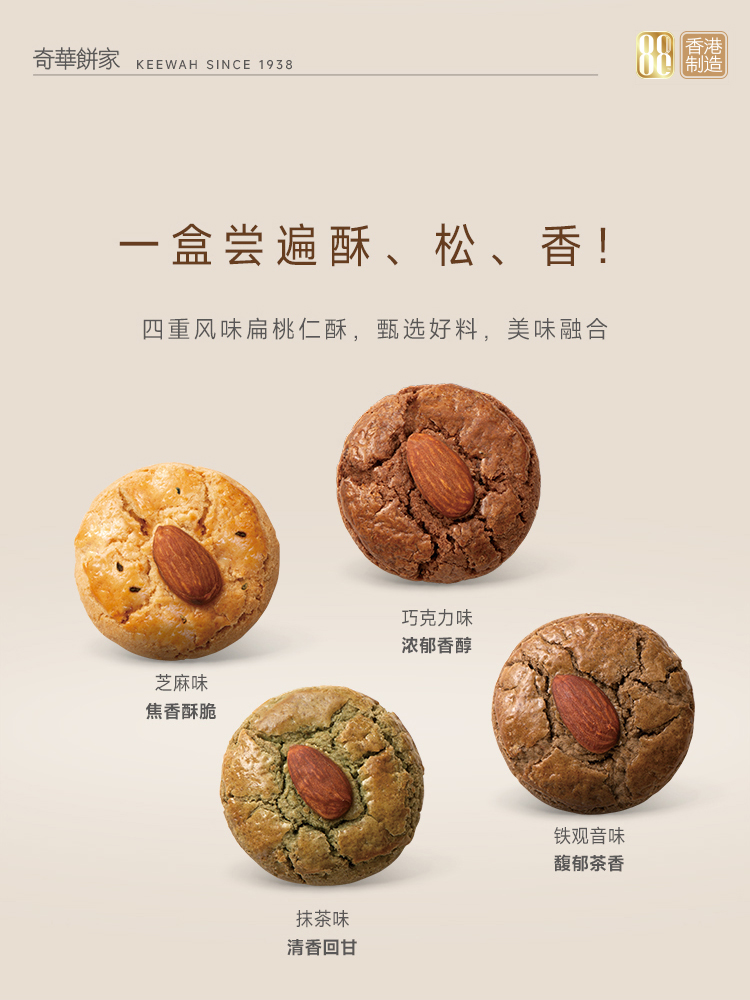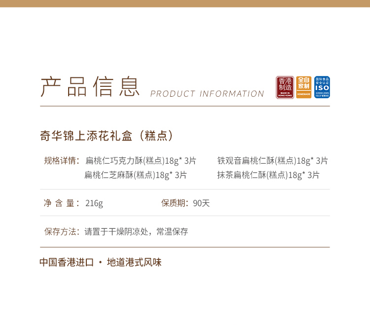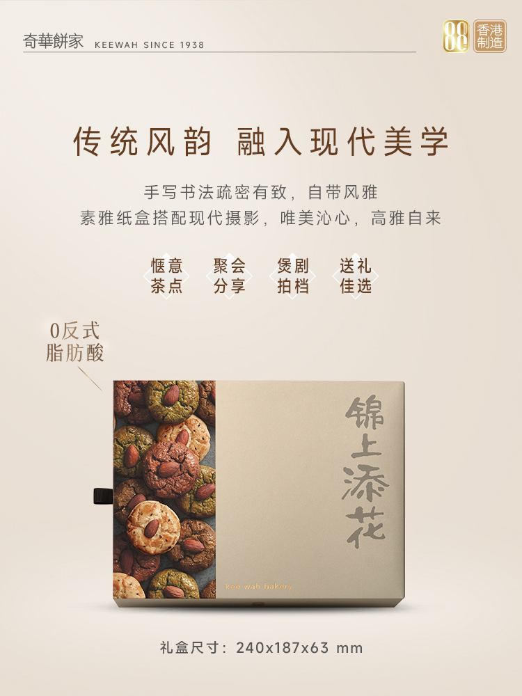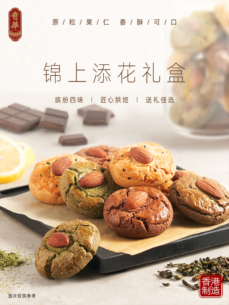 【锦上添花礼盒】奇华饼家扁桃仁铁观音味酥饼传统糕点礼盒香港进口休闲零食品