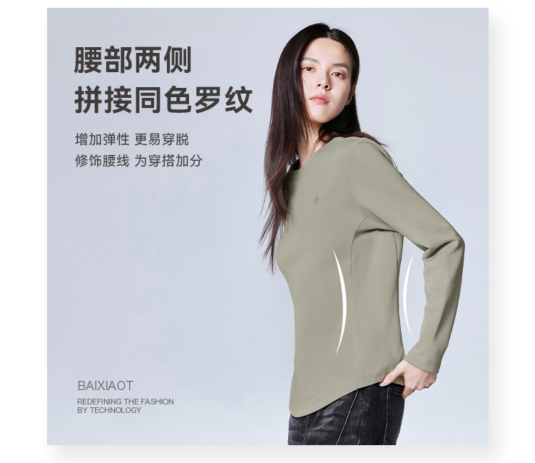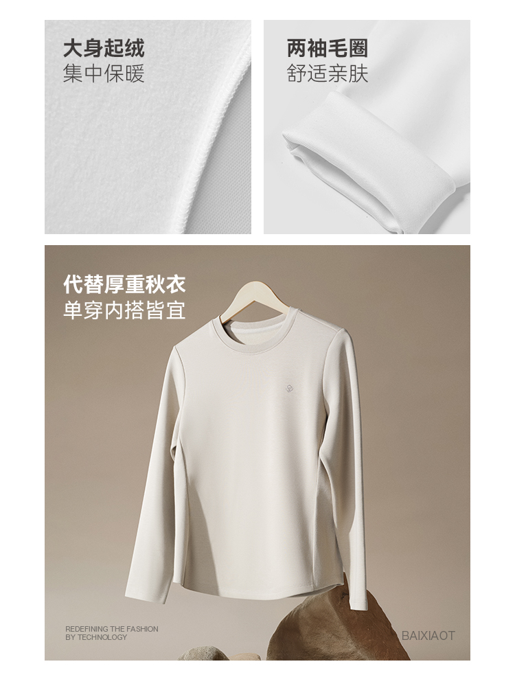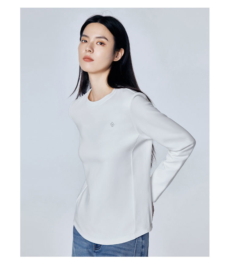 拇指白小T水云棉PLUS圆领长袖女款-小高领至简舒感系列