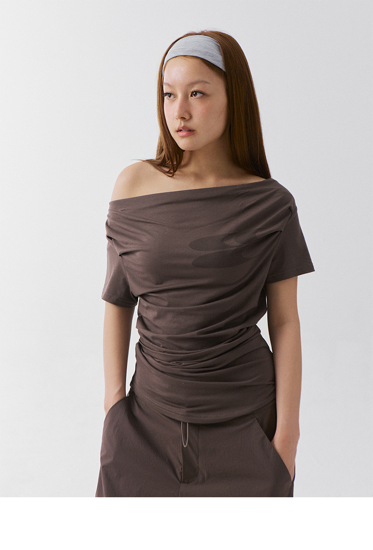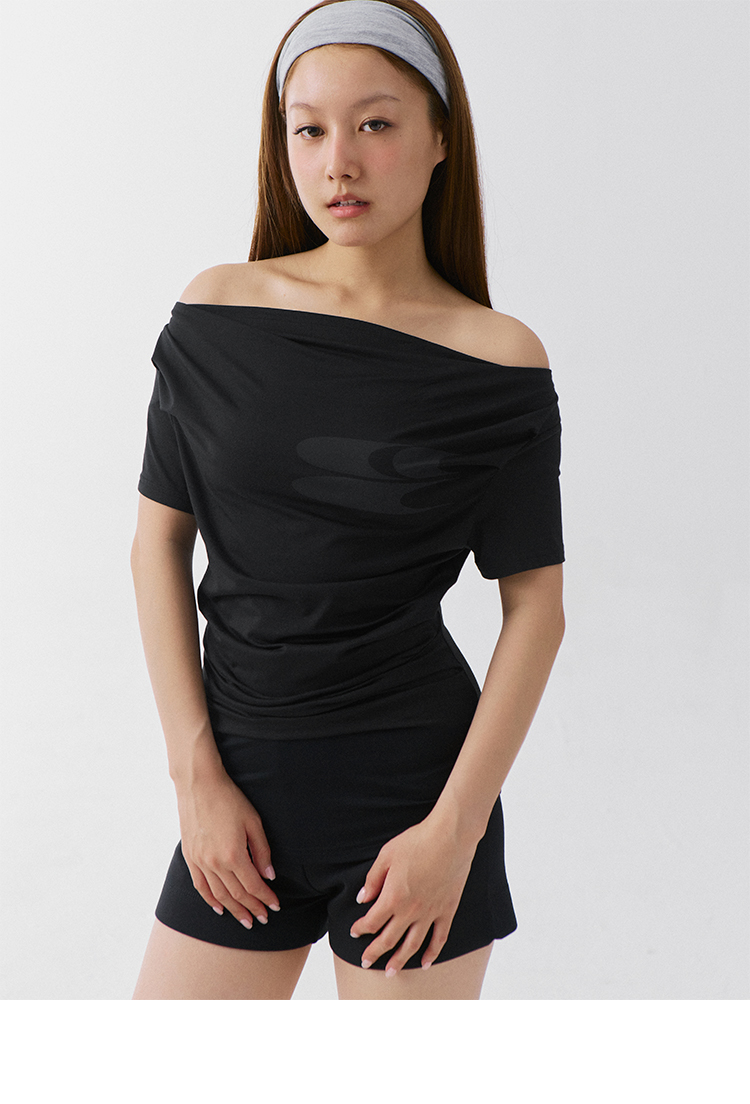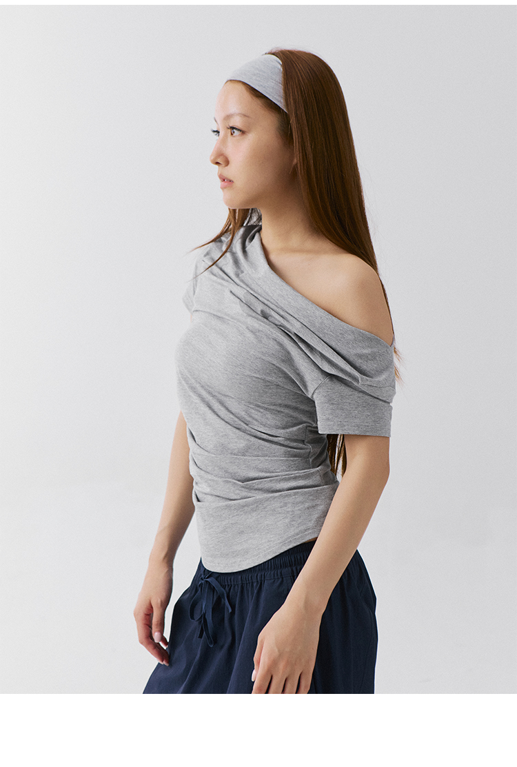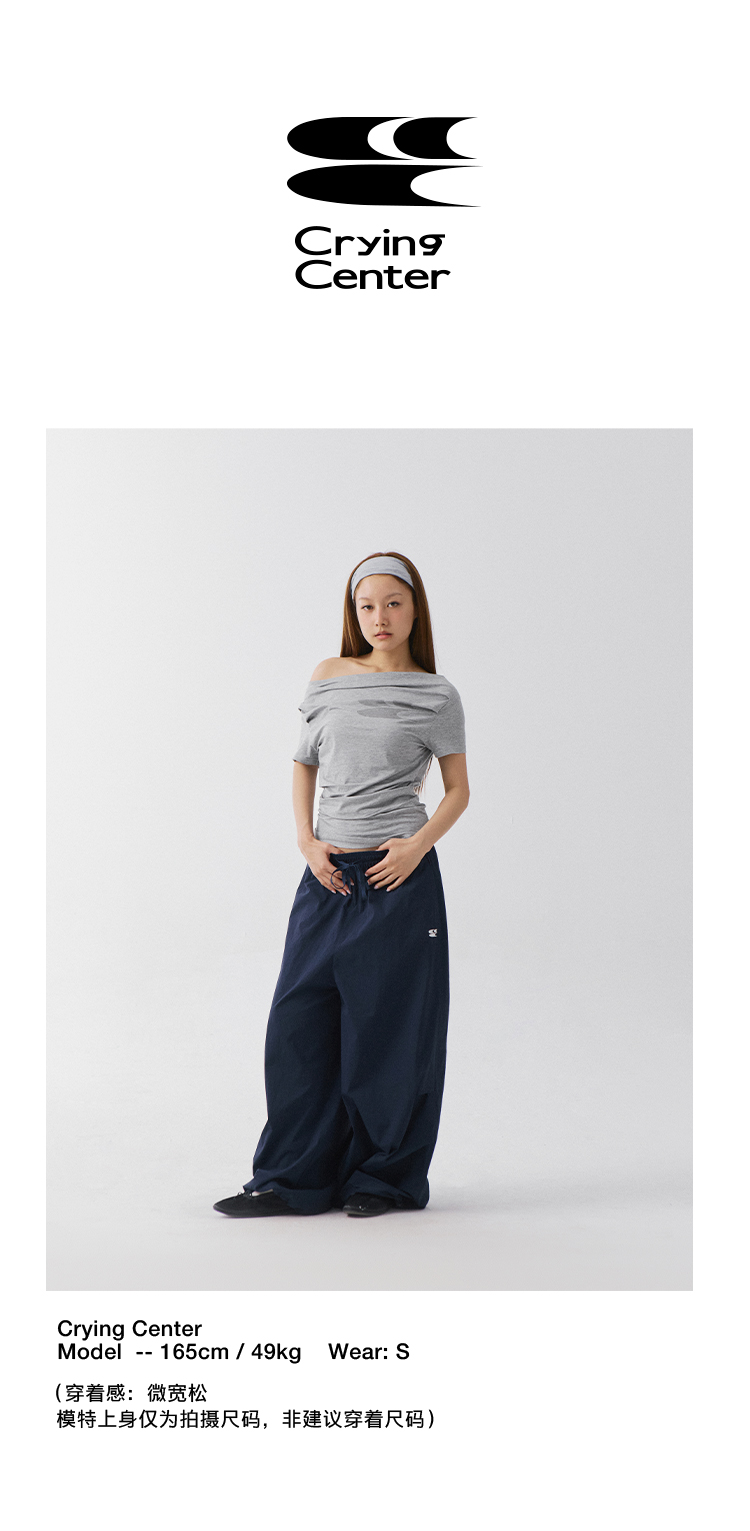 CryingCenter 凉感系列斜肩短袖露肩褶皱凉感上衣 哭喊中心