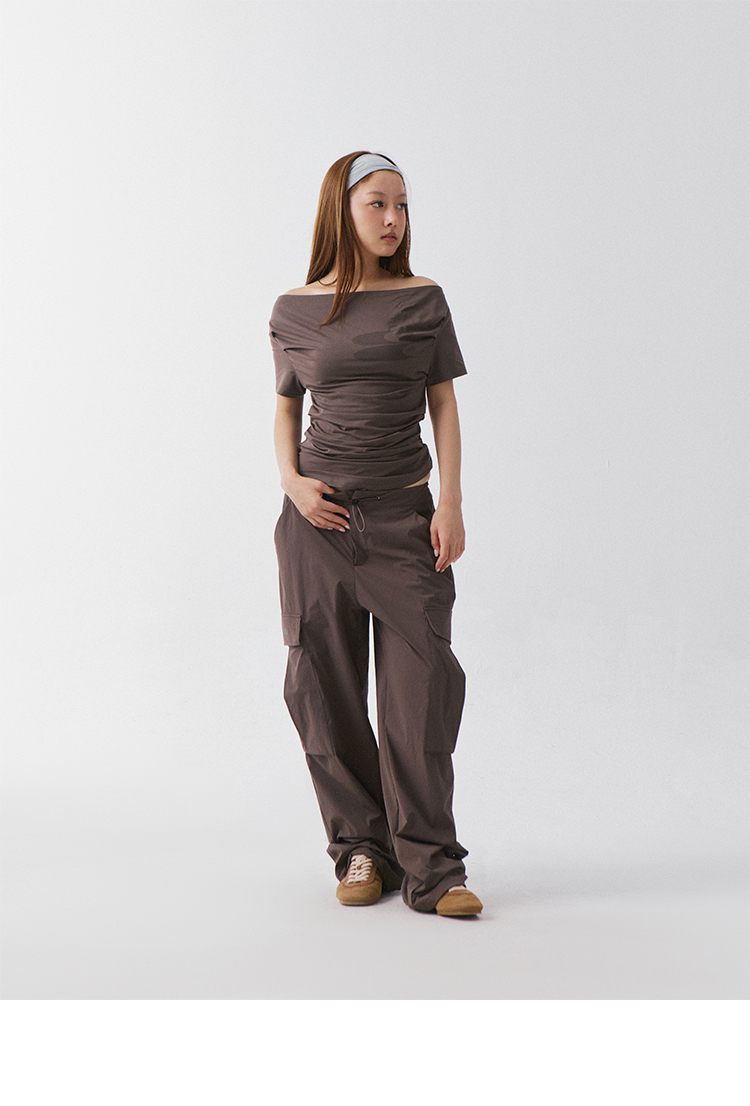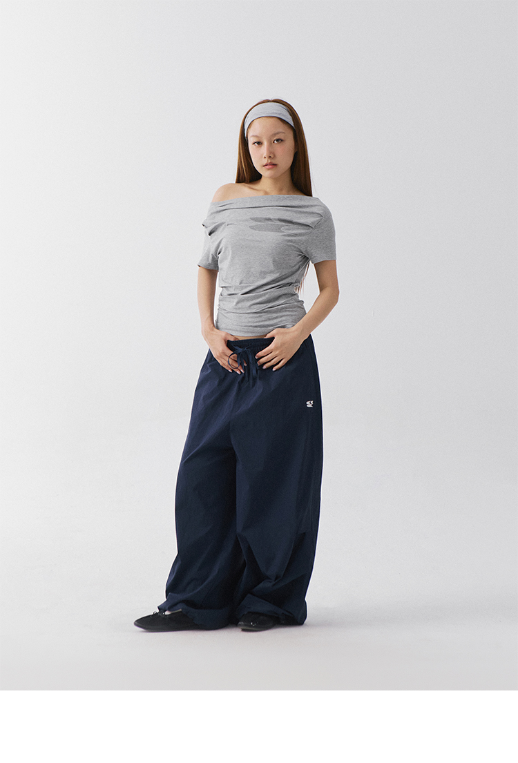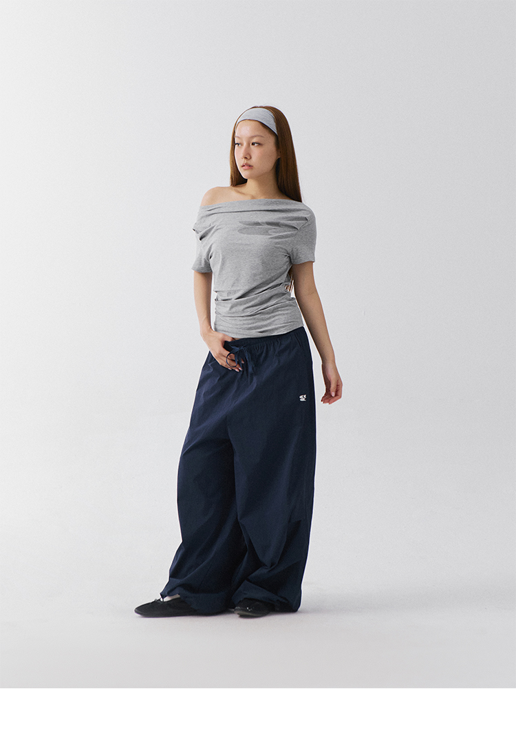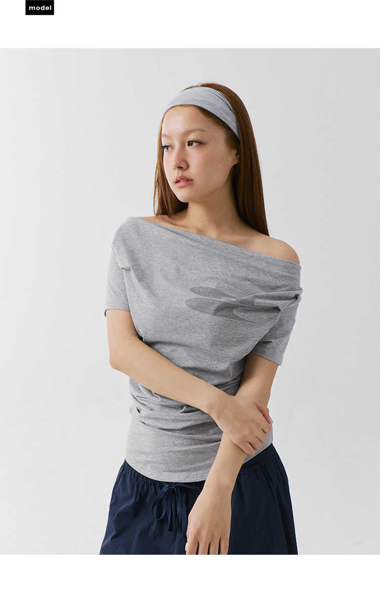 CryingCenter 凉感系列斜肩短袖露肩褶皱凉感上衣 哭喊中心