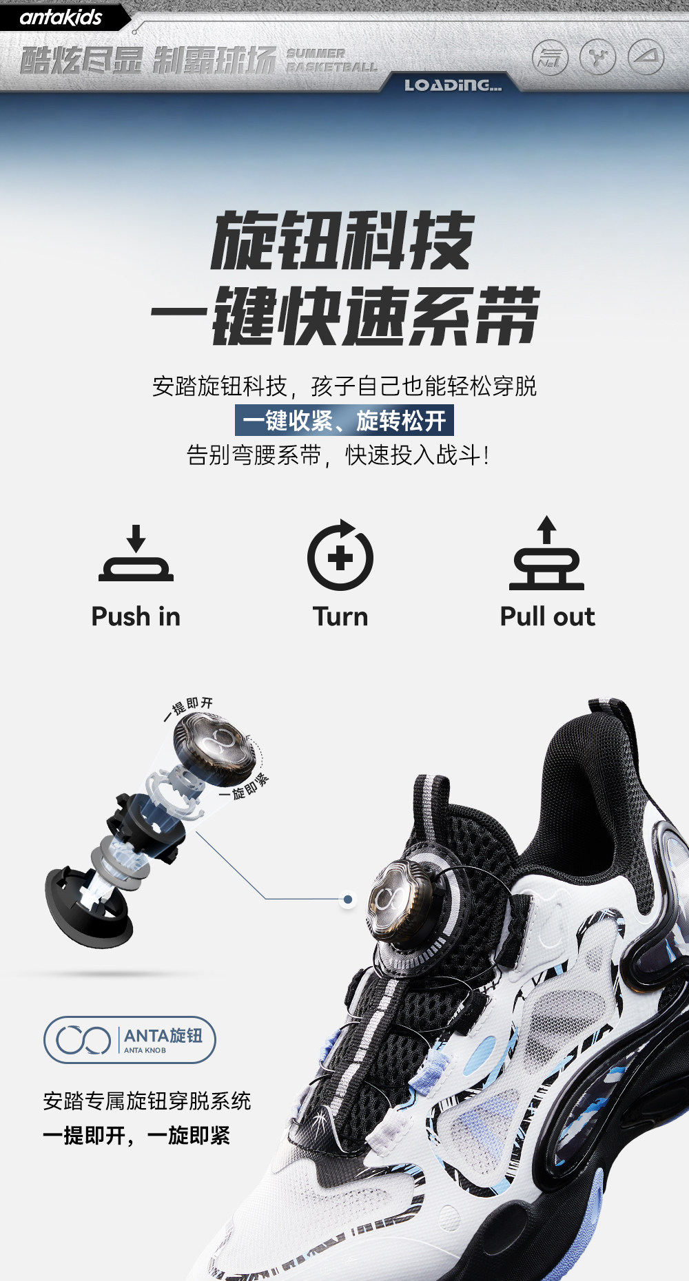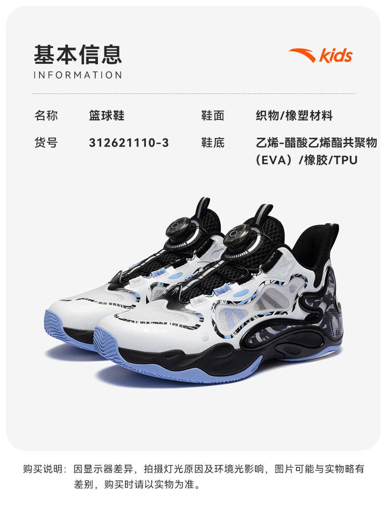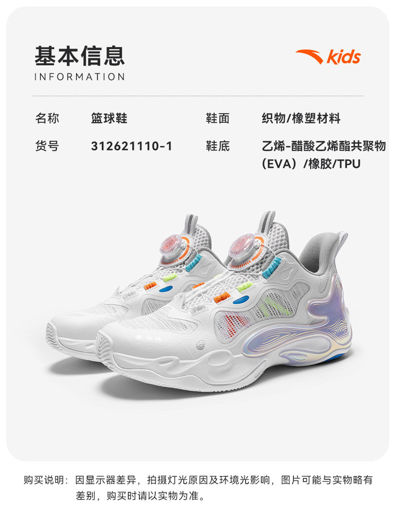 异形夏季款|安踏儿童篮球鞋2026新款防滑耐磨中帮旋钮缓震运动鞋312621110