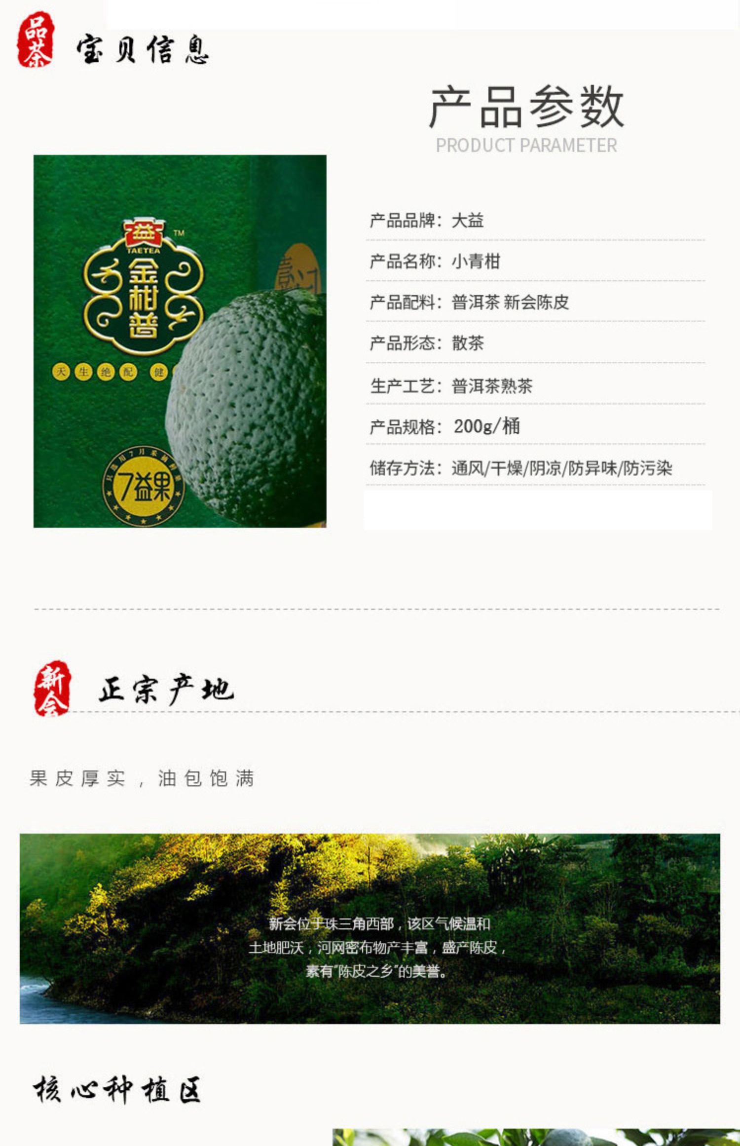 大益小青柑 普洱茶 金柑普茶 陈皮新会 7益果小青柑 200g